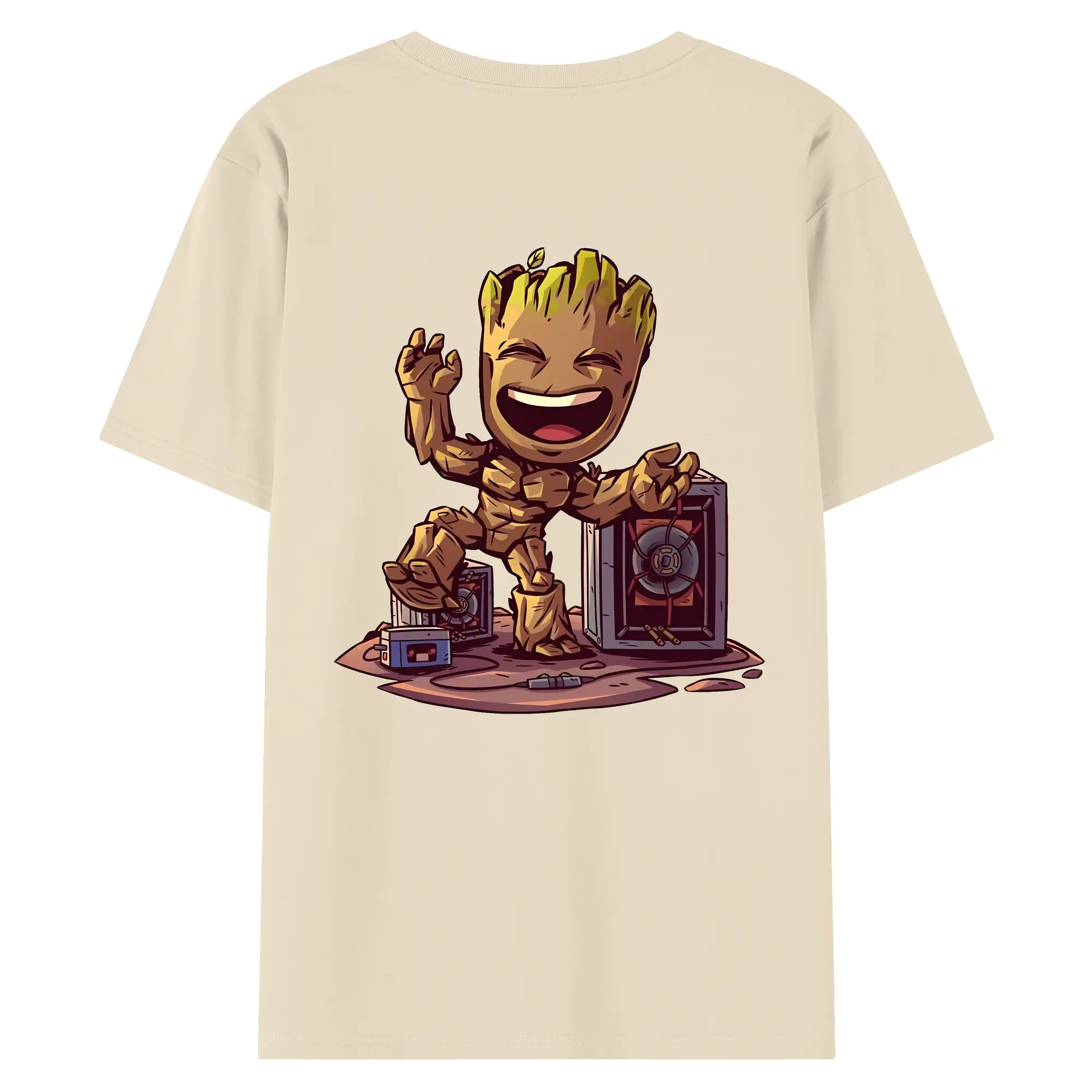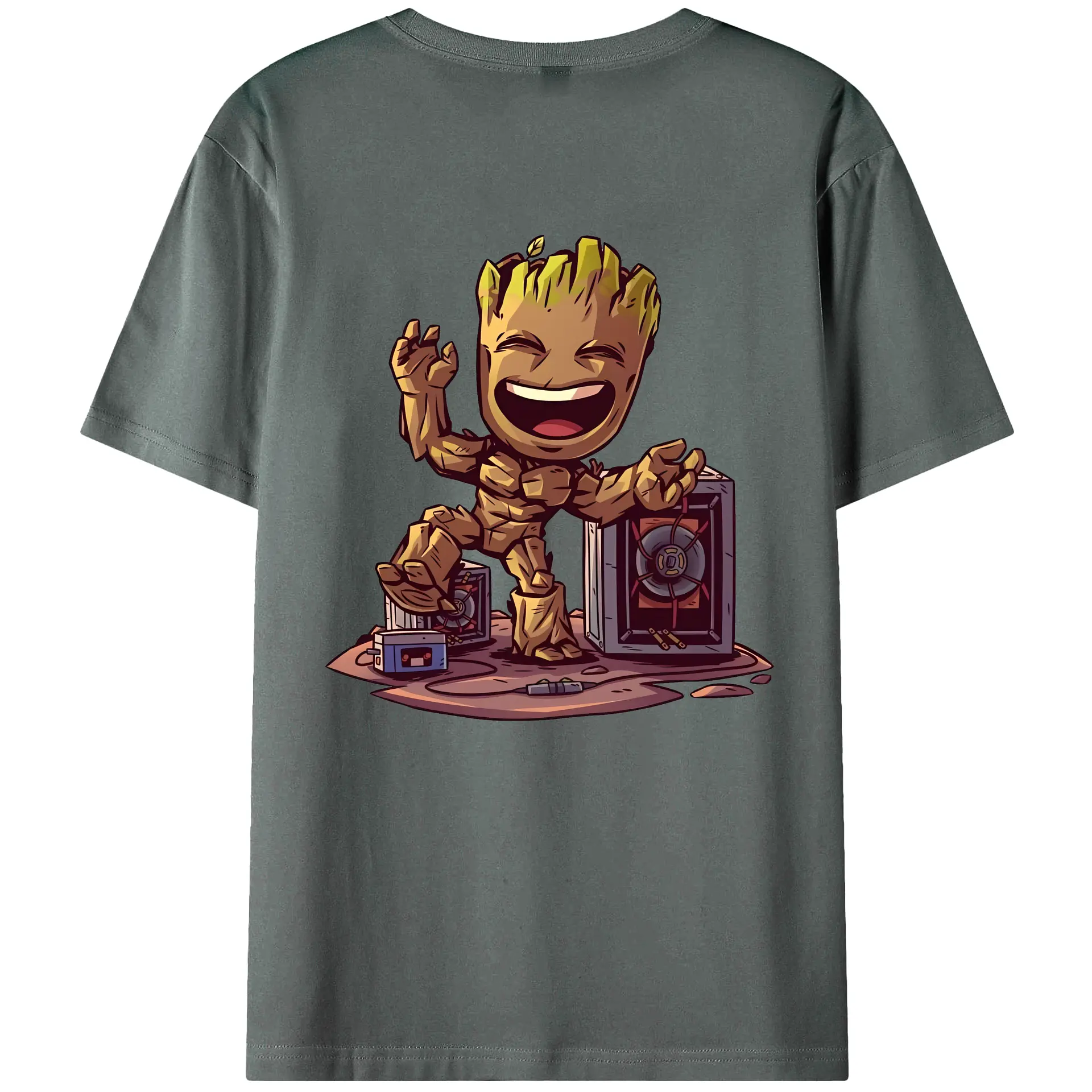 アベンジャーズ (Avenjāzu) グッズ グルート(Groot) - 綿100% ヴィンテージ風 半袖Tシャツ ・ 背面プリント ・ 柔らか肌触り ・ 通気性 快適 ・ スポーツ カジュアル 外出用