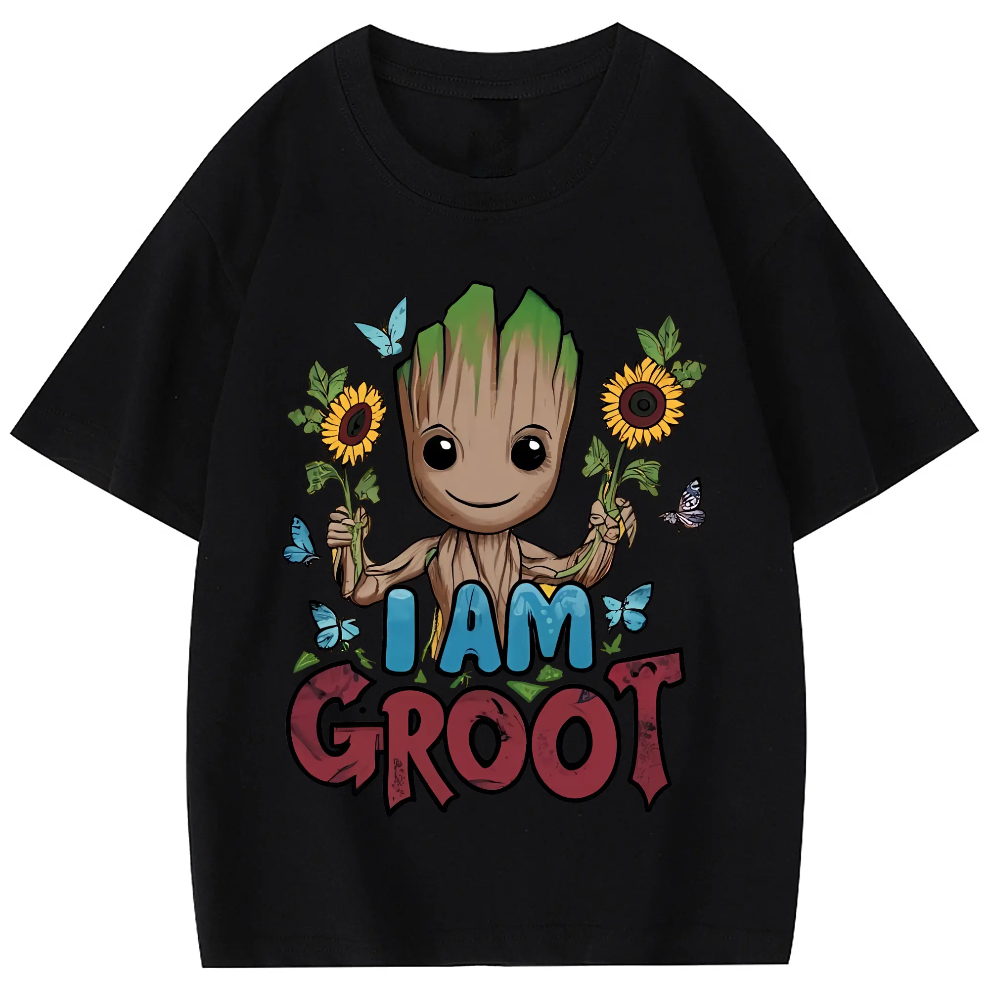 アベンジャーズ (Avenjāzu) グッズ グルート(Groot) - 綿100% 半袖Tシャツ ・ フロントプリント ・ 快適 通気性 ・ 日常使い 散歩 スポーツ用