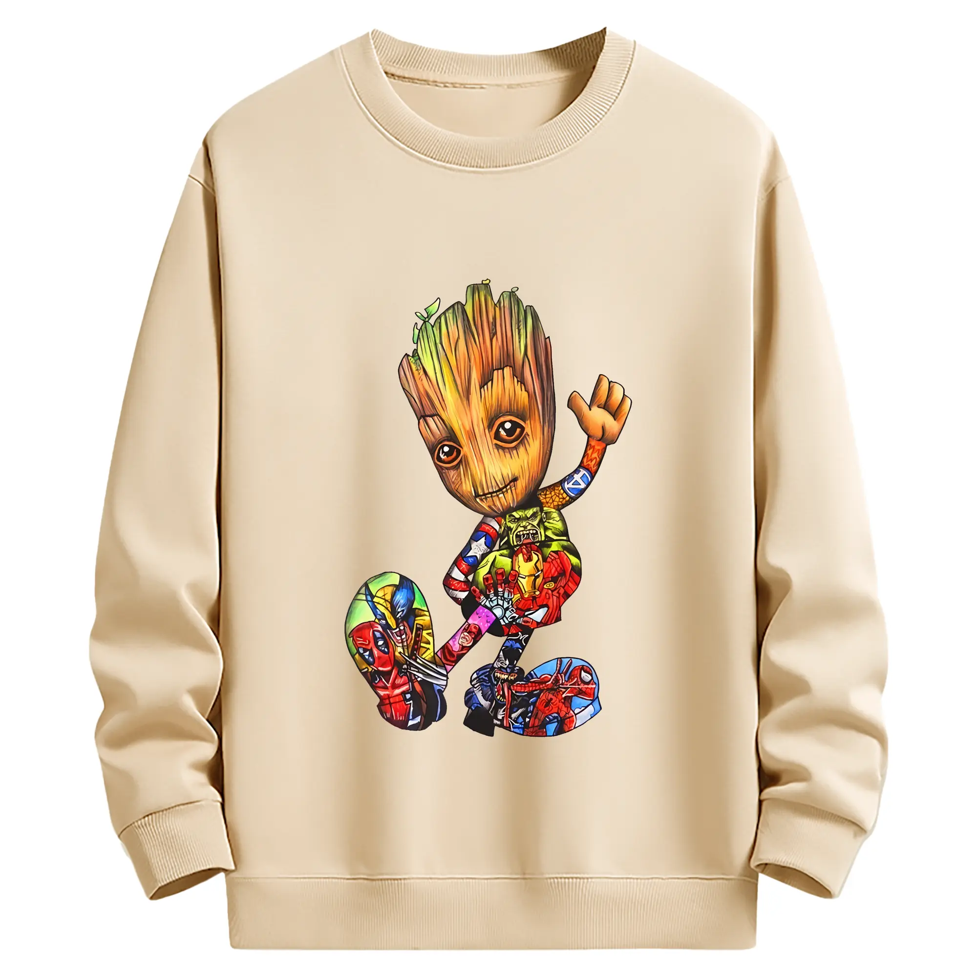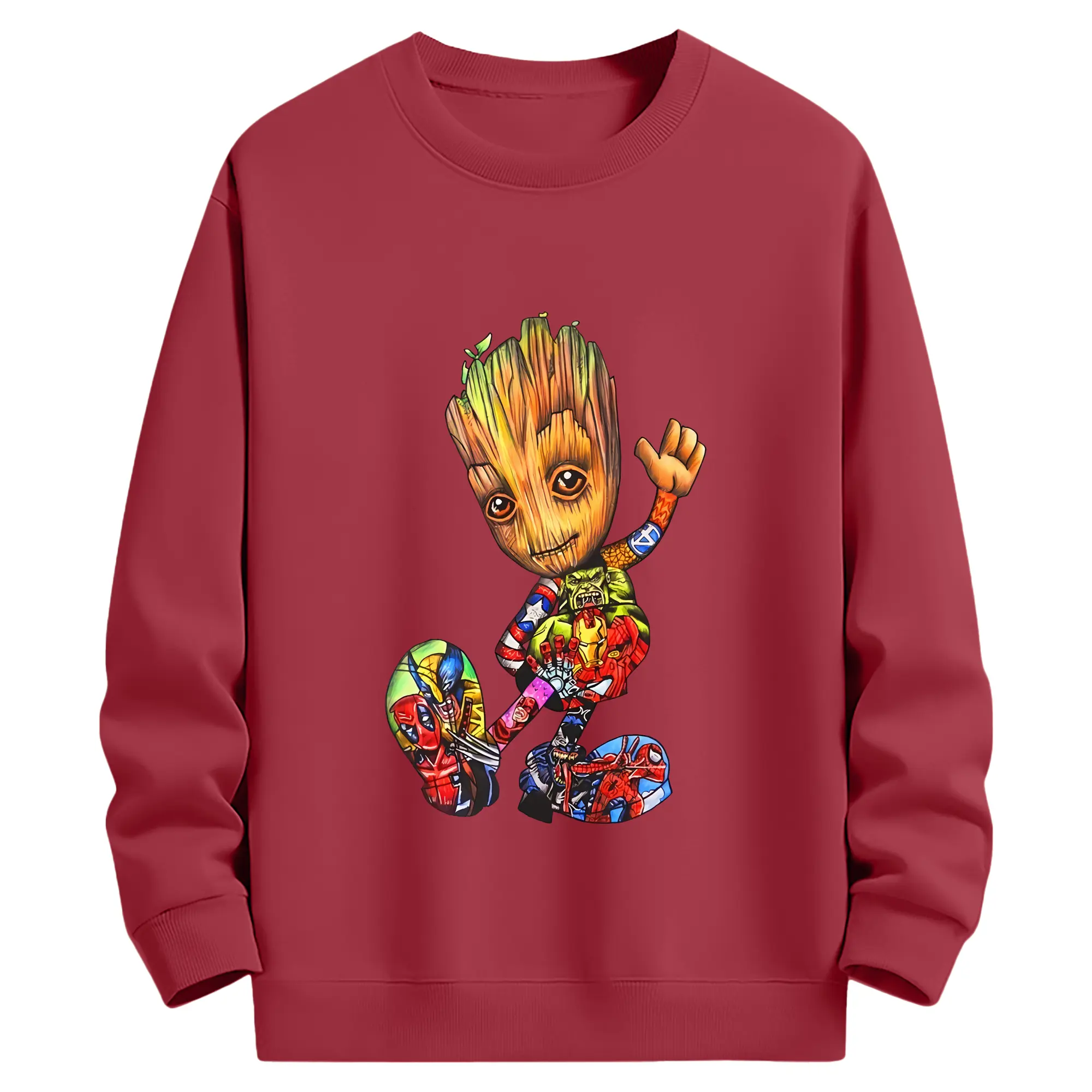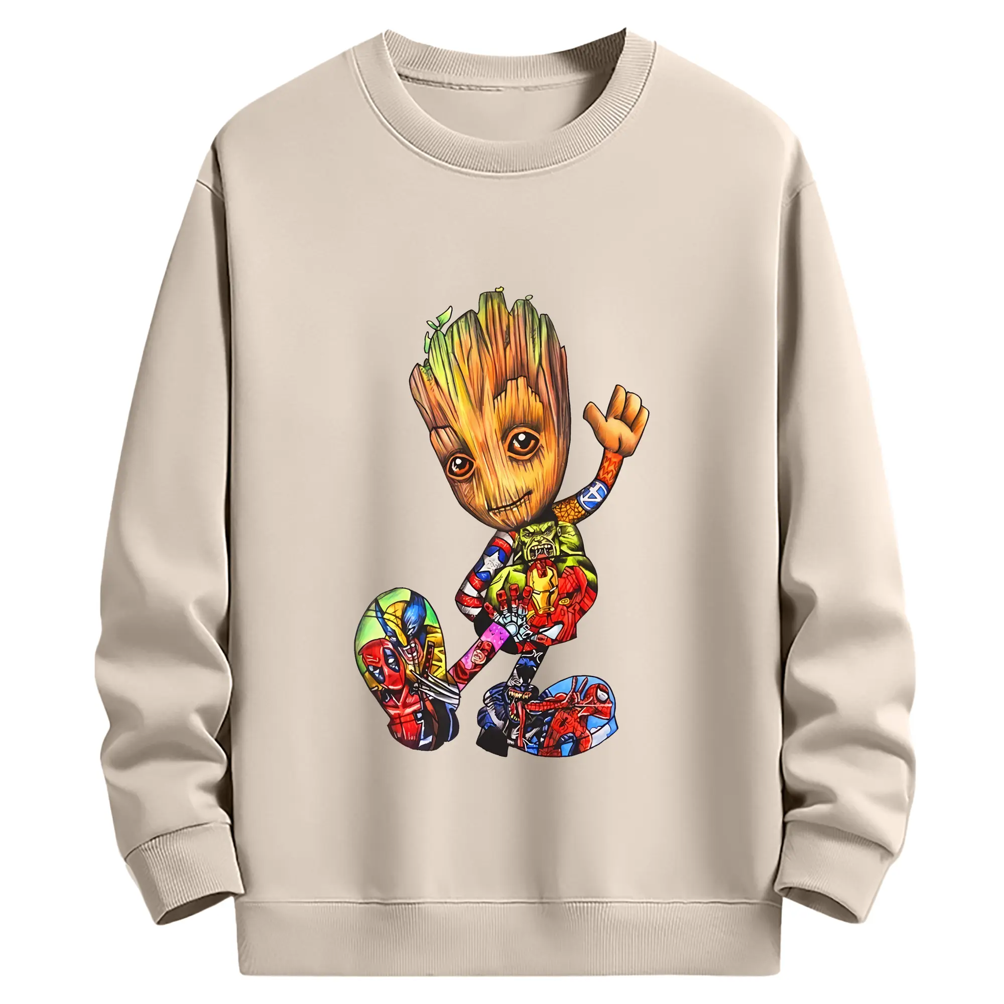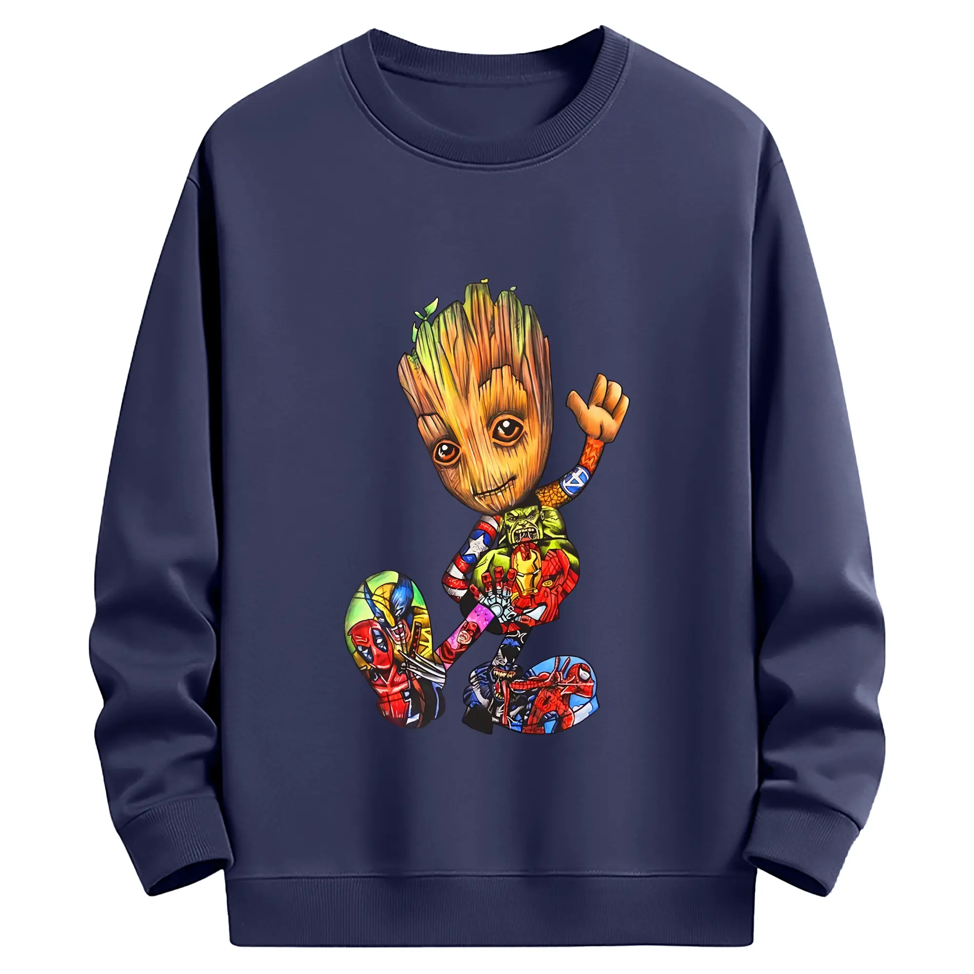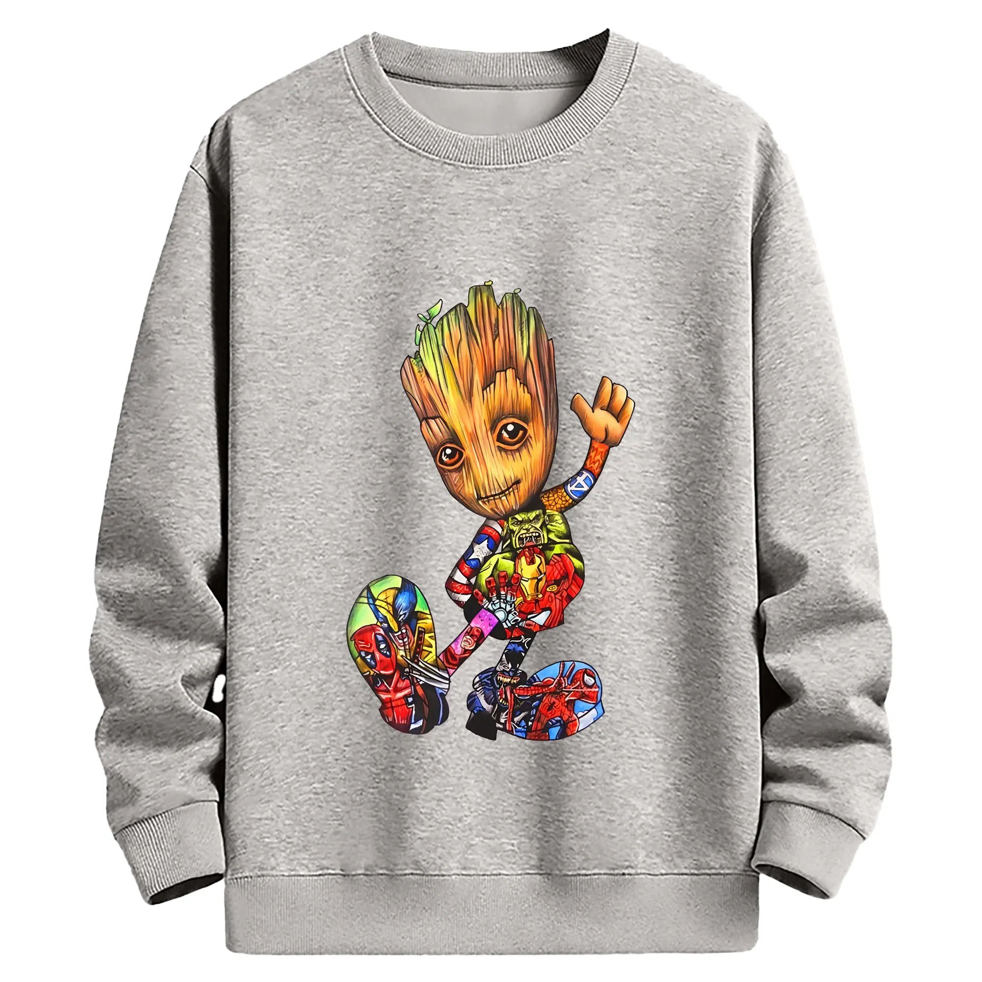 アベンジャーズ (Avenjāzu) グッズ グルート(Groot) - 薄手 クルーネック スウェット 裏毛260g · ポリエステル 春秋向け カジュアル 男女兼用 · トレーナー デイリー スポーツ 散歩に最適