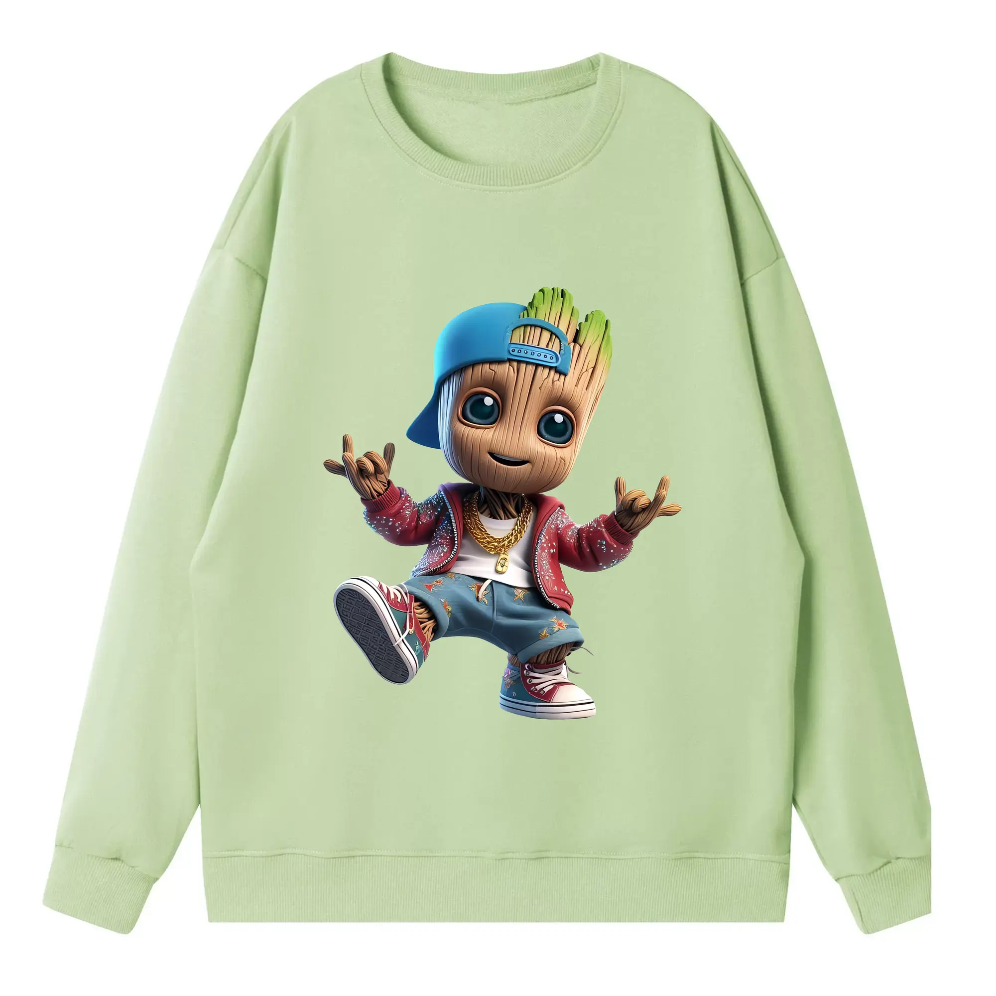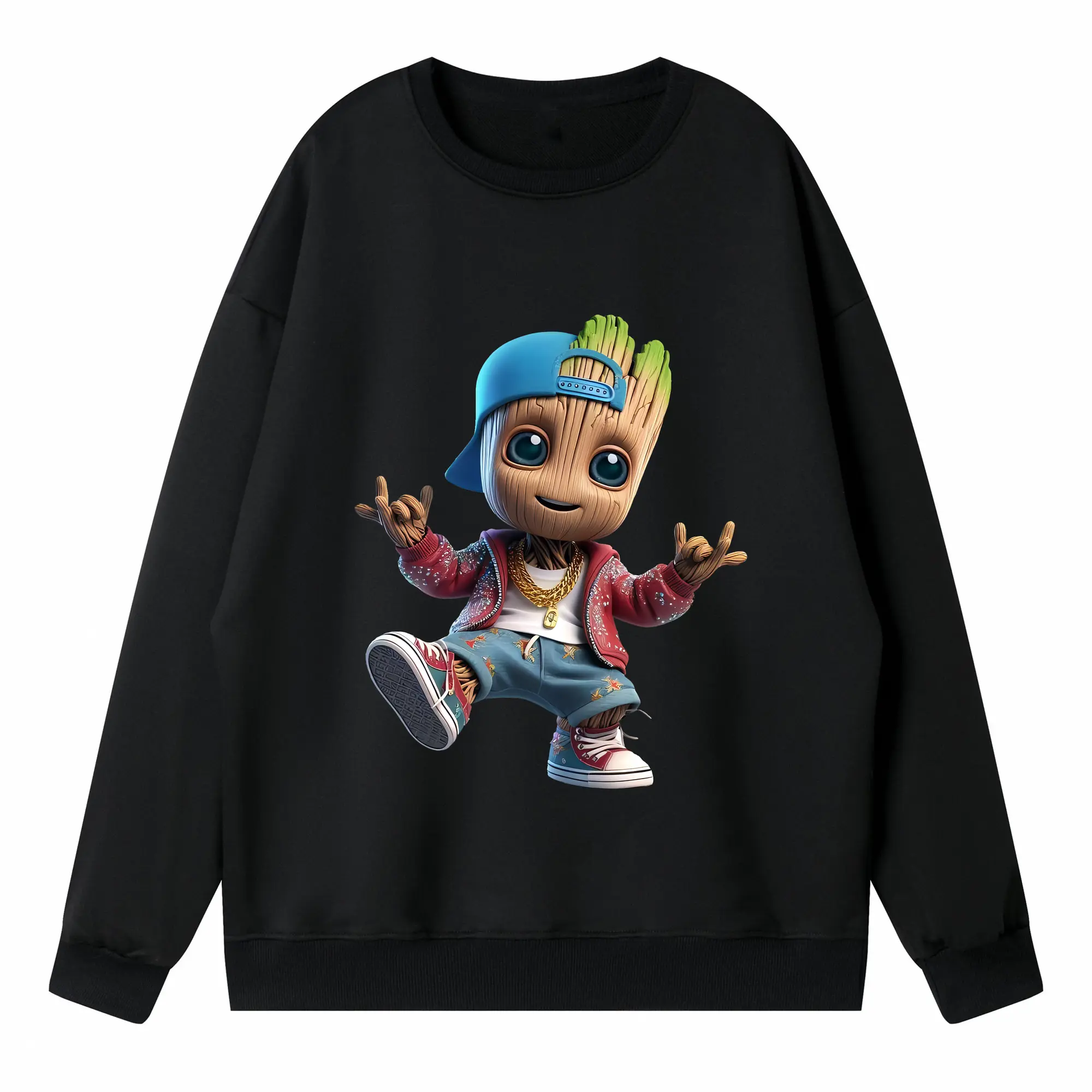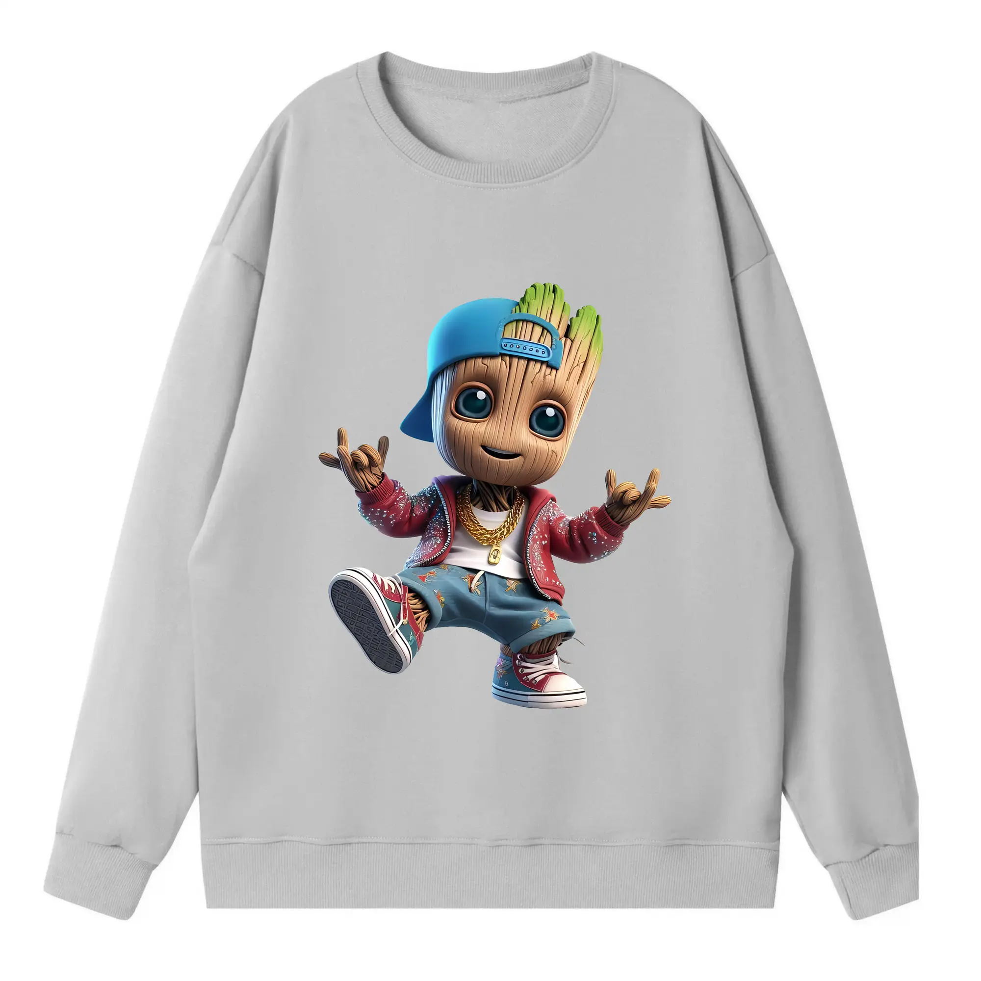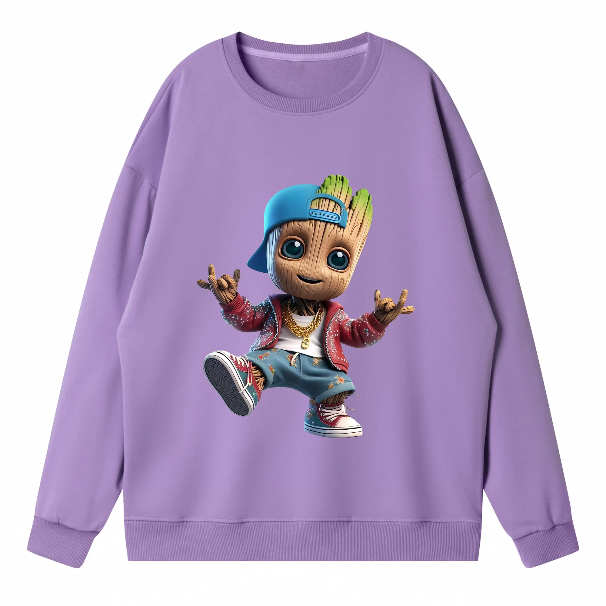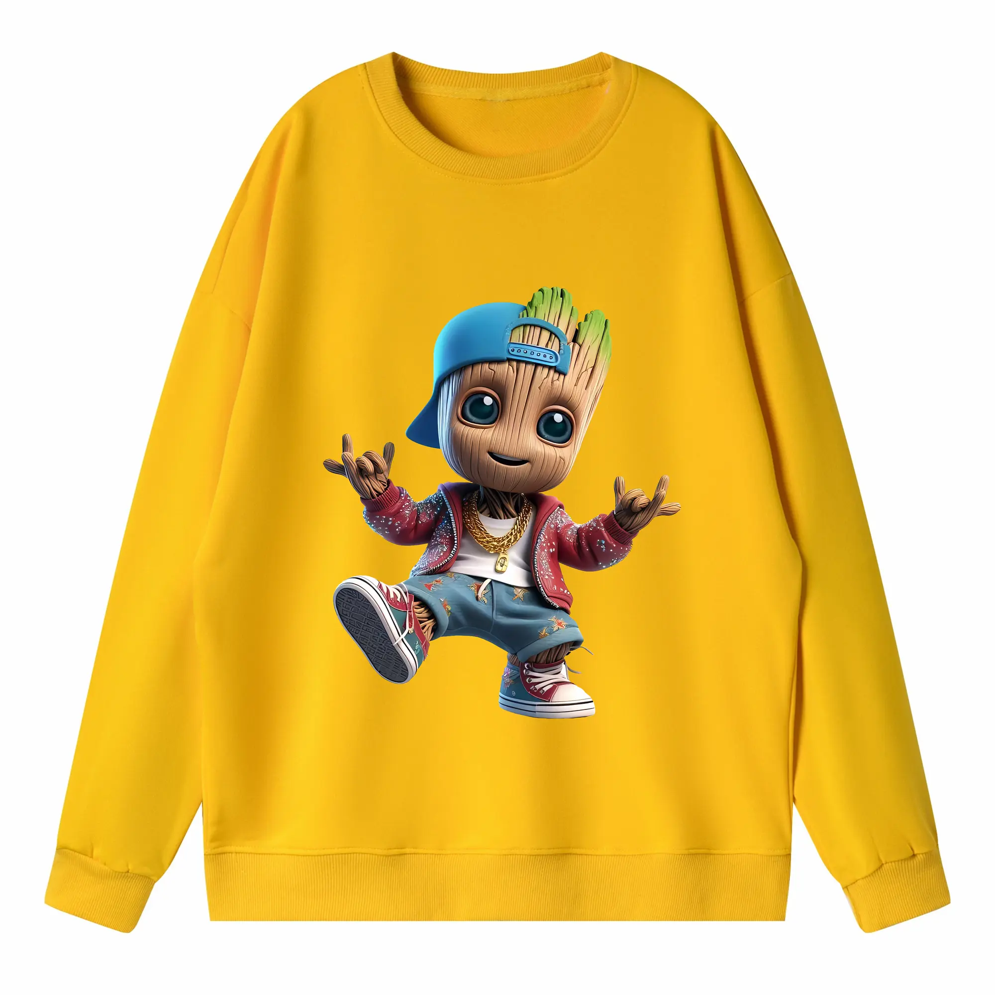 アベンジャーズ (Avenjāzu) グッズ グルート(Groot) - キッズ クルーネックスウェットシャツ ・ フロントプリント ・ 綿80% ポリエステル20% ・ 快適 通学 スポーツ 日常使い お散歩用