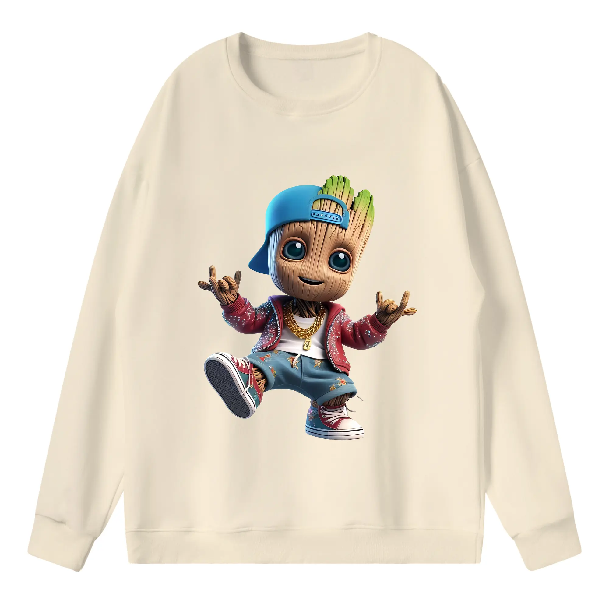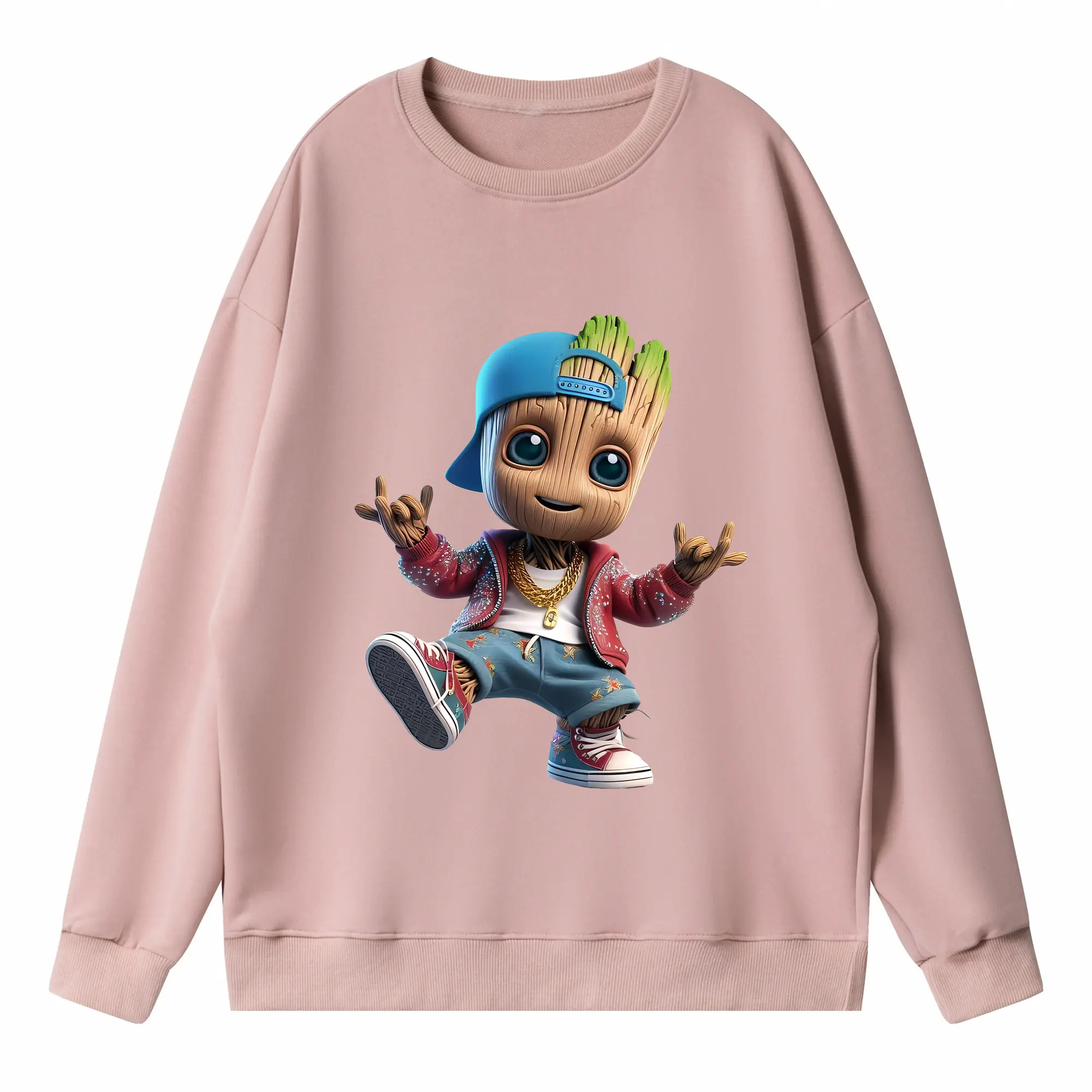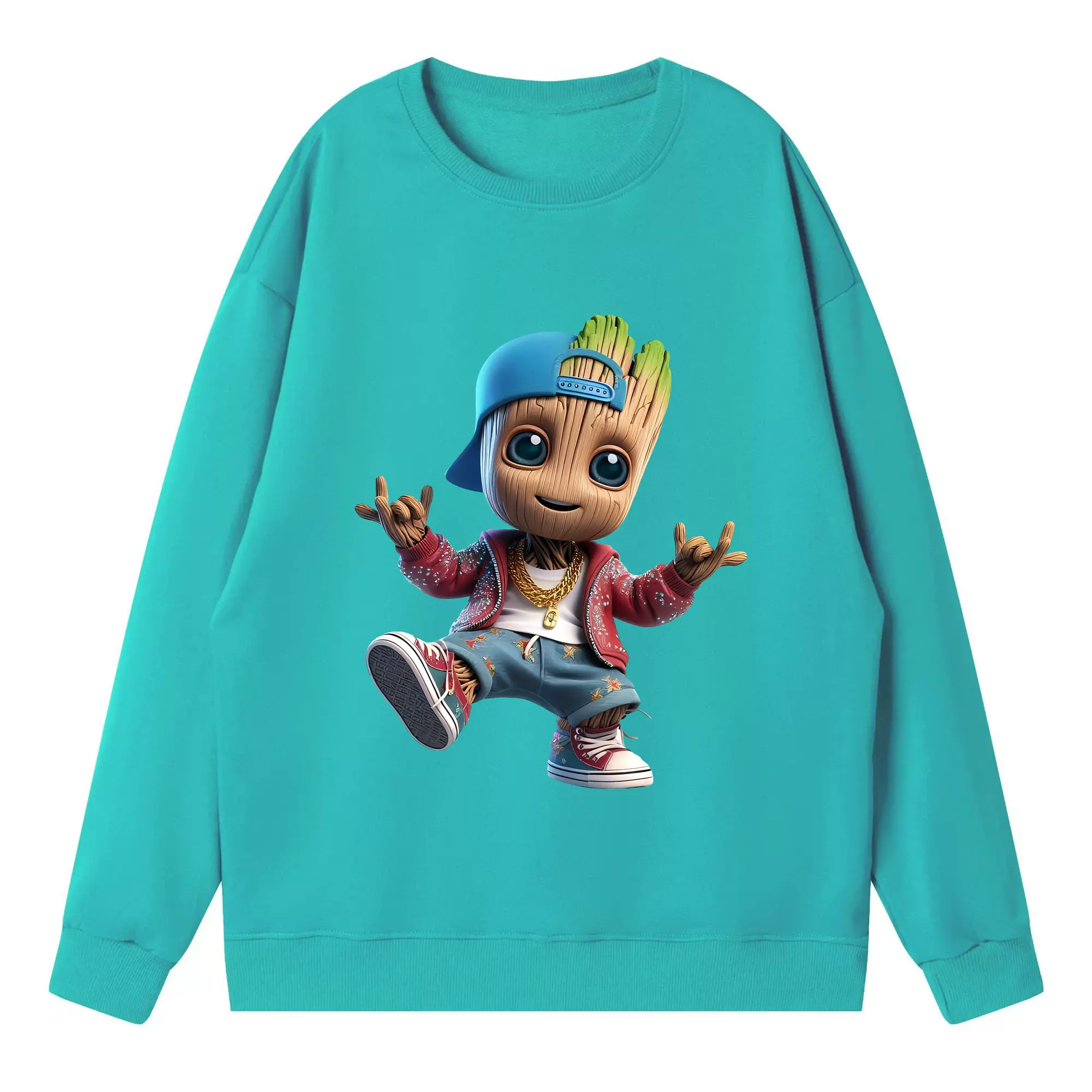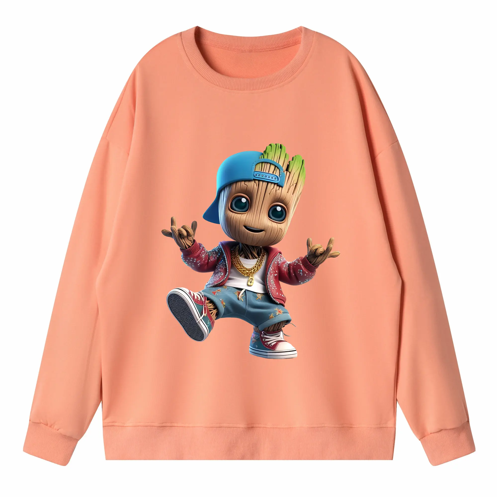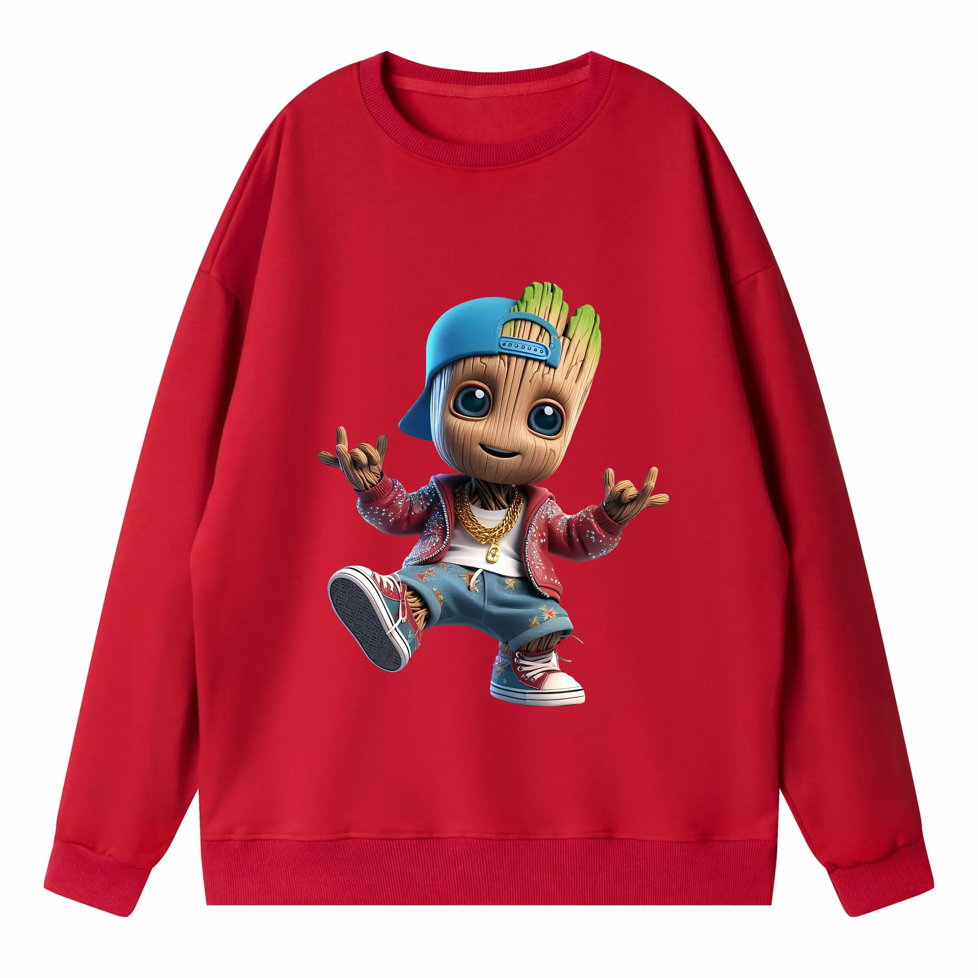 アベンジャーズ (Avenjāzu) グッズ グルート(Groot) - キッズ クルーネックスウェットシャツ ・ フロントプリント ・ 綿80% ポリエステル20% ・ 快適 通学 スポーツ 日常使い お散歩用