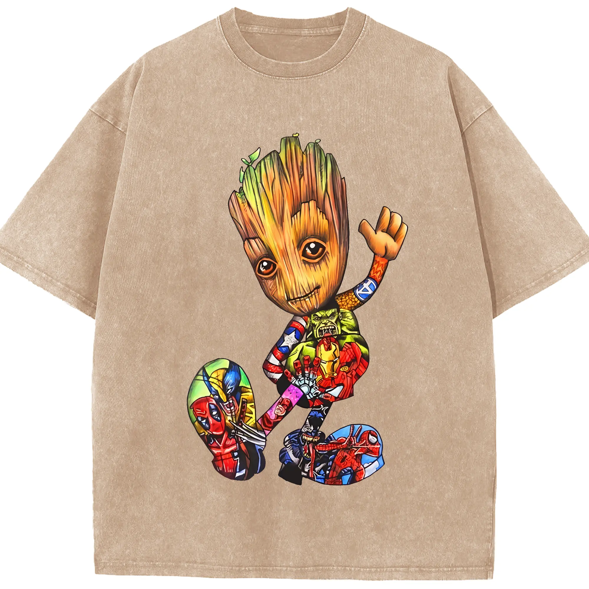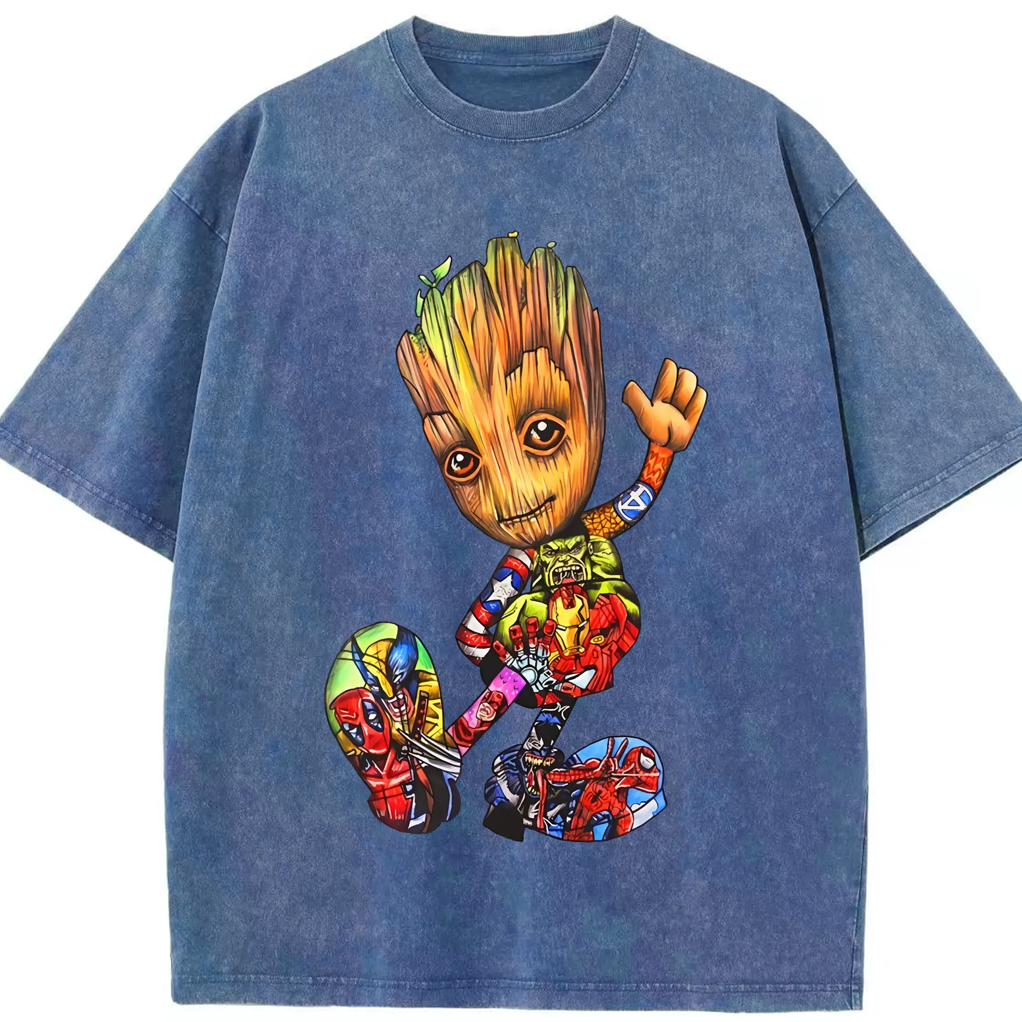 アベンジャーズ (Avenjāzu) グッズ グルート(Groot) - 綿100% ヴィンテージ風 半袖Tシャツ ・ 背面プリント ・ 柔らか肌触り ・ 通気性 快適 ・ スポーツ カジュアル 外出用