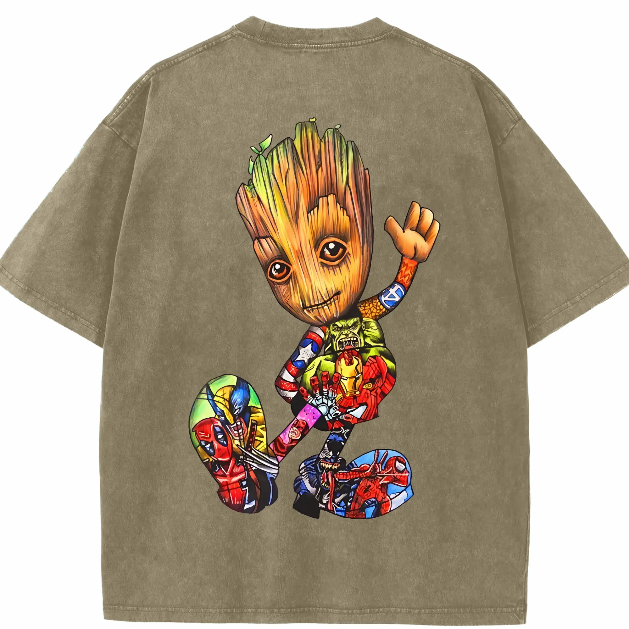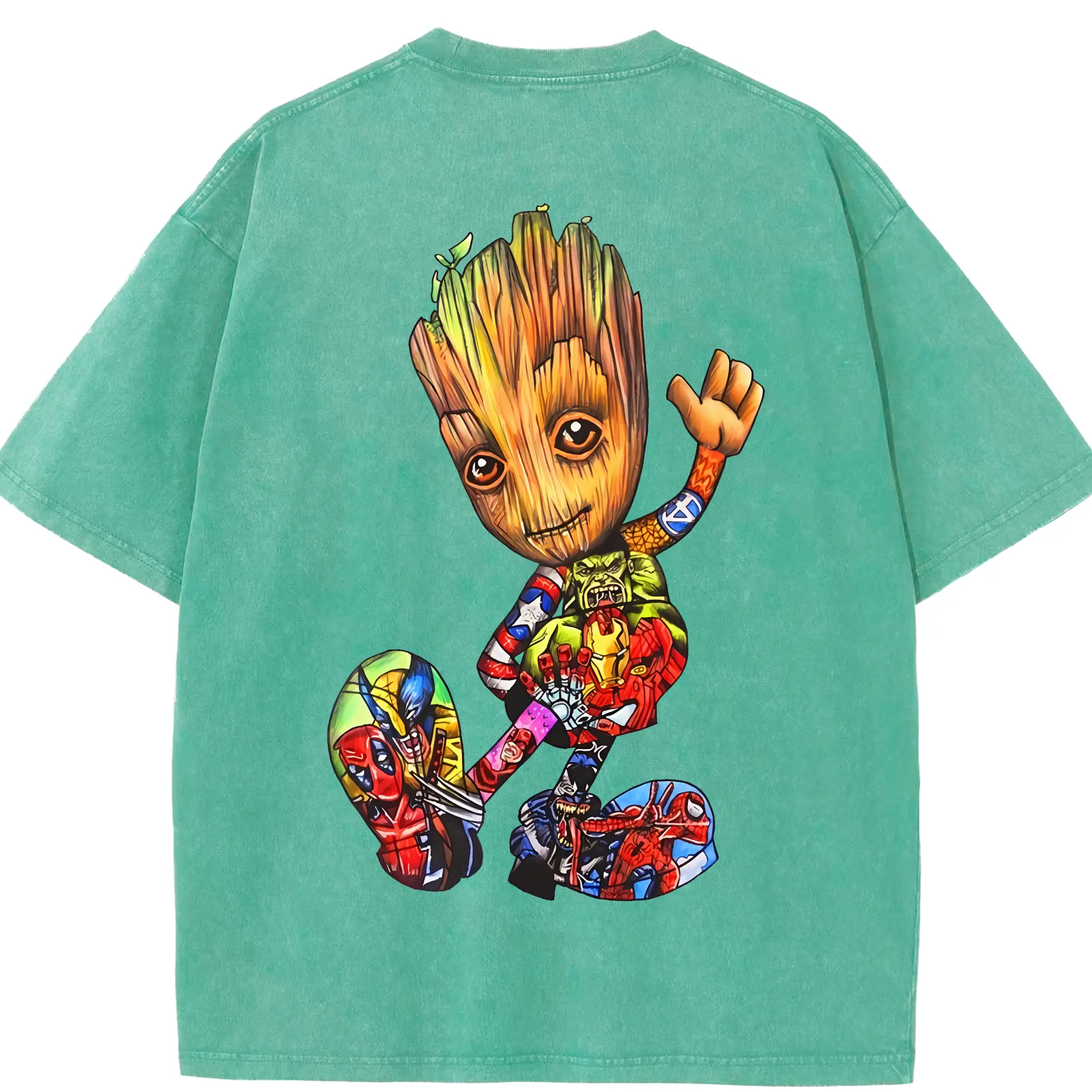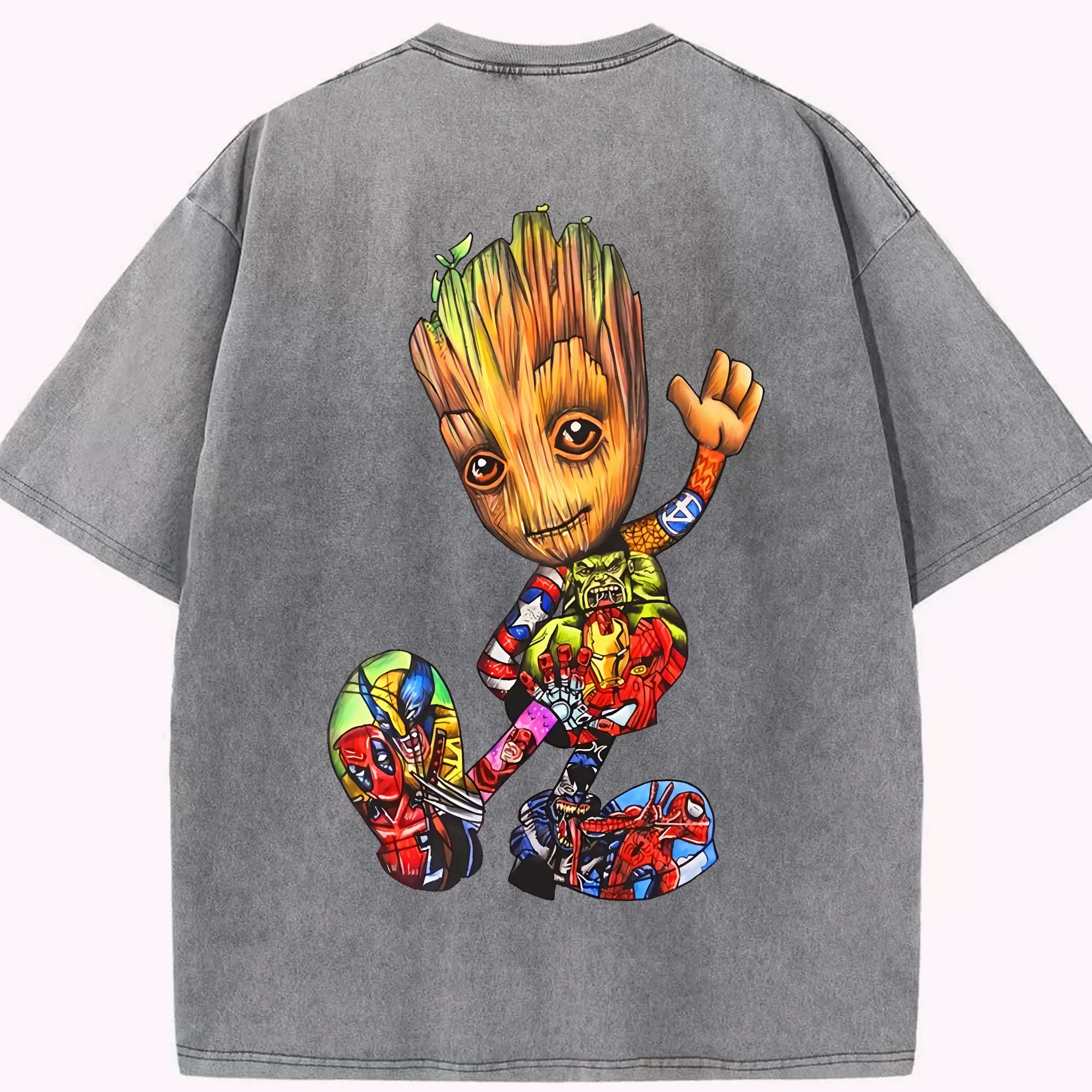 アベンジャーズ (Avenjāzu) グッズ グルート(Groot) - 綿100% ヴィンテージ風 半袖Tシャツ ・ フロントプリント ・ 柔らか肌触り ・ 通気性 快適 ・ スポーツ カジュアル 外出用