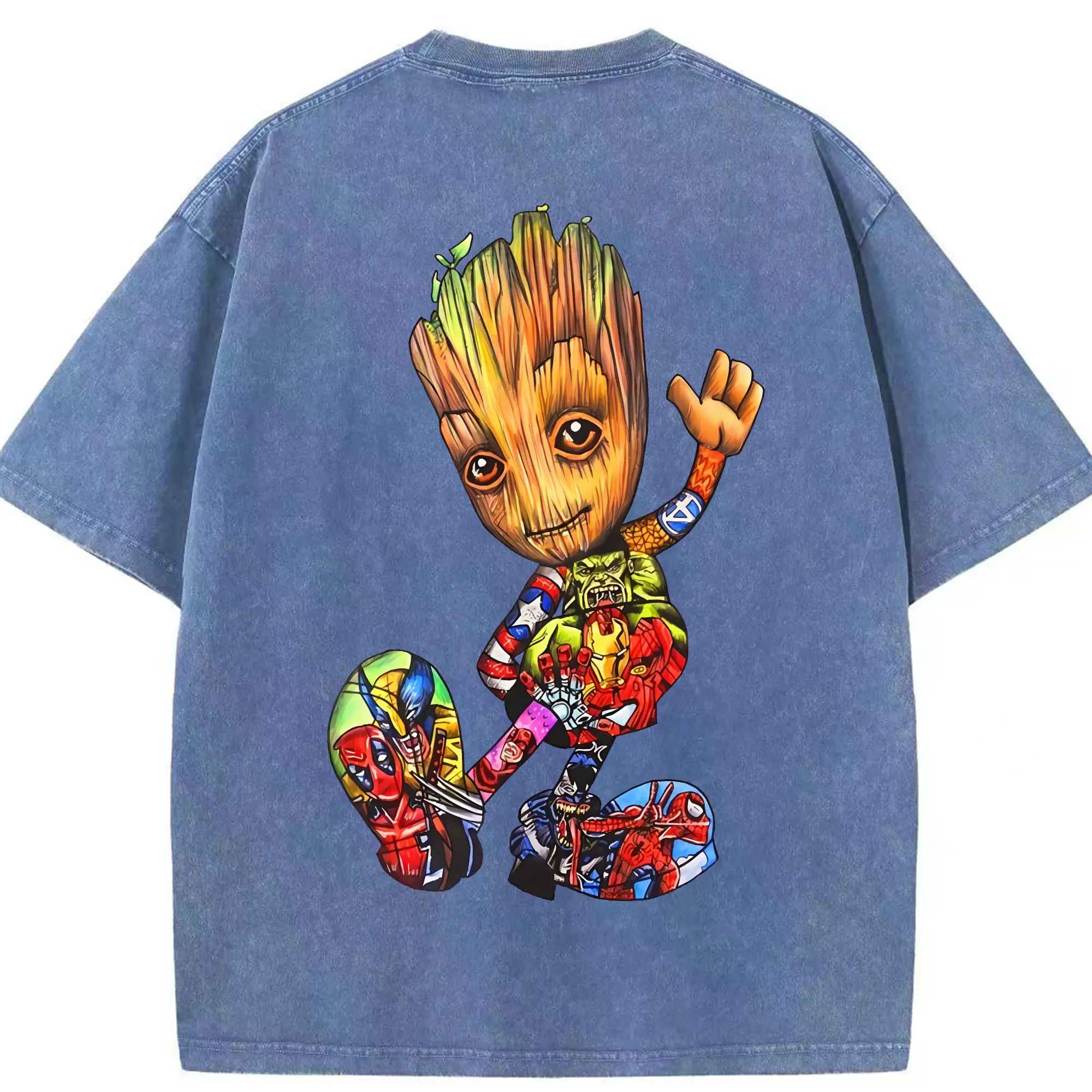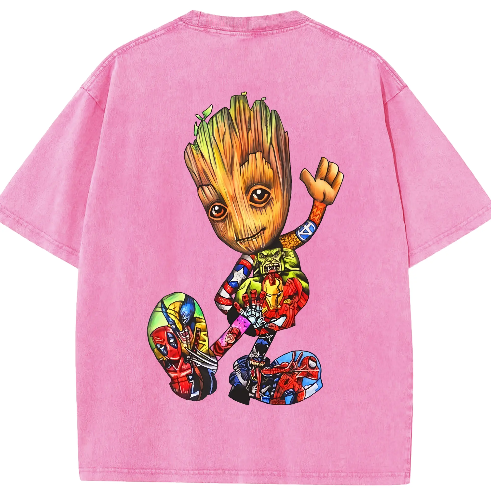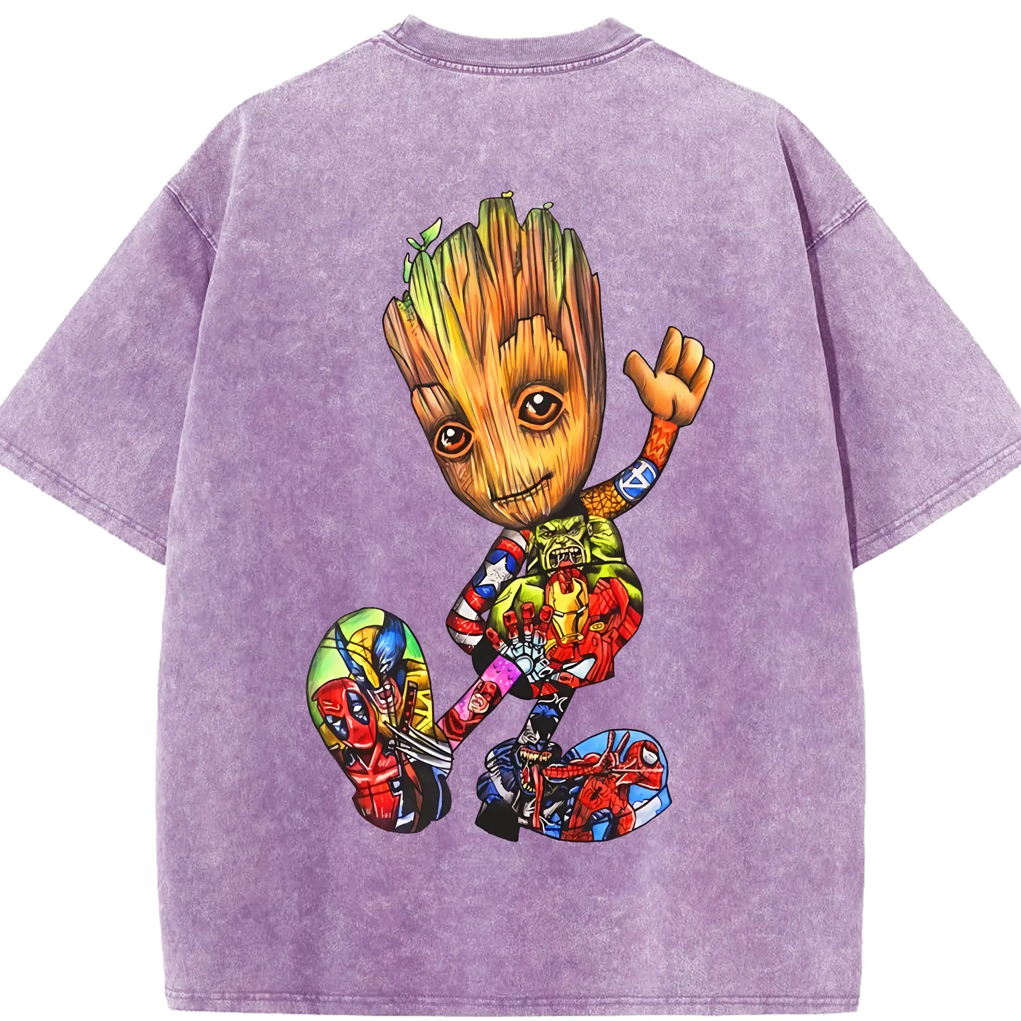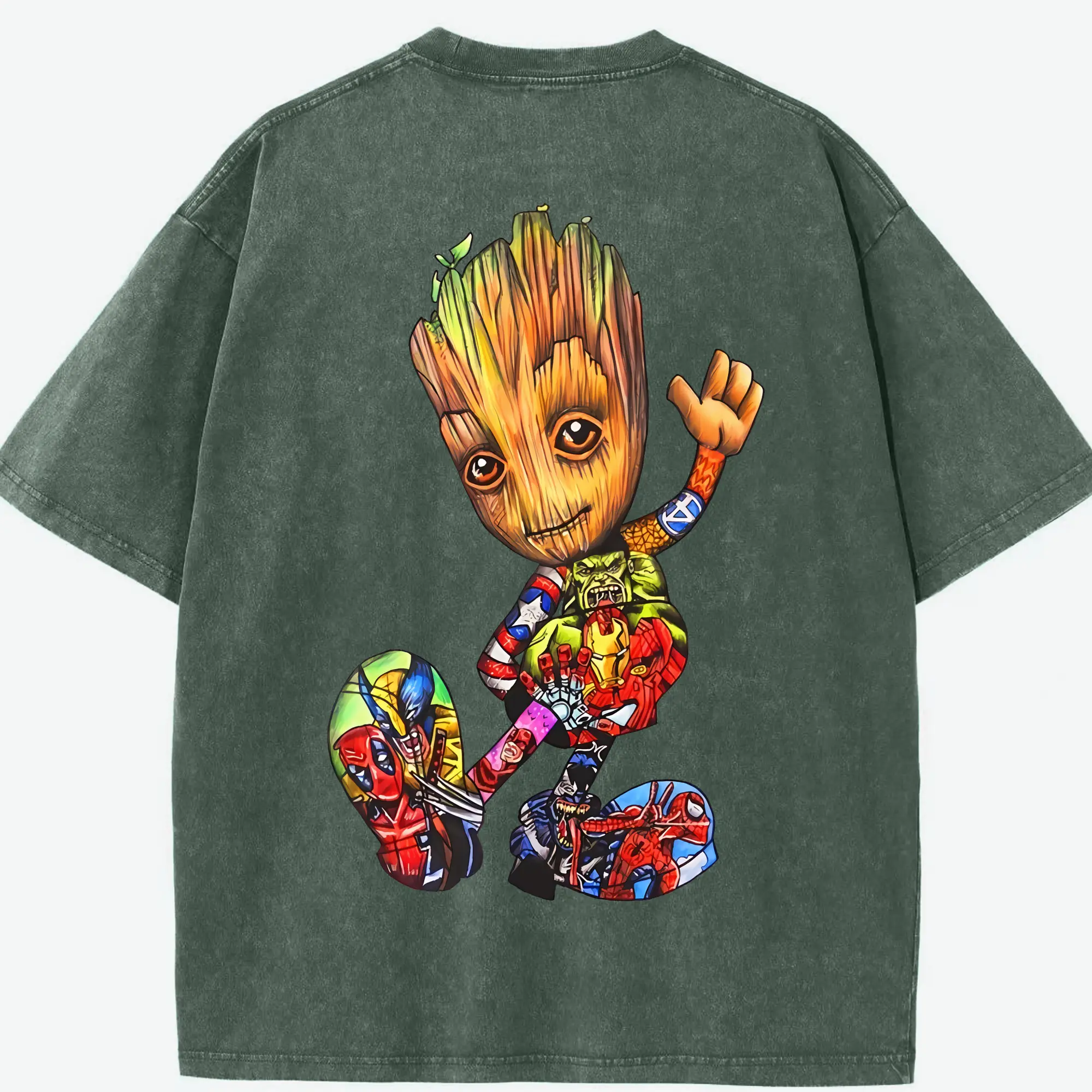 アベンジャーズ (Avenjāzu) グッズ グルート(Groot) - 綿100% ヴィンテージ風 半袖Tシャツ ・ フロントプリント ・ 柔らか肌触り ・ 通気性 快適 ・ スポーツ カジュアル 外出用