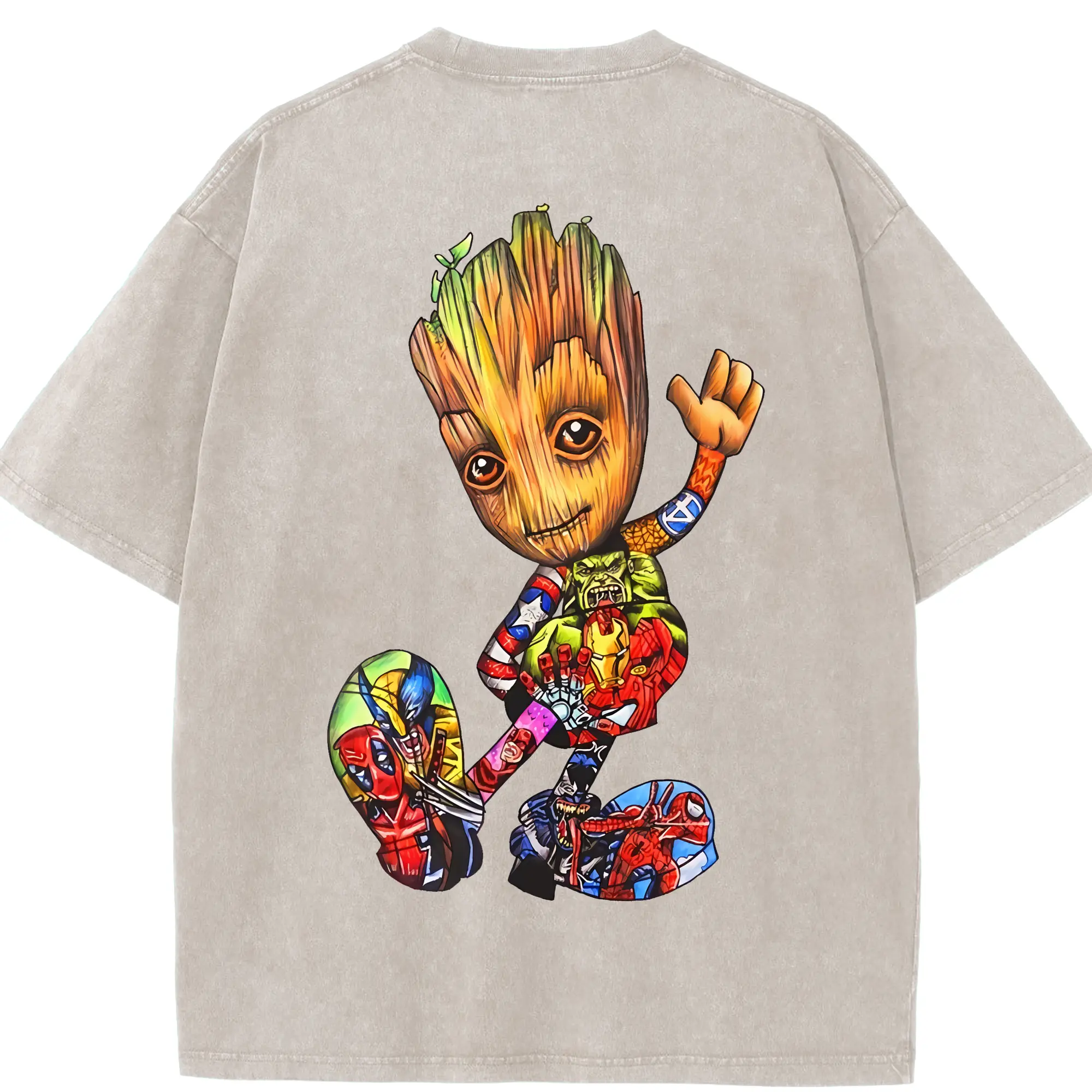 アベンジャーズ (Avenjāzu) グッズ グルート(Groot) - 綿100% 半袖Tシャツ ・ バックプリント ・ 快適 通気性 ・ 日常使い 散歩 スポーツ用