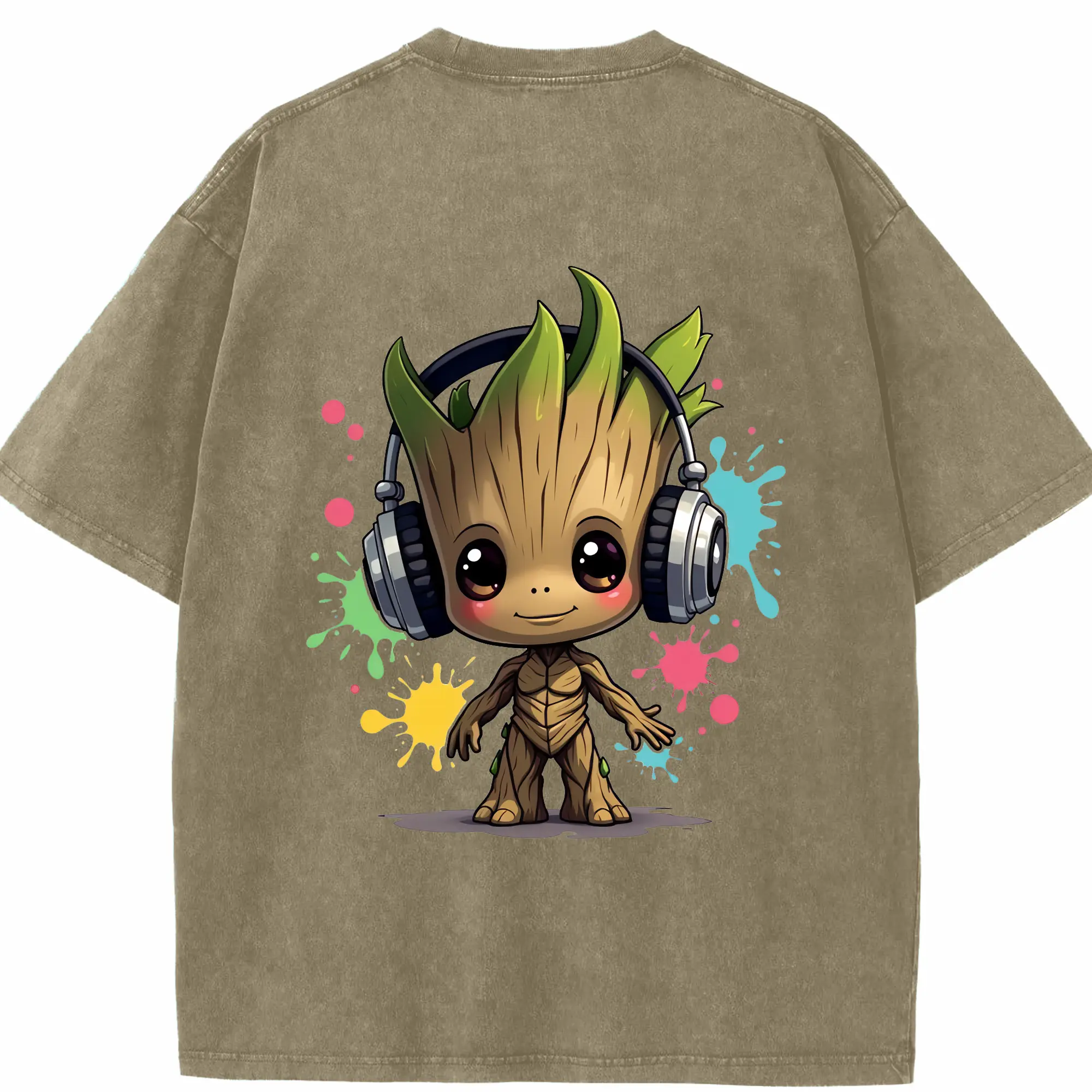 アベンジャーズ (Avenjāzu) グッズ グルート(Groot) - 綿100% 半袖Tシャツ ・ バックプリント ・ 快適 通気性 ・ 日常使い 散歩 スポーツ用
