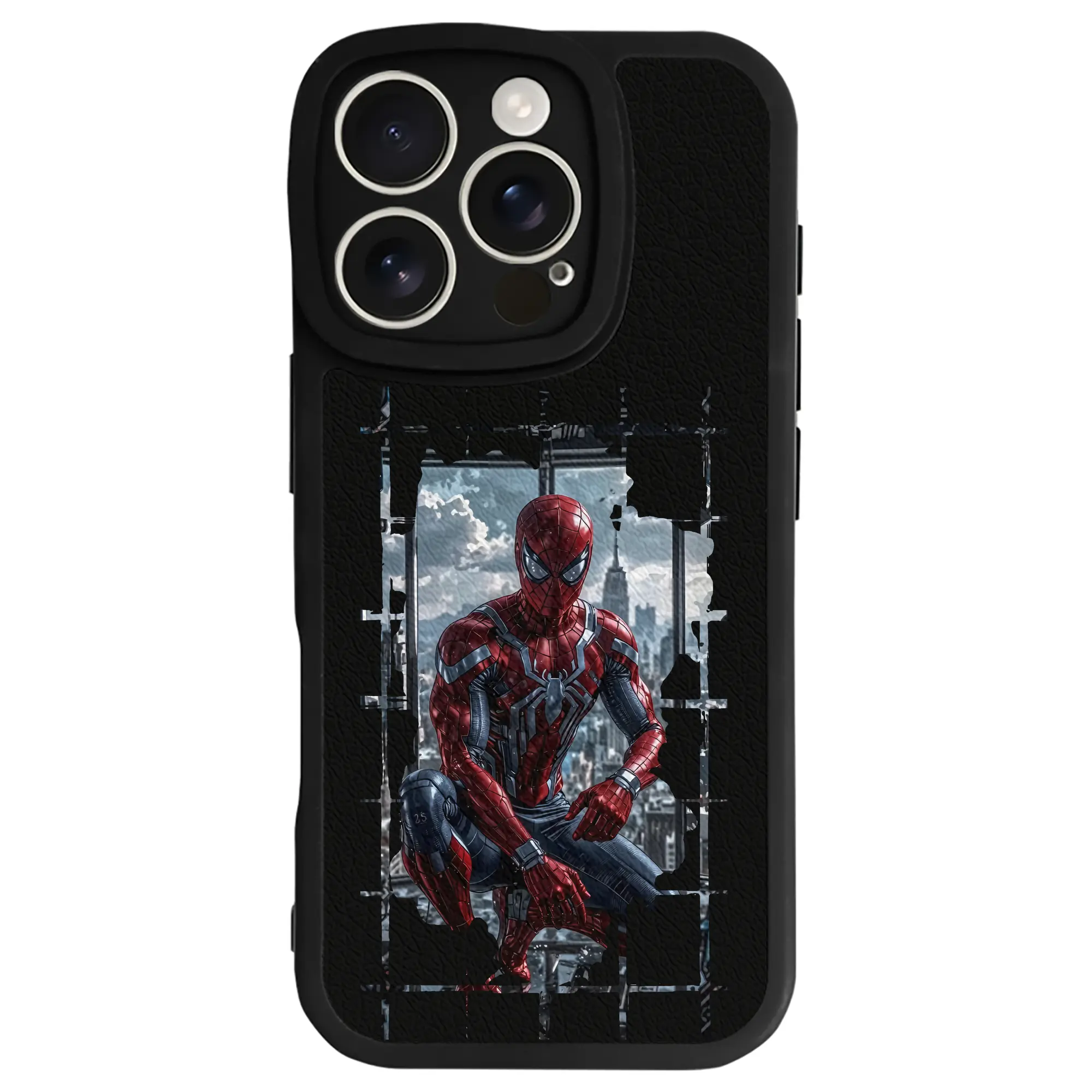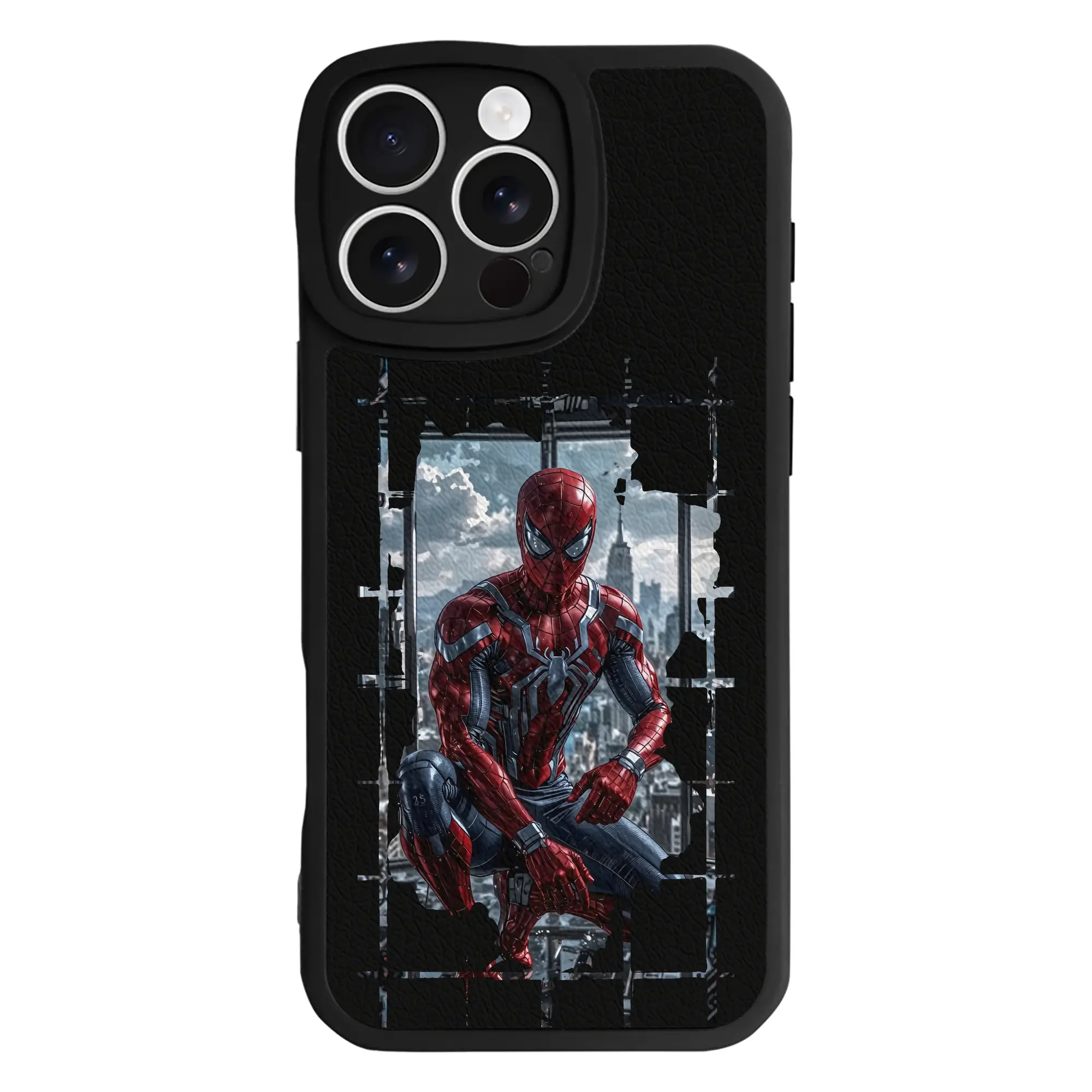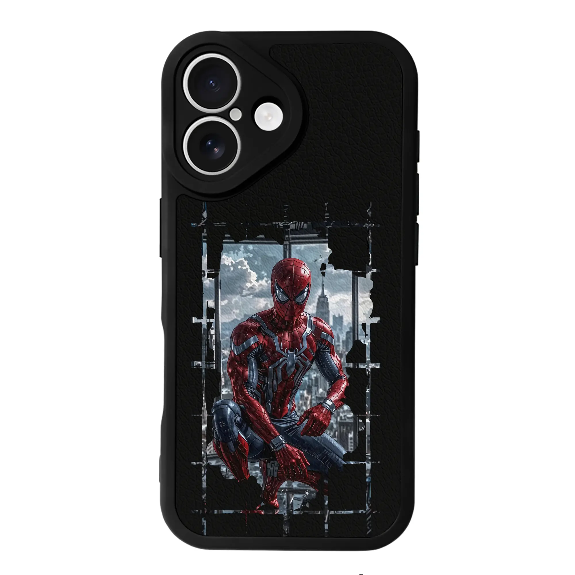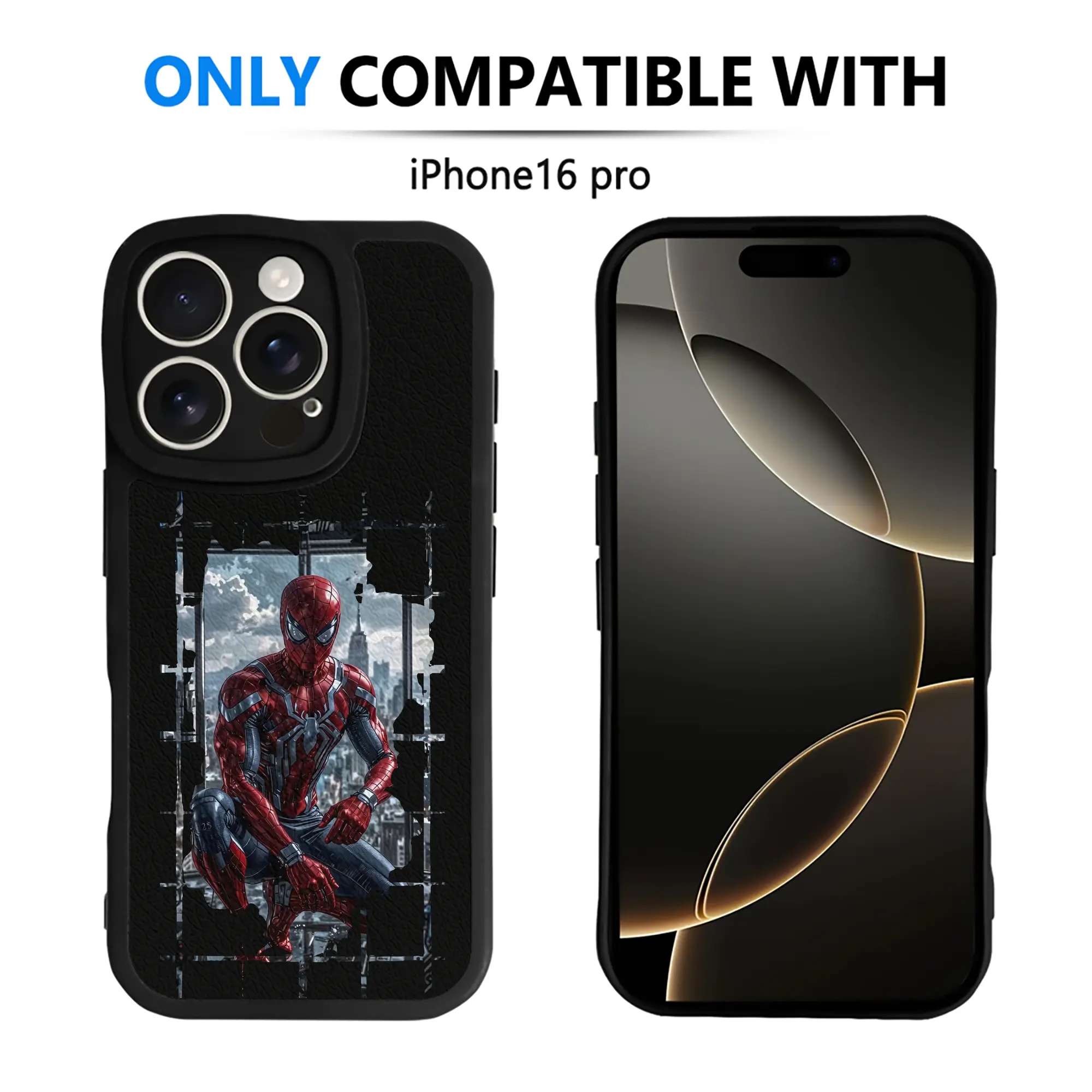 アベンジャーズ (Avenjāzu) グッズ スパイダーマン(Spider-Man) - IPhone 16シリーズ対応 ・ シリコンスマホケース ・ レザー調 ・ 高精度フィット ・ 耐衝撃 ・ ワイヤレス充電対応 ・ 精密カット