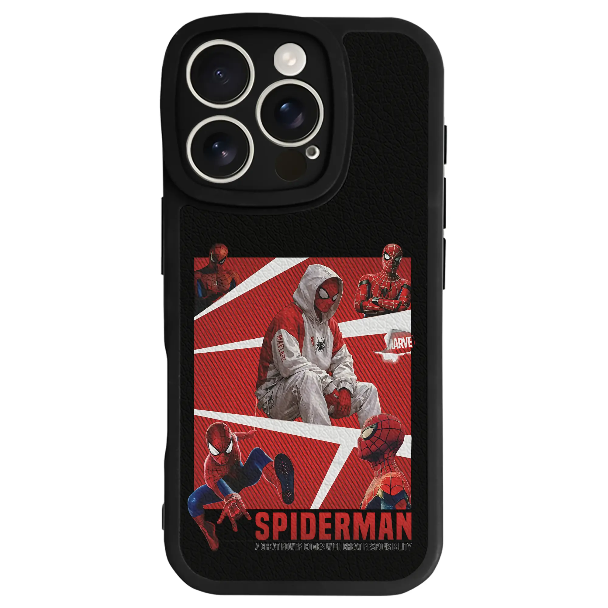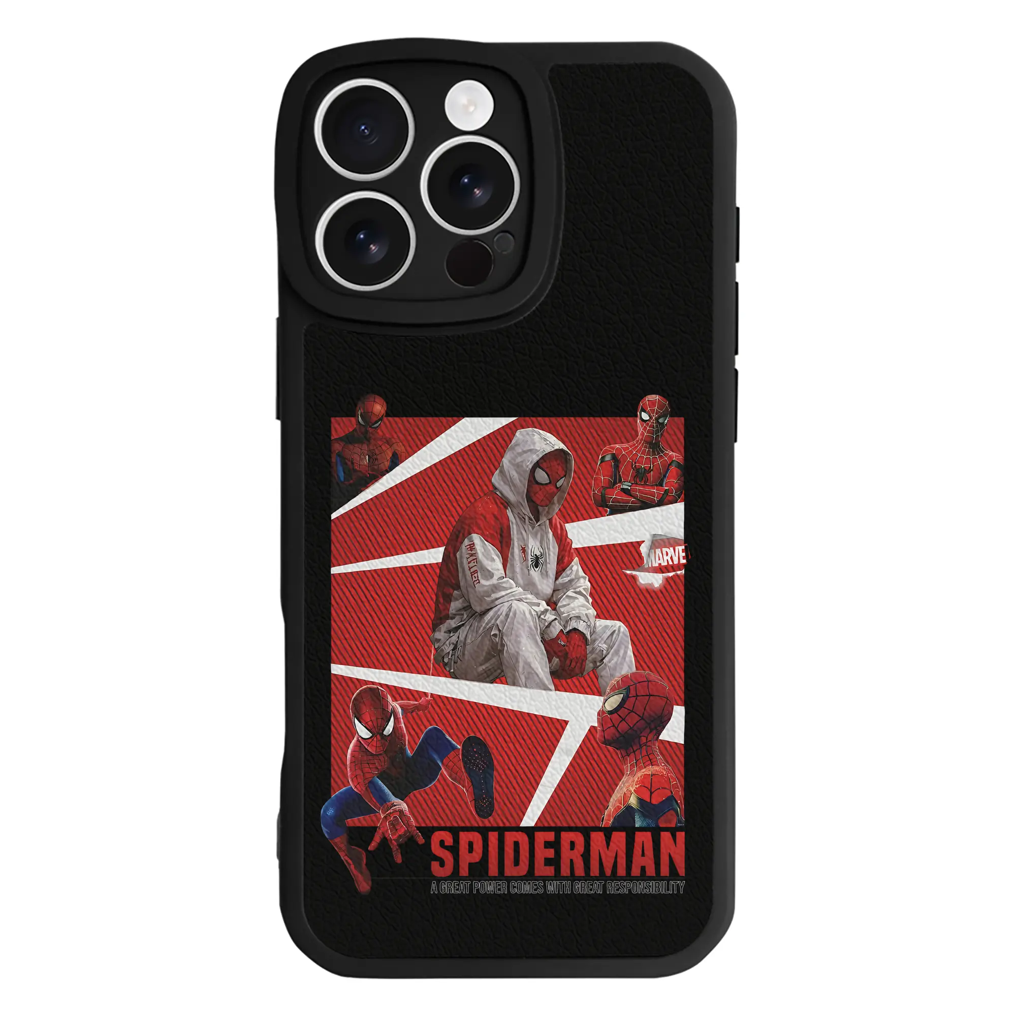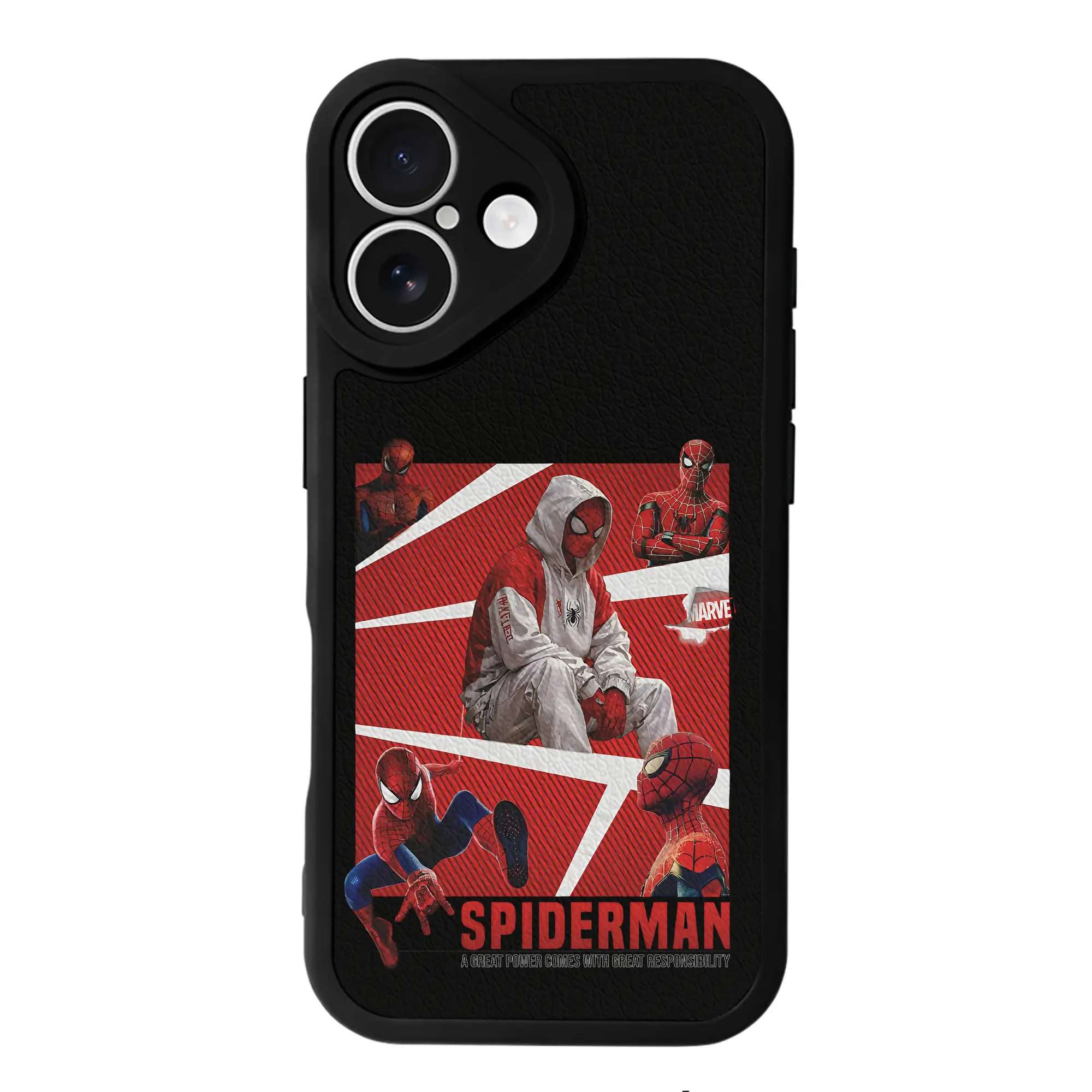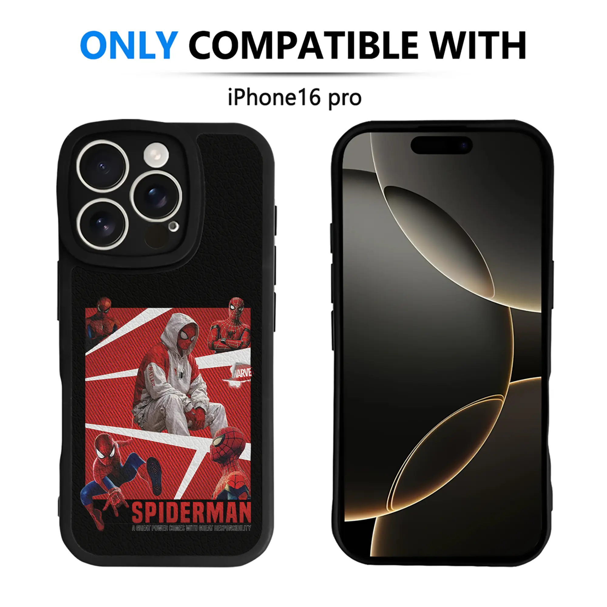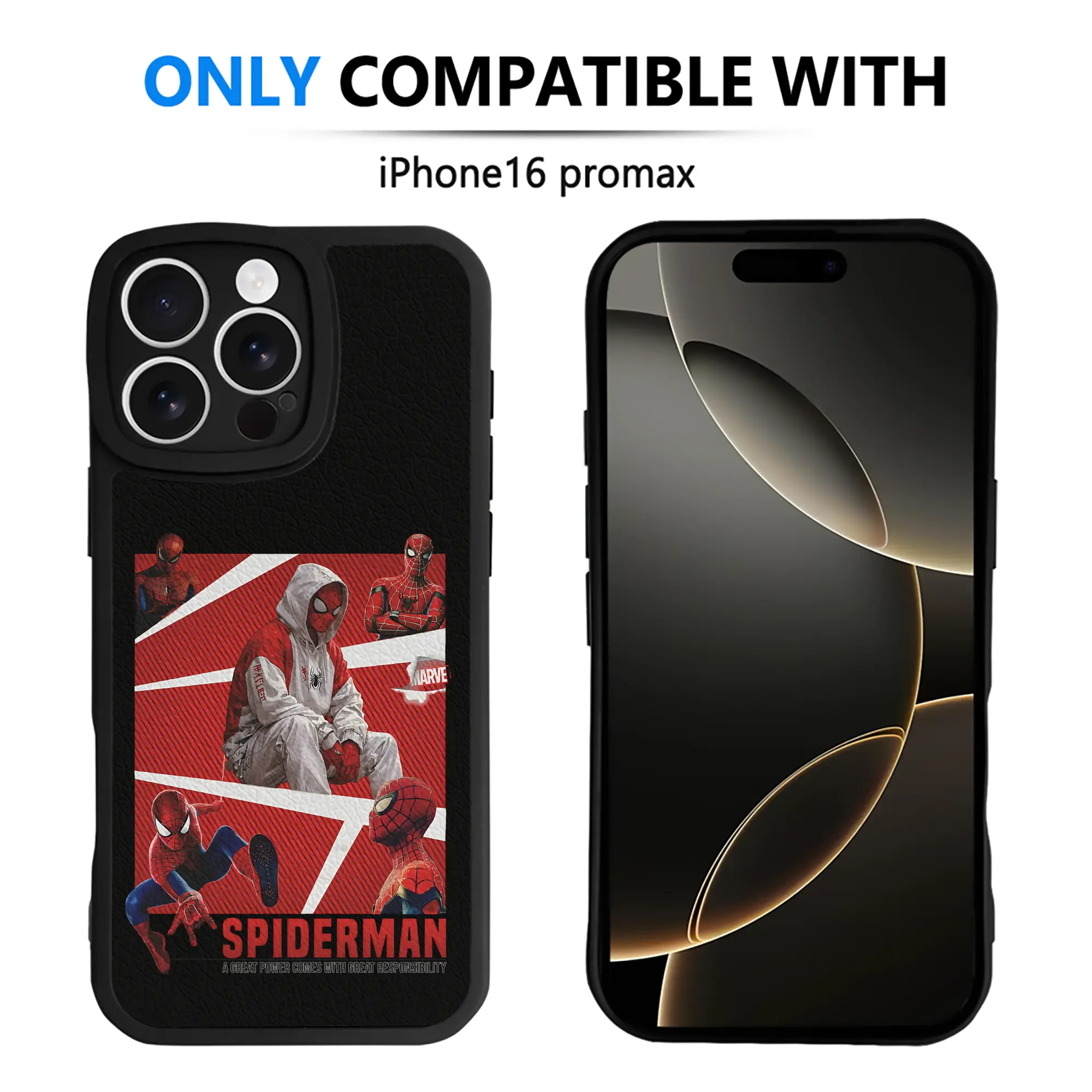 アベンジャーズ (Avenjāzu) グッズ スパイダーマン(Spider-Man) - IPhone 16シリーズ対応 ・ シリコンスマホケース ・ レザー調 ・ 高精度フィット ・ 耐衝撃 ・ ワイヤレス充電対応 ・ 精密カット