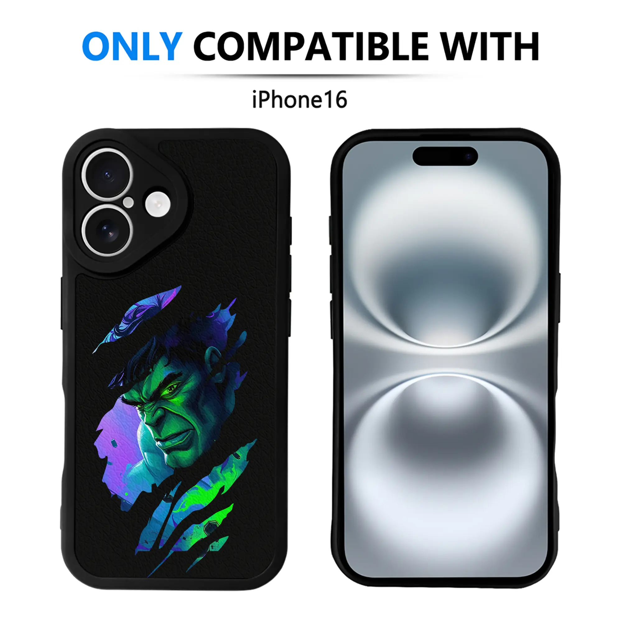 アベンジャーズ (Avenjāzu) グッズ ハルク(Hulk) - IPhone 16シリーズ対応 ・ シリコンスマホケース ・ レザー調 ・ 高精度フィット ・ 耐衝撃 ・ ワイヤレス充電対応 ・ 精密カット