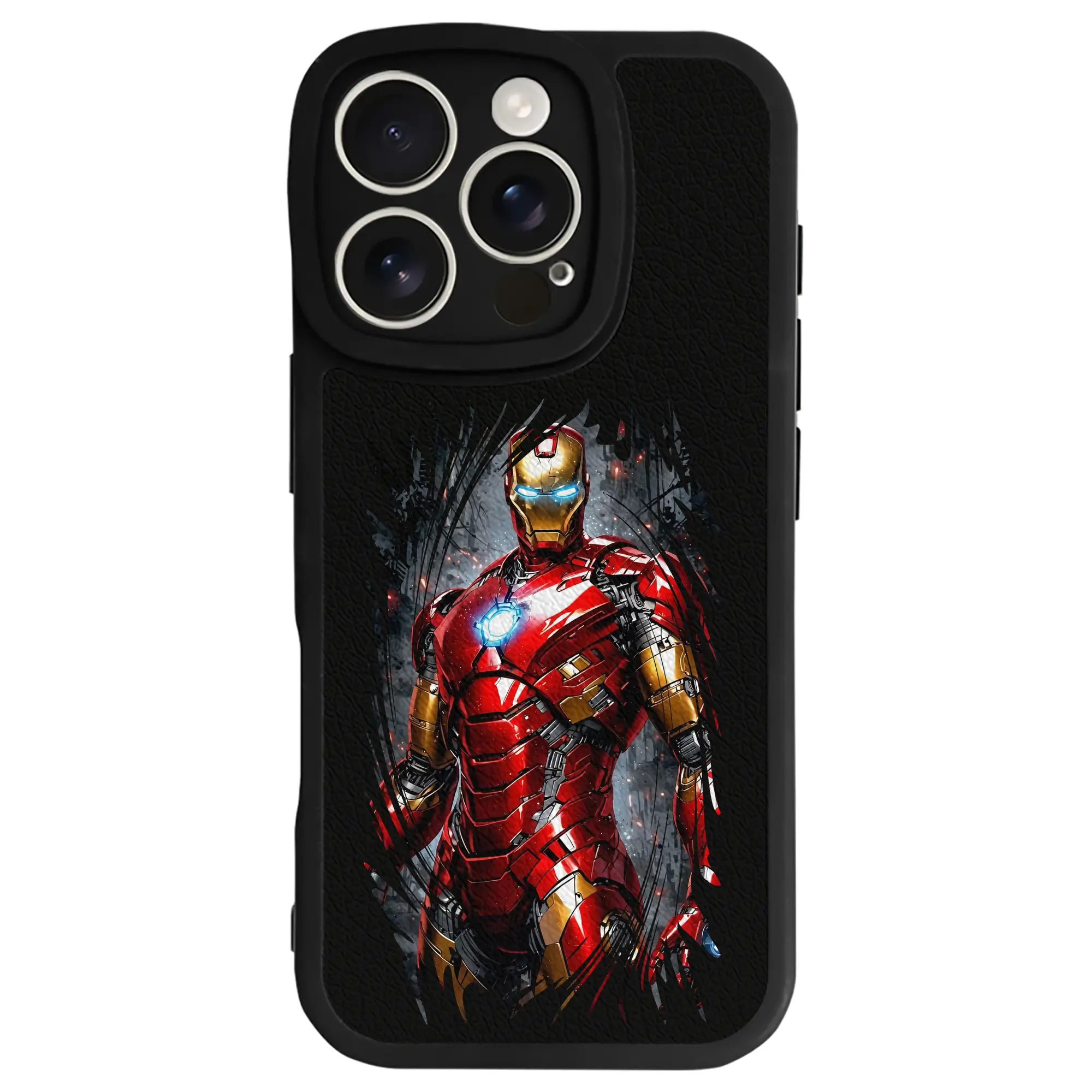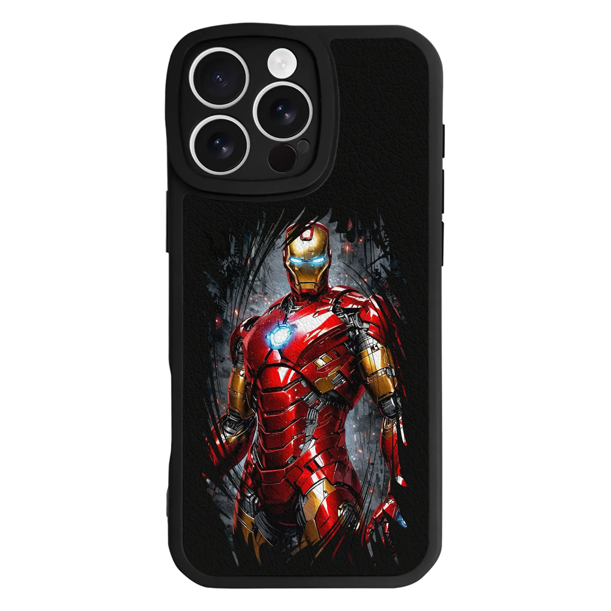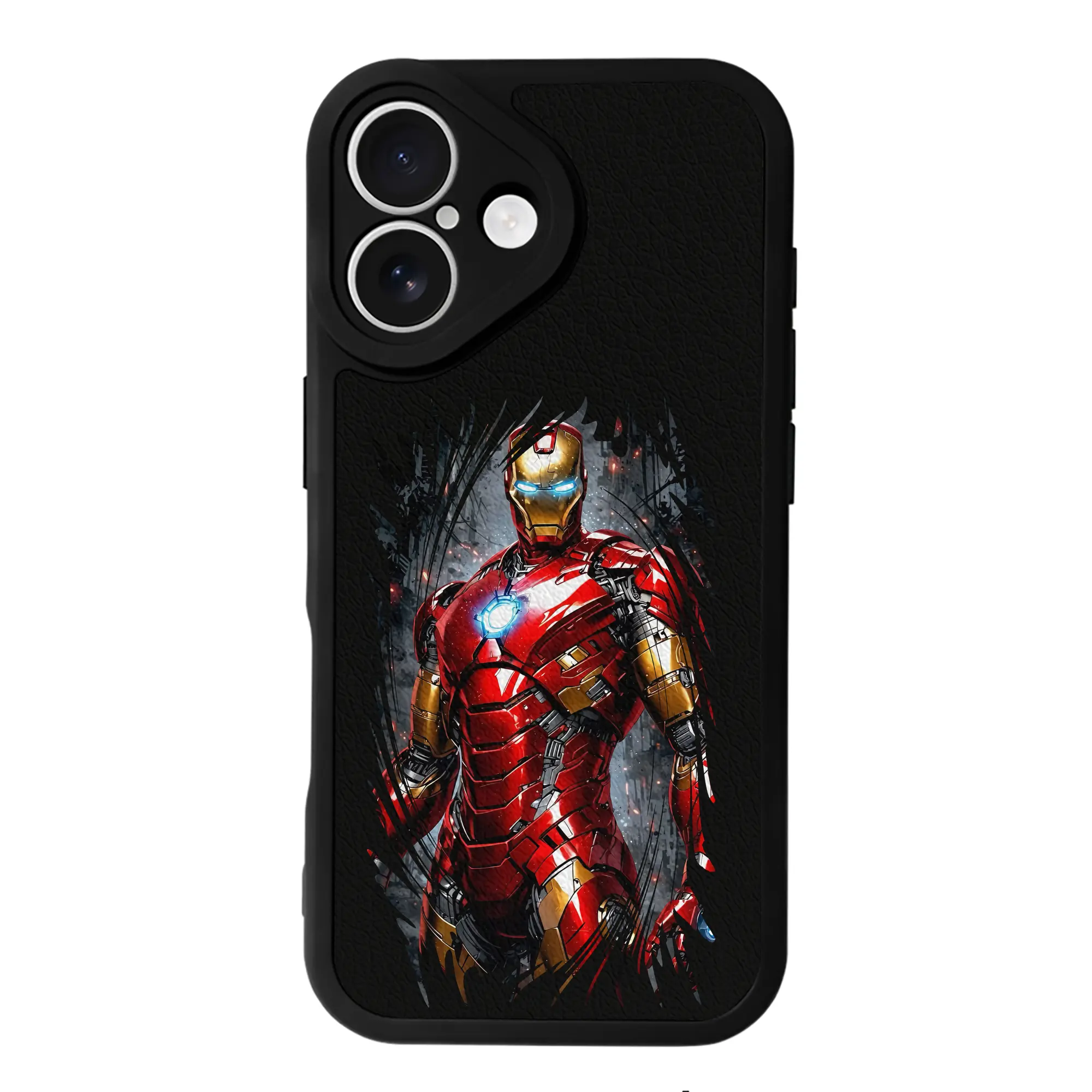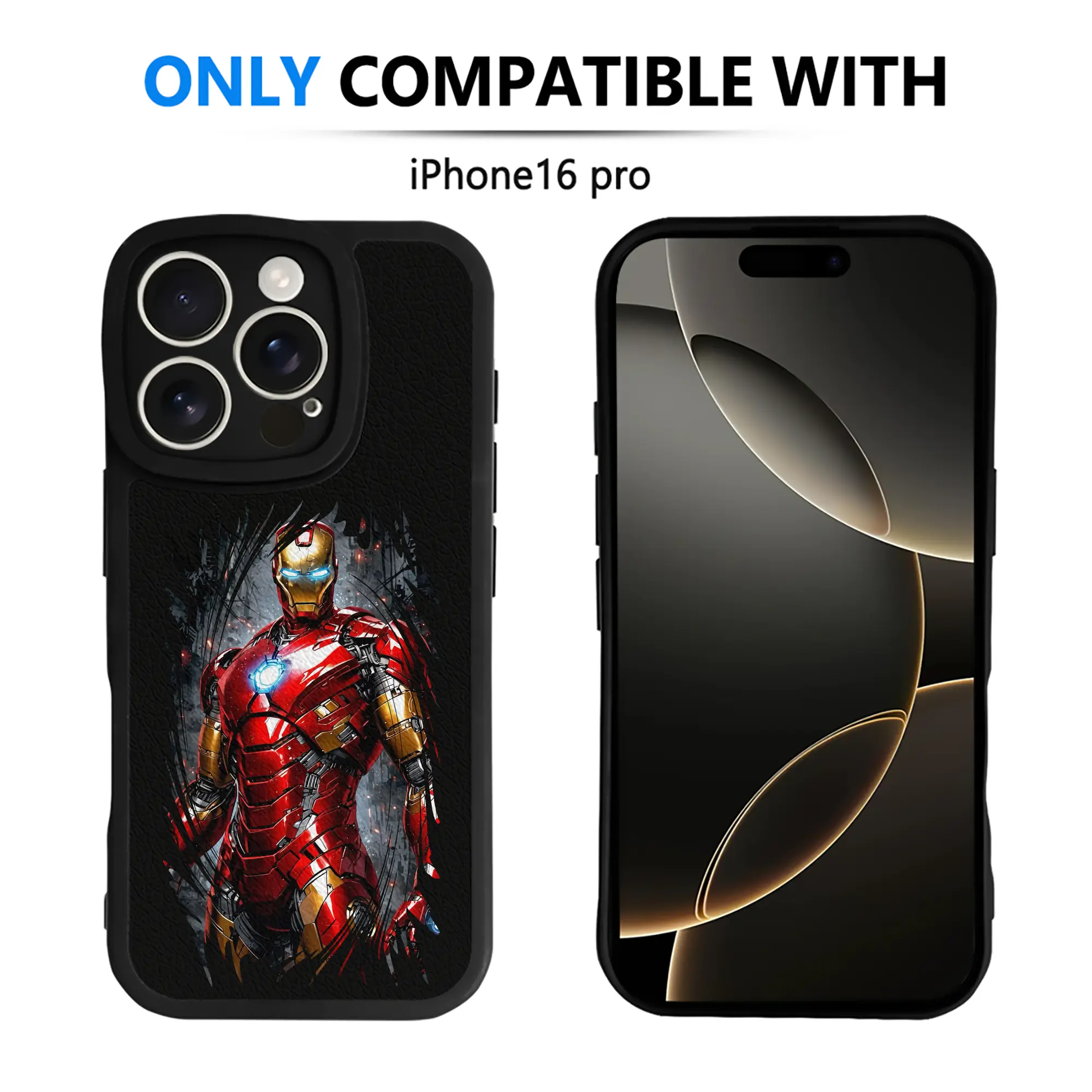 アベンジャーズ (Avenjāzu) グッズ アイアンマン(Iron Man) - IPhone 16シリーズ対応 ・ シリコンスマホケース ・ レザー調 ・ 高精度フィット ・ 耐衝撃 ・ ワイヤレス充電対応 ・ 精密カット