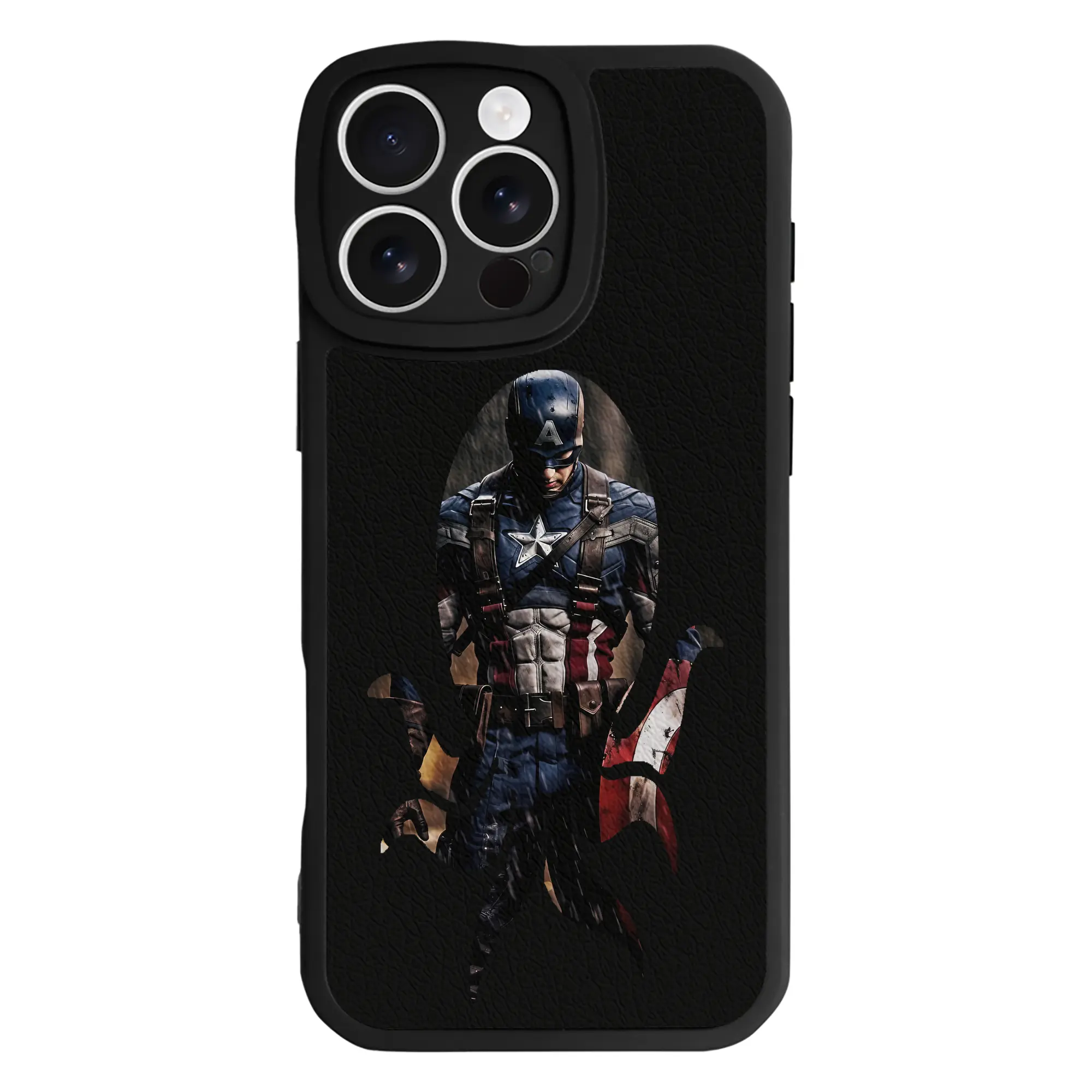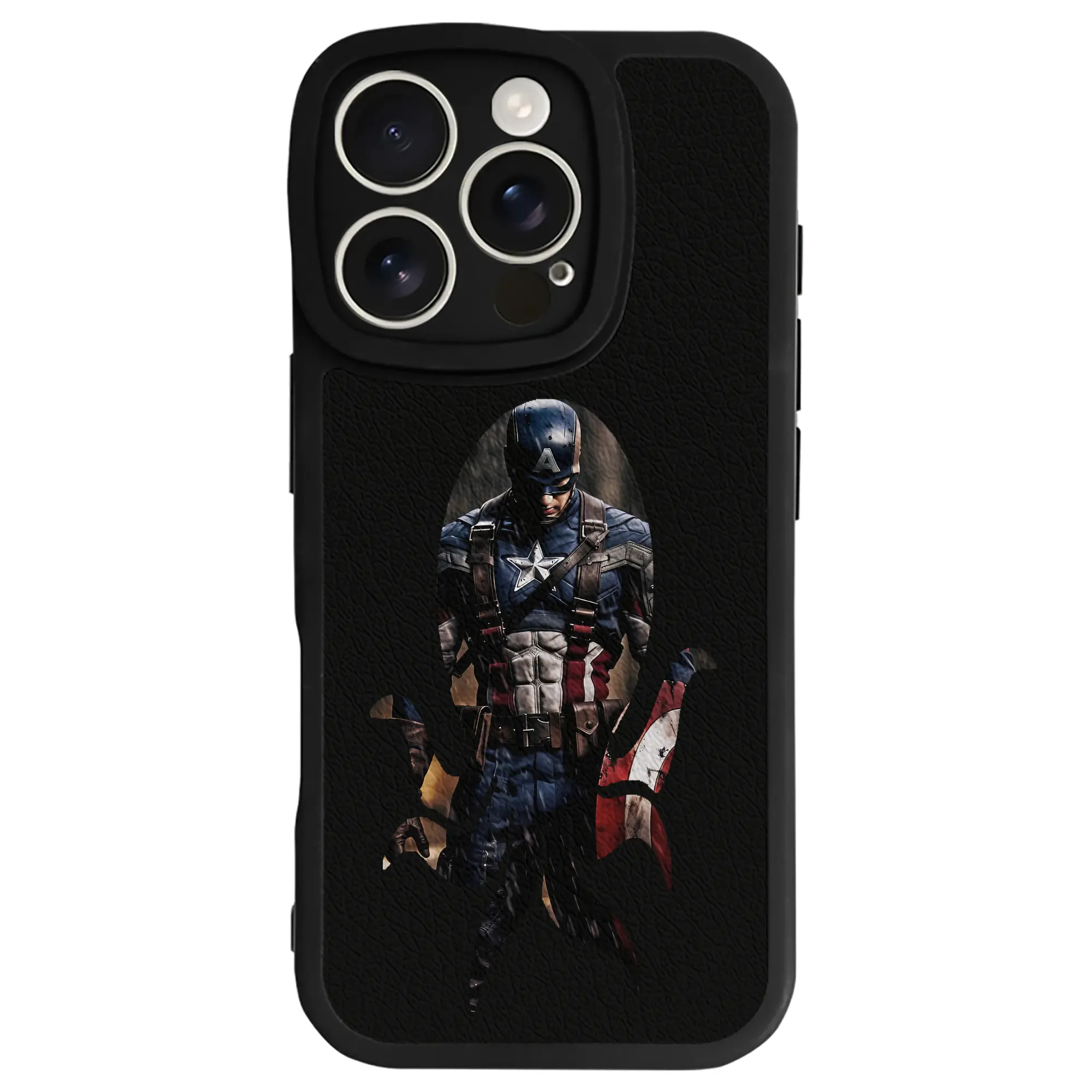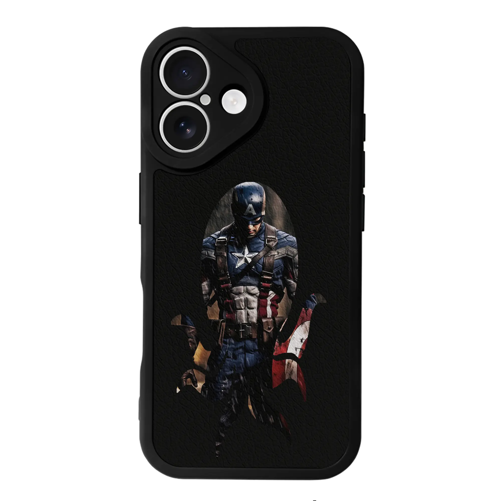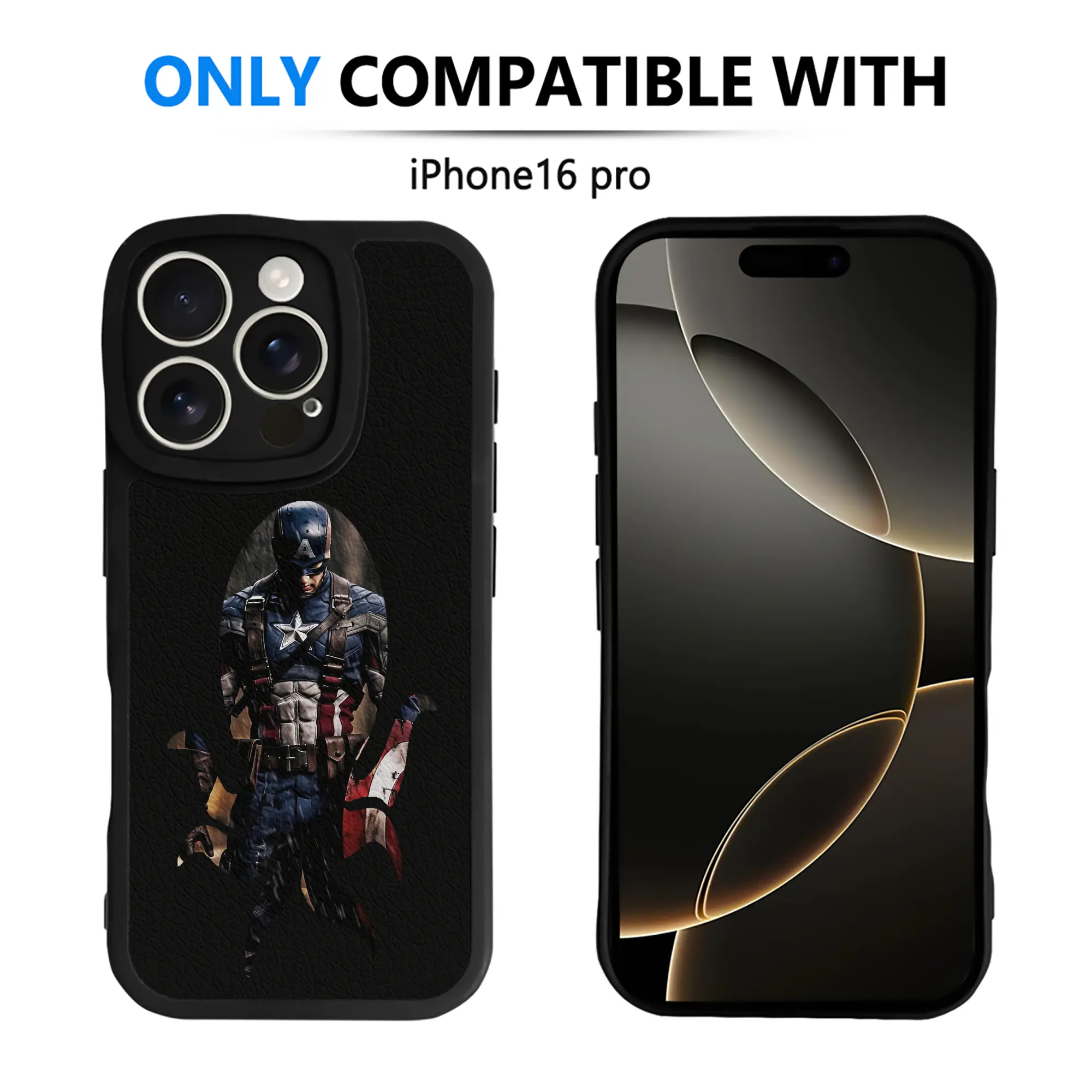 アベンジャーズ (Avenjāzu) グッズ キャプテン・アメリカ(Captain America) - IPhone 16シリーズ対応 ・ シリコンスマホケース ・ レザー調 ・ 高精度フィット ・ 耐衝撃 ・ ワイヤレス充電対応 ・ 精密カット