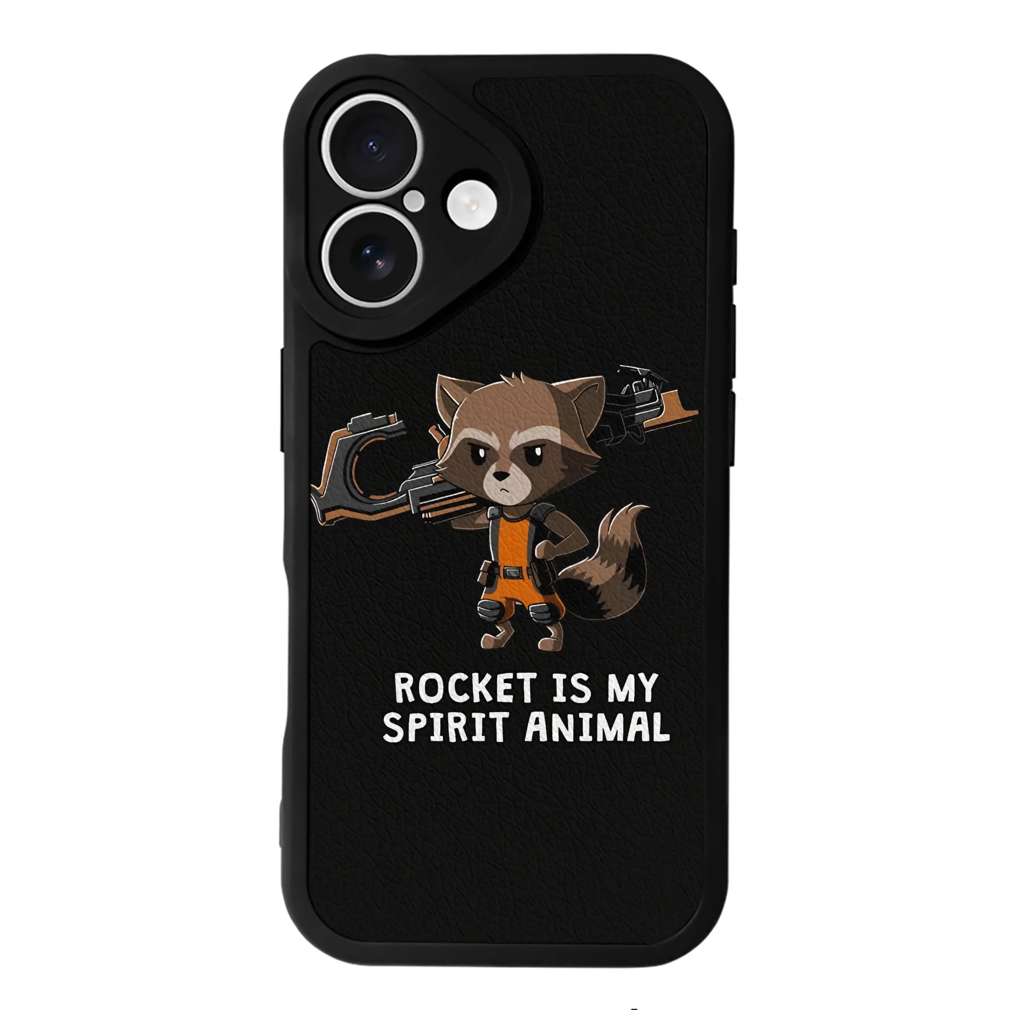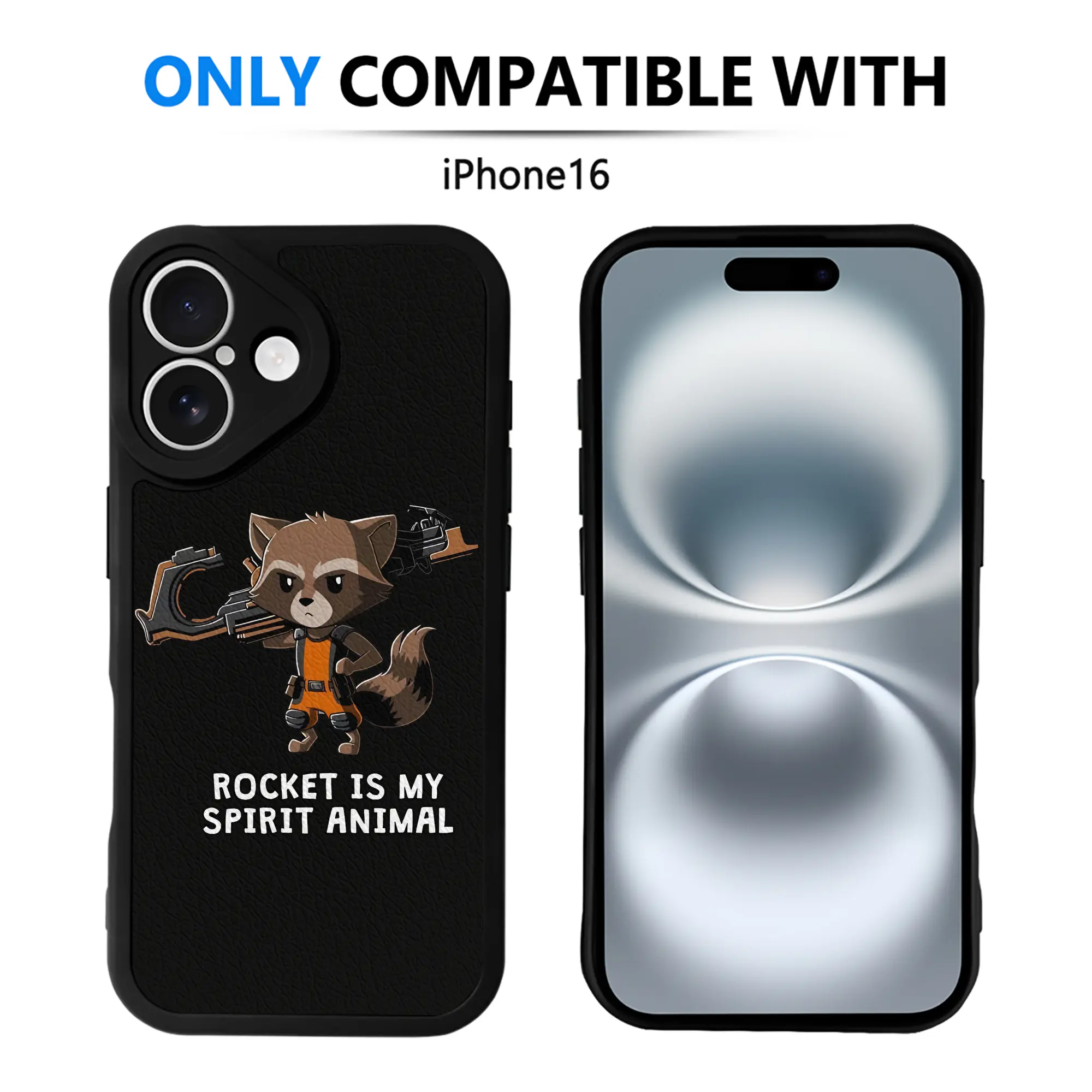 アベンジャーズ (Avenjāzu) グッズ ロケット(Roketto) - IPhone 16シリーズ対応 ・ シリコンスマホケース ・ レザー調 ・ 高精度フィット ・ 耐衝撃 ・ ワイヤレス充電対応 ・ 精密カット