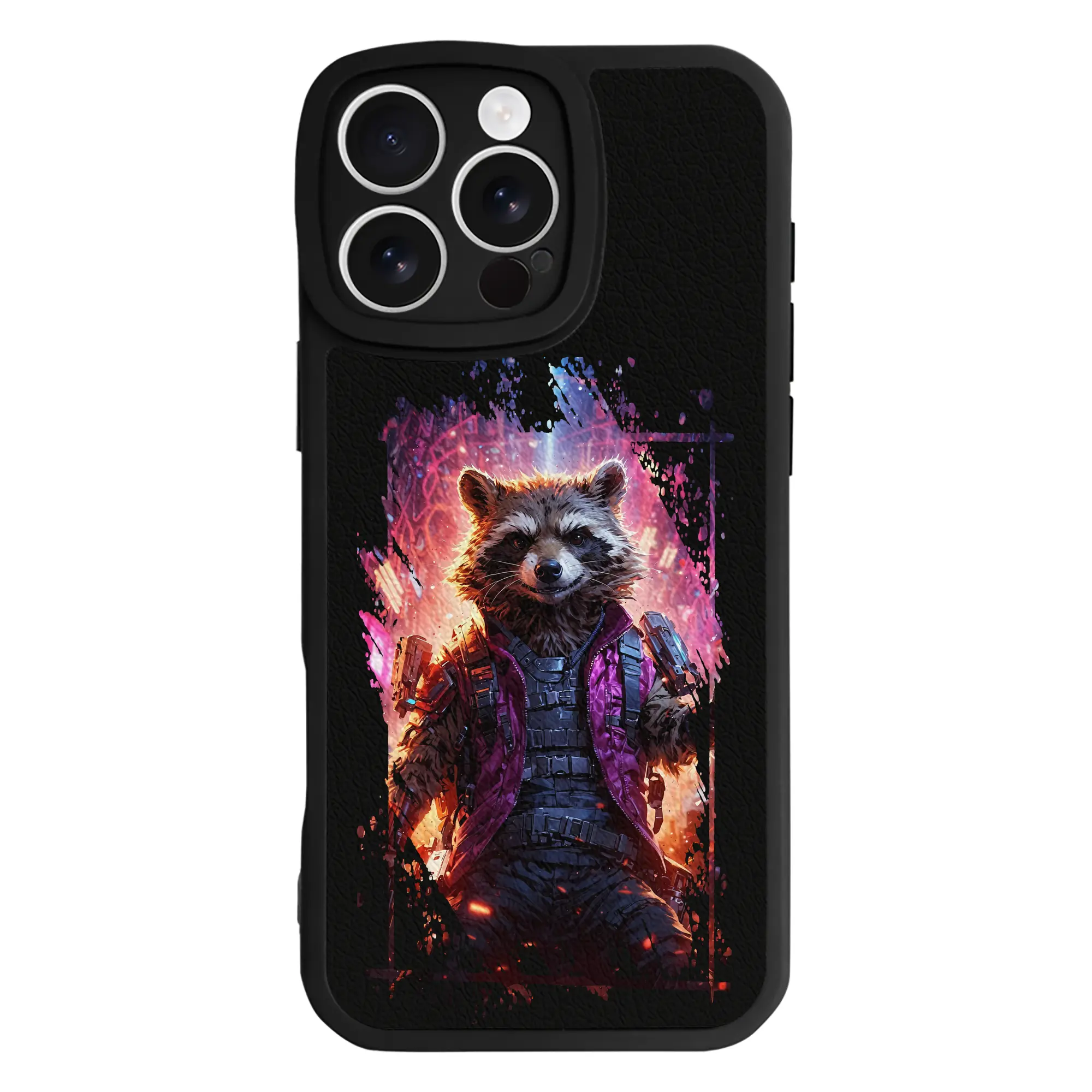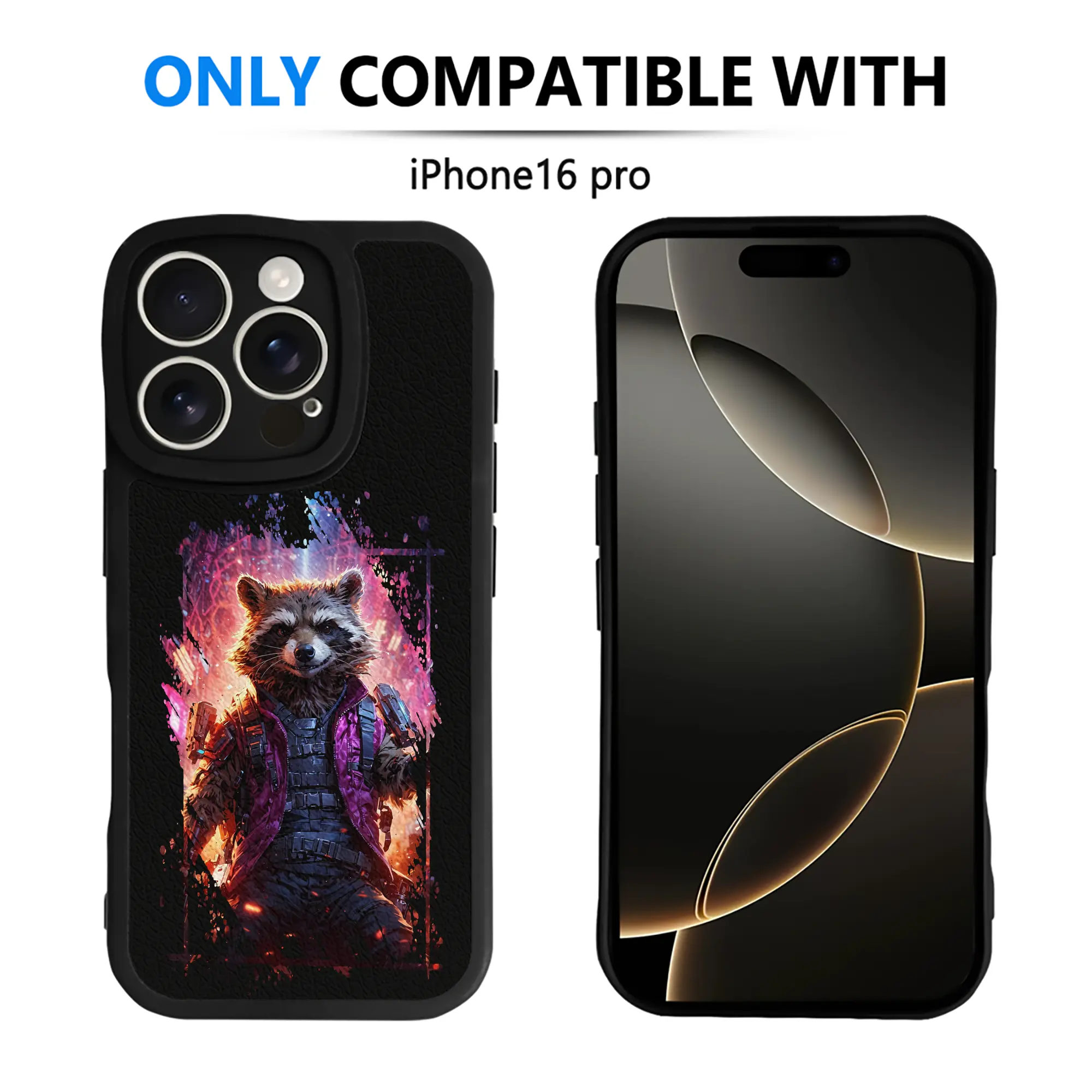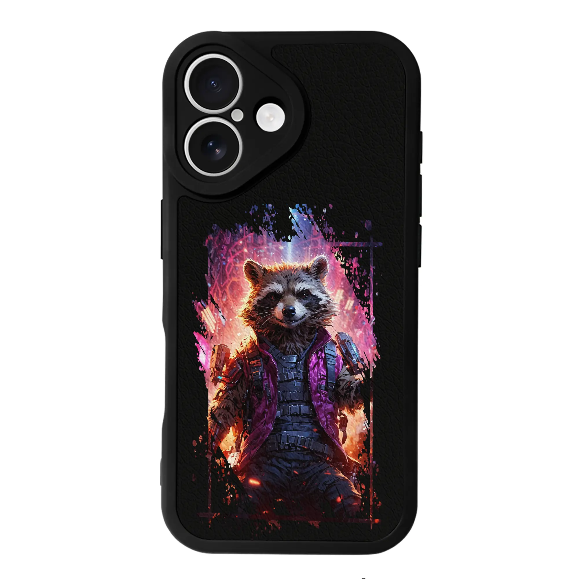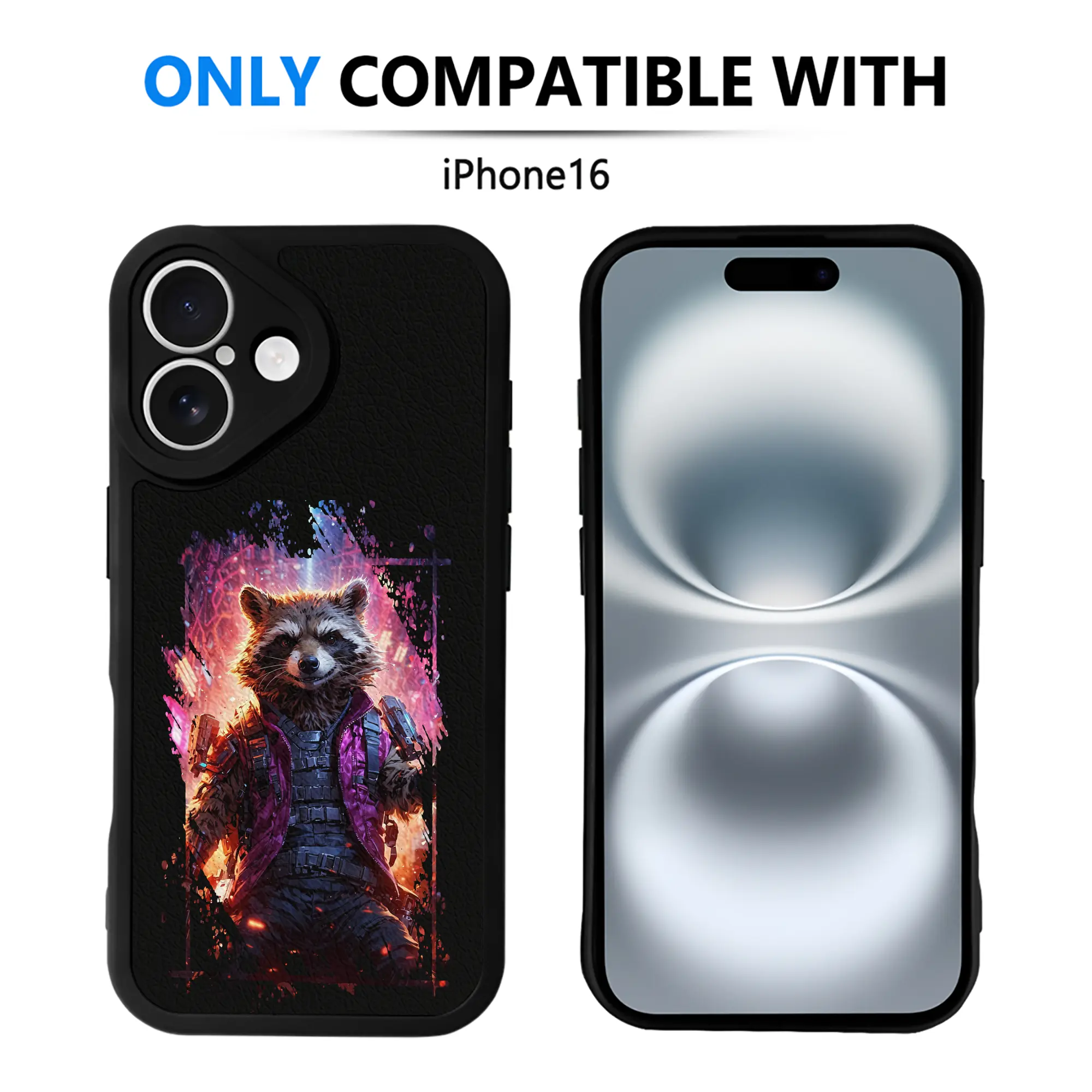 アベンジャーズ (Avenjāzu) グッズ ロケット(Roketto) - IPhone 16シリーズ対応 ・ シリコンスマホケース ・ レザー調 ・ 高精度フィット ・ 耐衝撃 ・ ワイヤレス充電対応 ・ 精密カット
