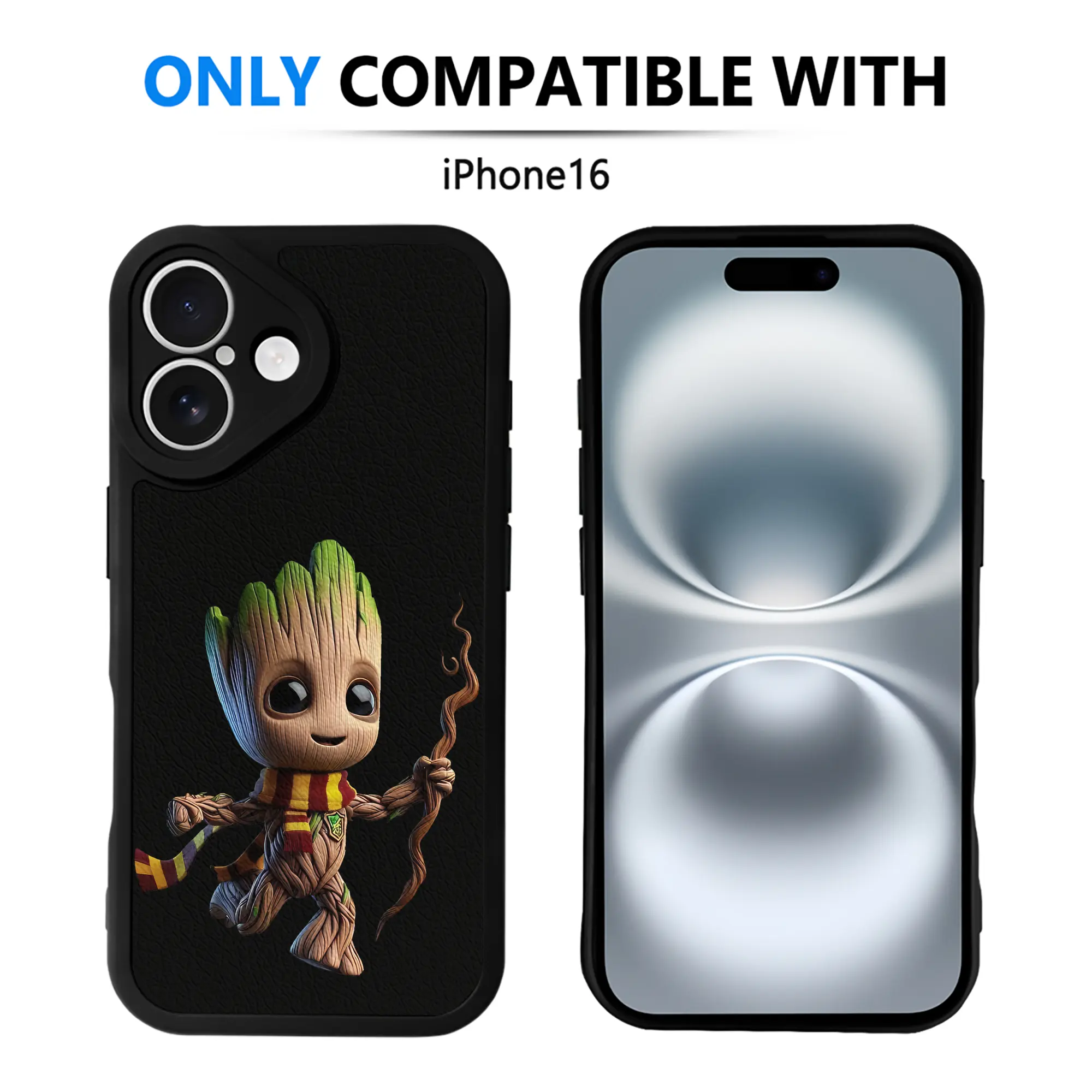 アベンジャーズ (Avenjāzu) グッズ グルート(Groot) - IPhone 16シリーズ対応 ・ シリコンスマホケース ・ レザー調 ・ 高精度フィット ・ 耐衝撃 ・ ワイヤレス充電対応 ・ 精密カット