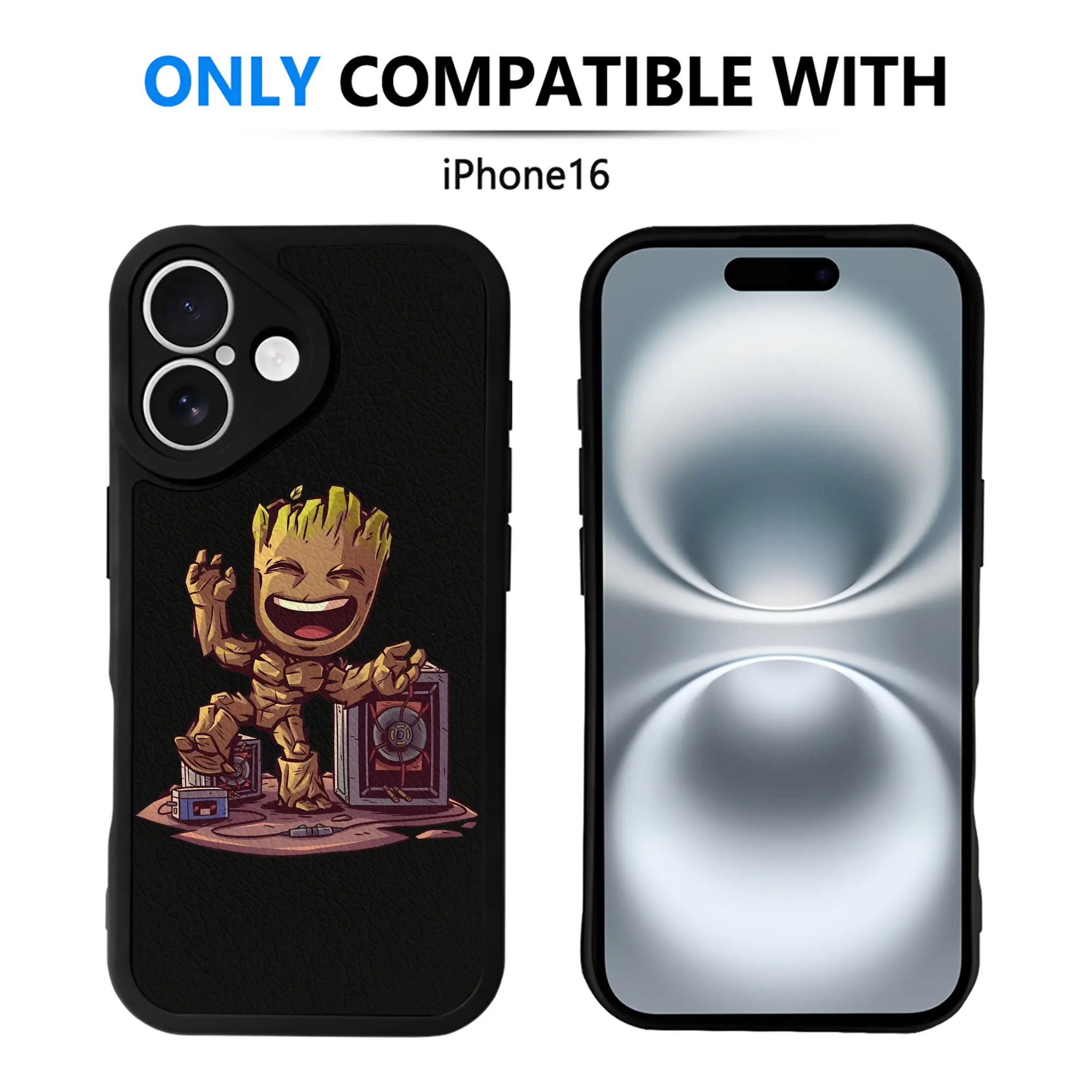 アベンジャーズ (Avenjāzu) グッズ グルート(Groot) - IPhone 16シリーズ対応 ・ シリコンスマホケース ・ レザー調 ・ 高精度フィット ・ 耐衝撃 ・ ワイヤレス充電対応 ・ 精密カット