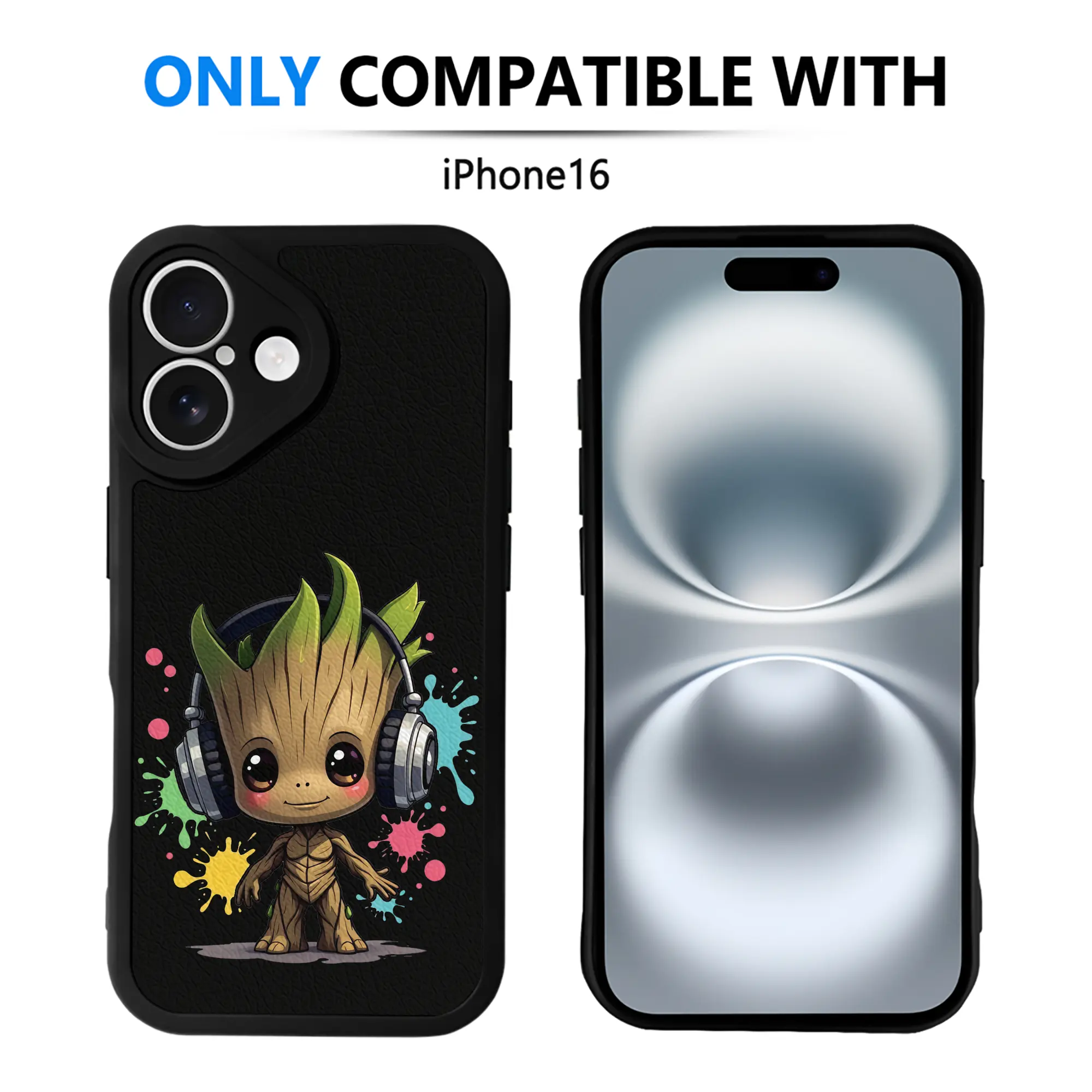 アベンジャーズ (Avenjāzu) グッズ グルート(Groot) - IPhone 16シリーズ対応 ・ シリコンスマホケース ・ レザー調 ・ 高精度フィット ・ 耐衝撃 ・ ワイヤレス充電対応 ・ 精密カット