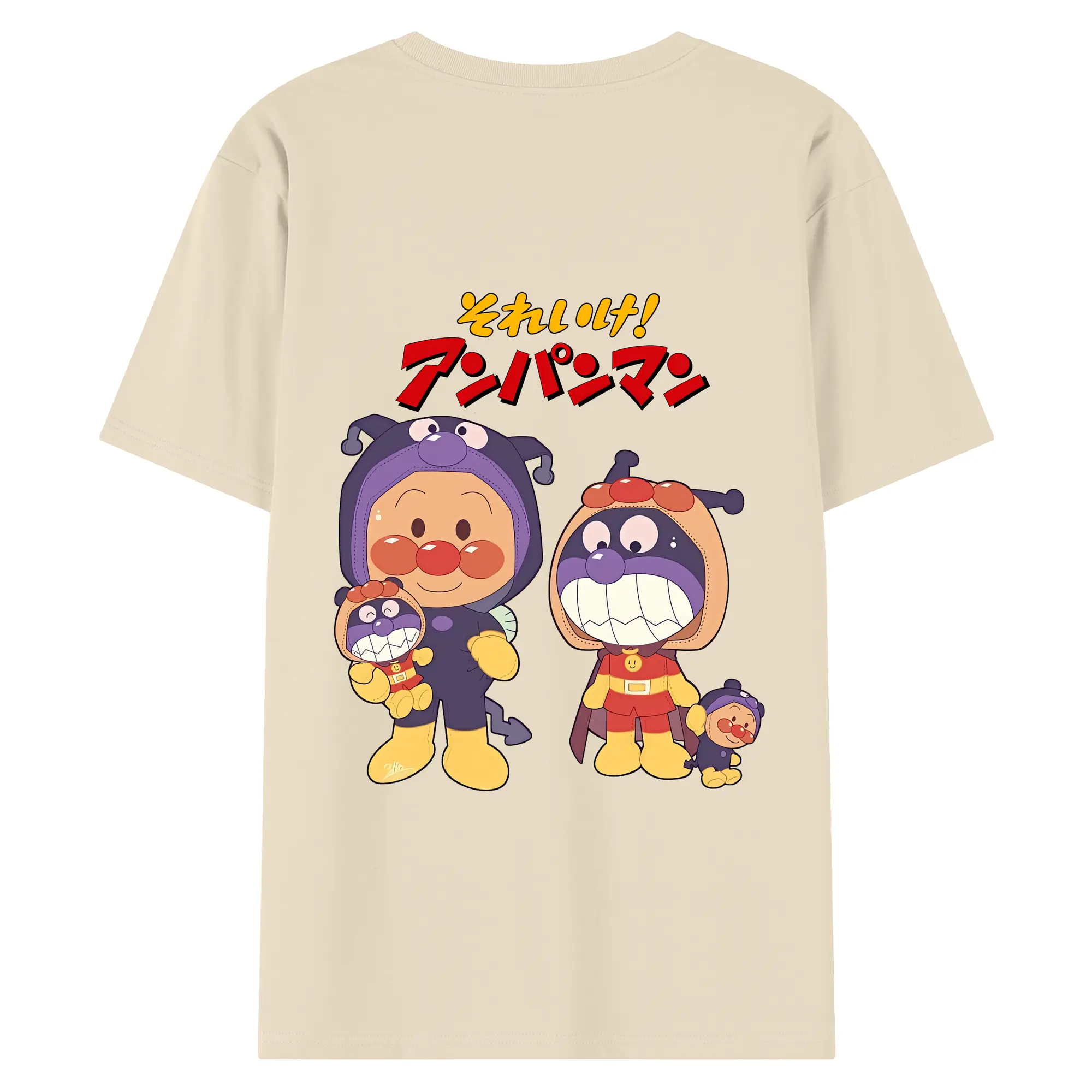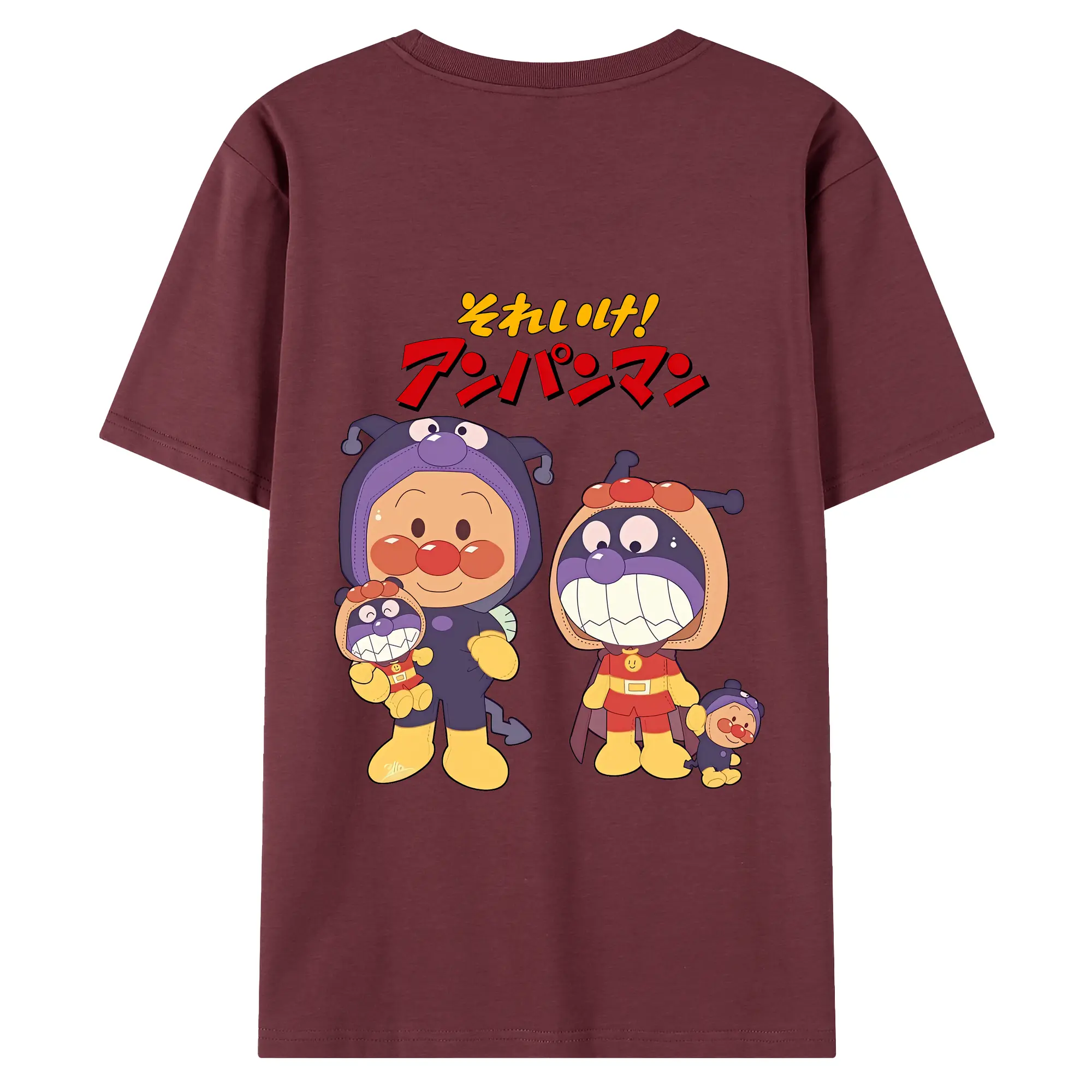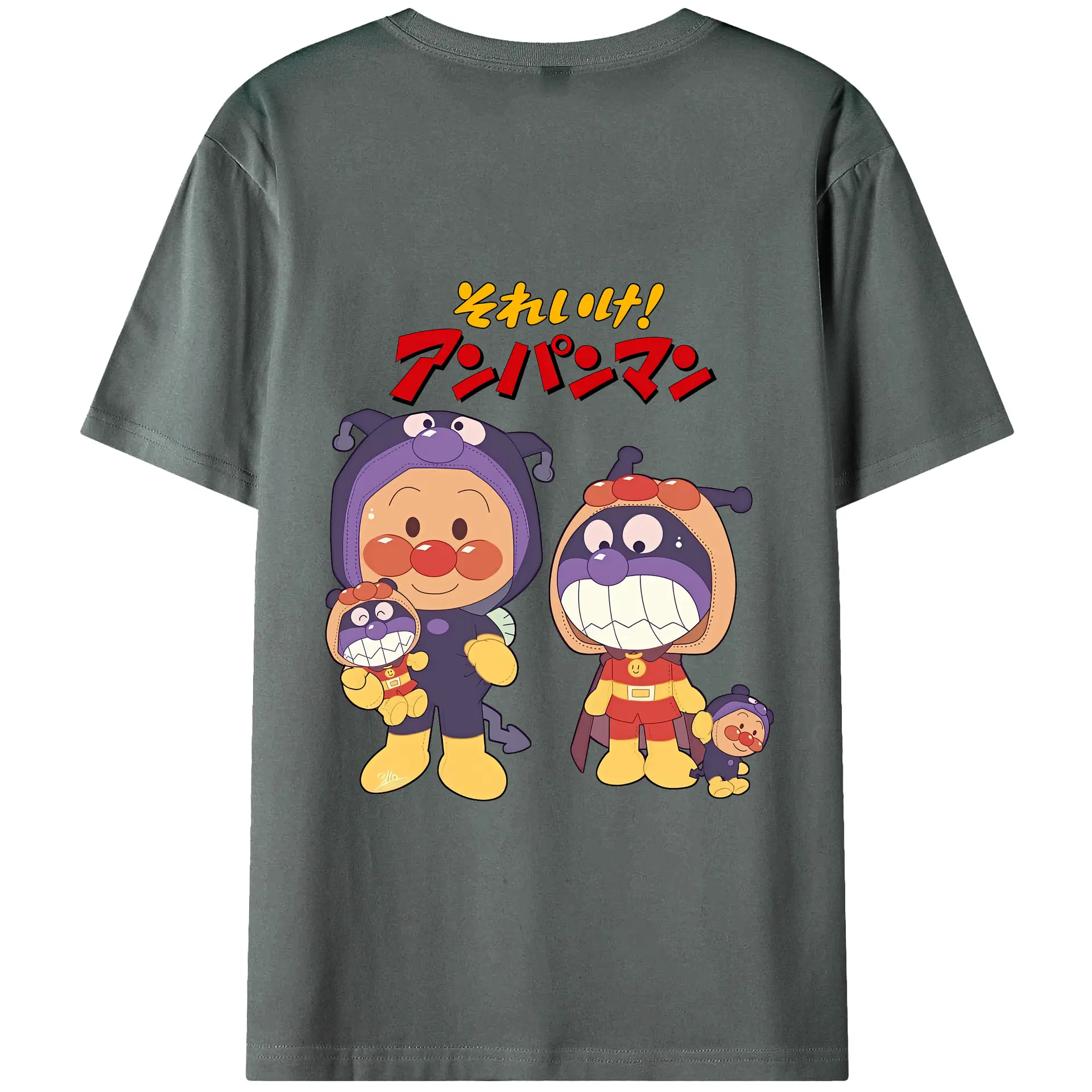 アンパンマン グッズ,ばいきんまん - 綿100% ヴィンテージ風 半袖Tシャツ ・ 背面プリント ・ 柔らか肌触り ・ 通気性 快適 ・ スポーツ カジュアル 外出用