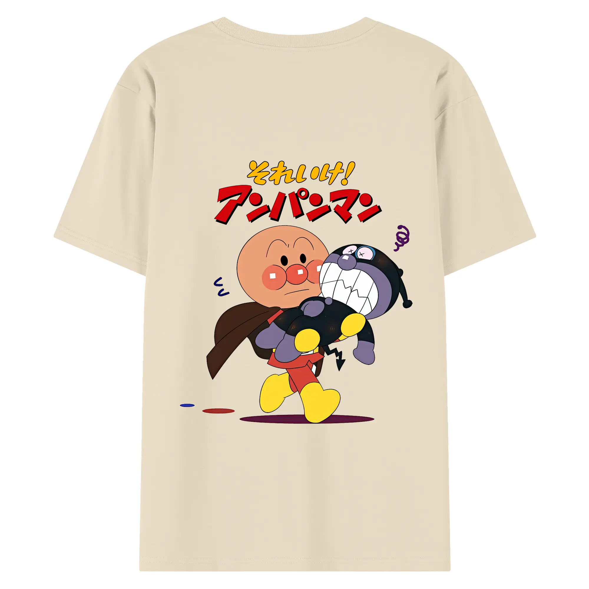 アンパンマン グッズ,ばいきんまん - 綿100% ヴィンテージ風 半袖Tシャツ ・ 背面プリント ・ 柔らか肌触り ・ 通気性 快適 ・ スポーツ カジュアル 外出用