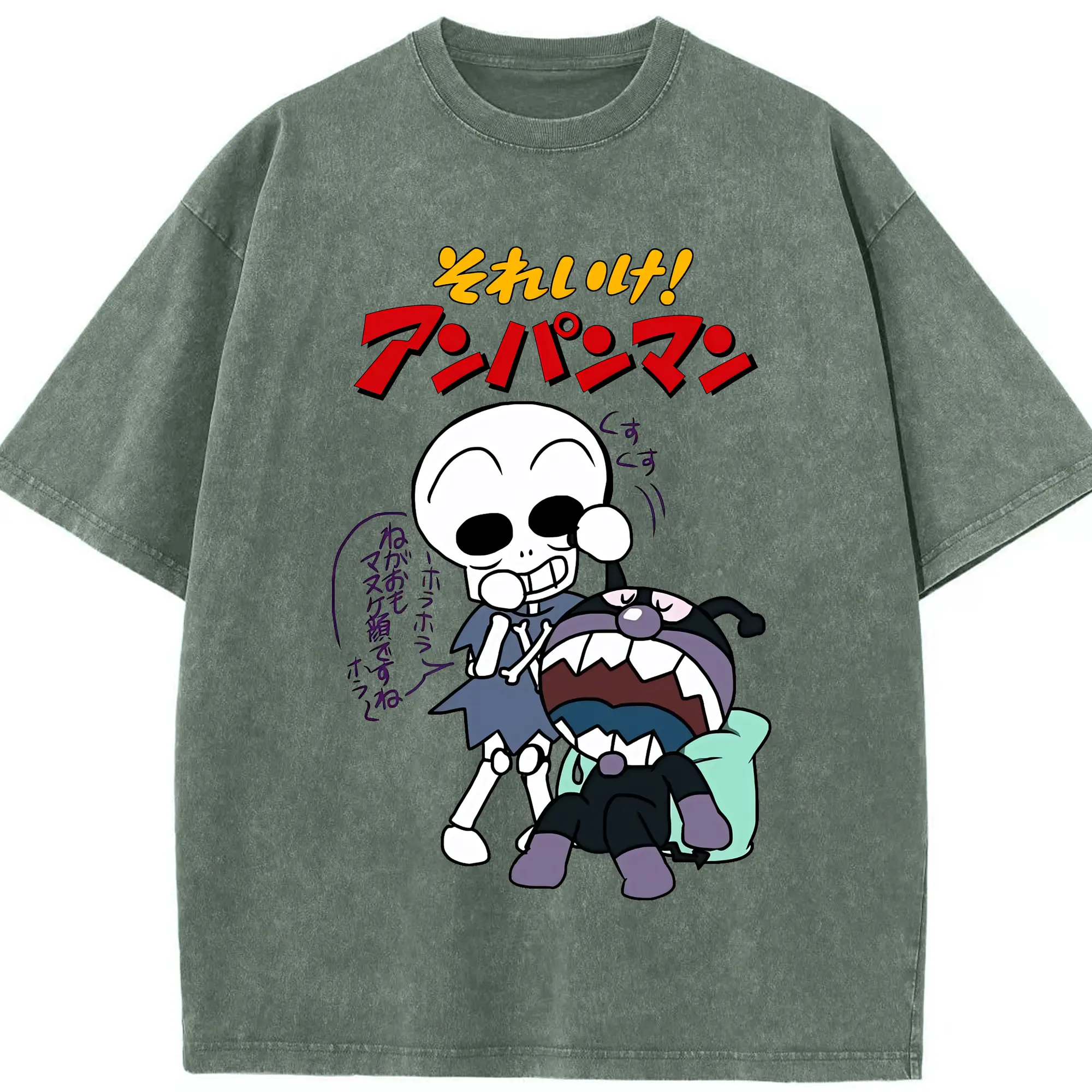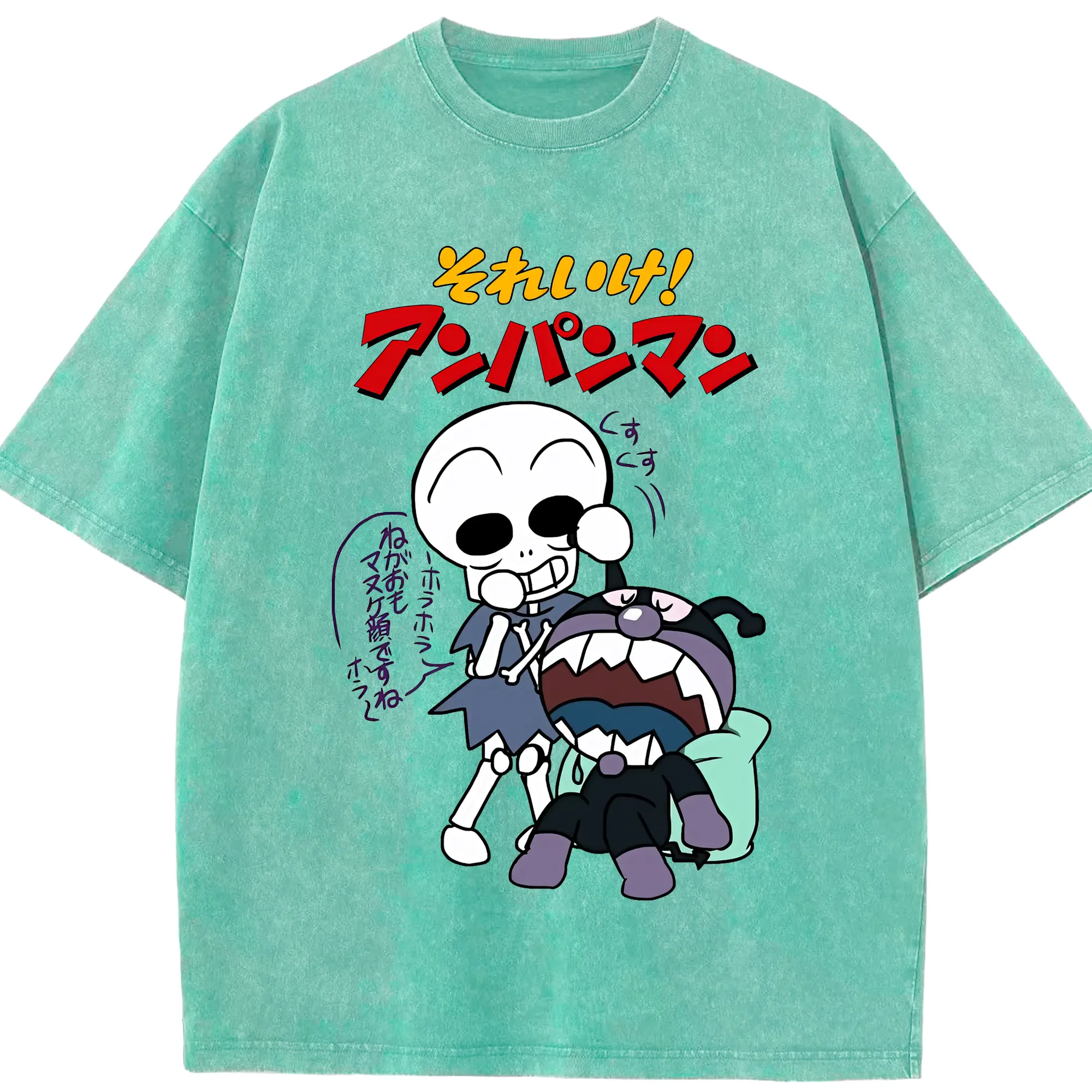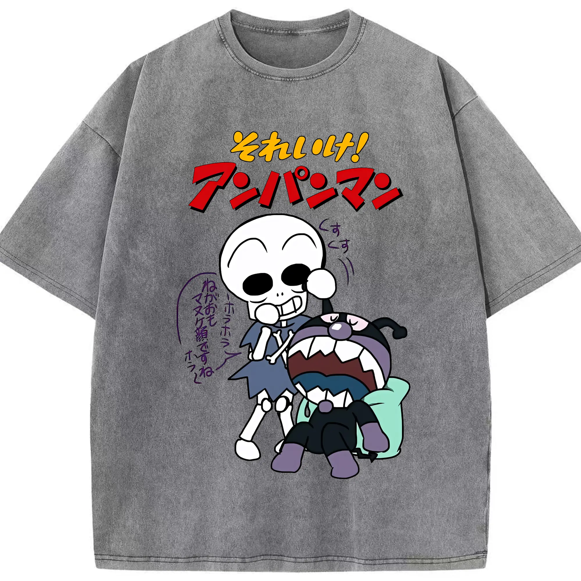 アンパンマン グッズ,ばいきんまん - 綿100% ヴィンテージ風 半袖Tシャツ ・ 背面プリント ・ 柔らか肌触り ・ 通気性 快適 ・ スポーツ カジュアル 外出用