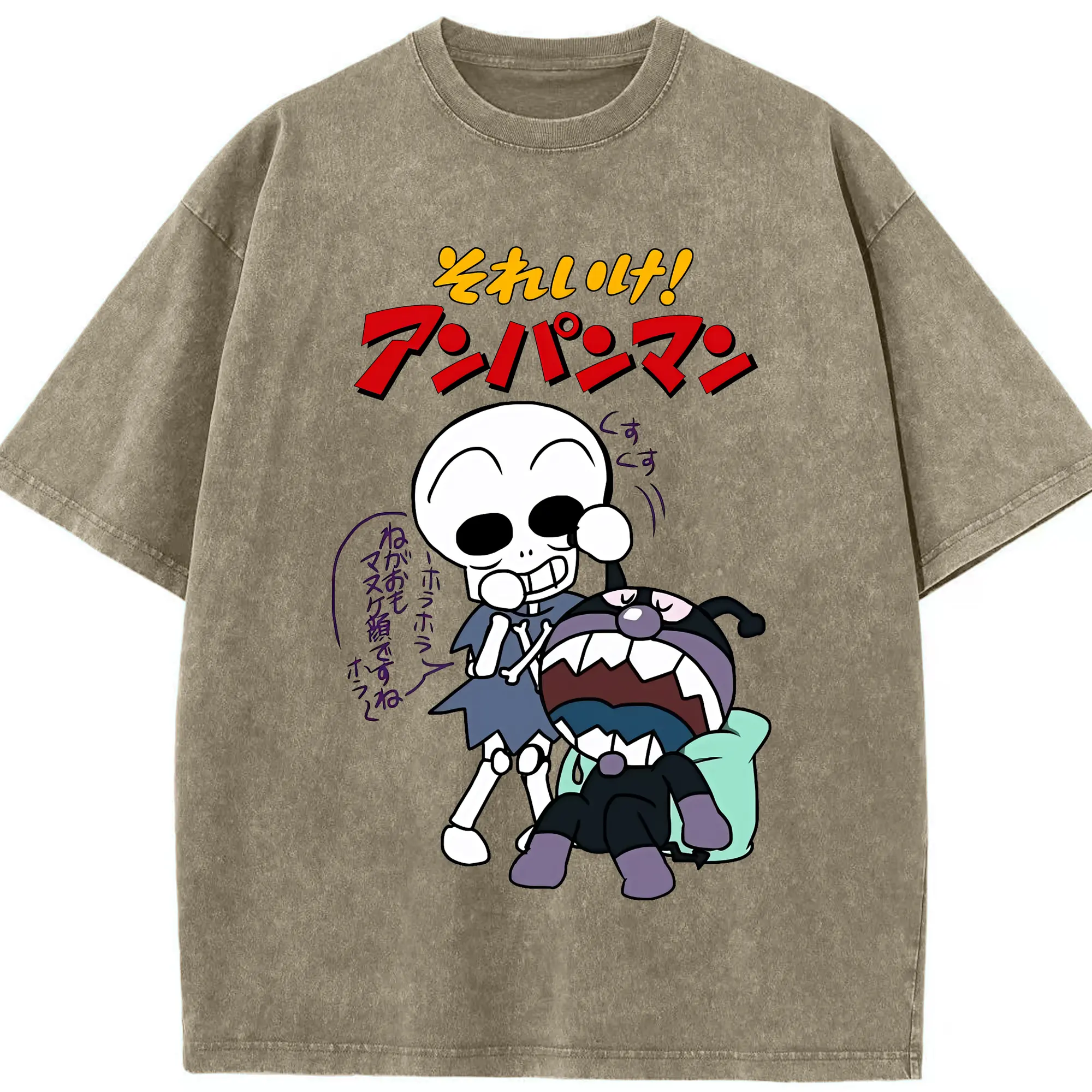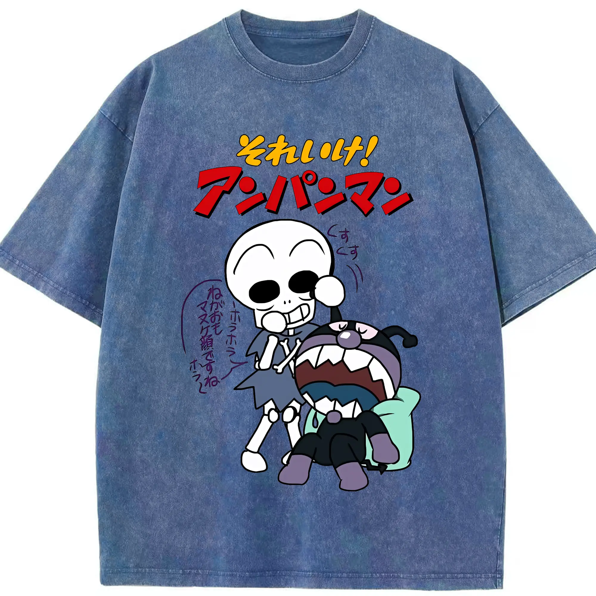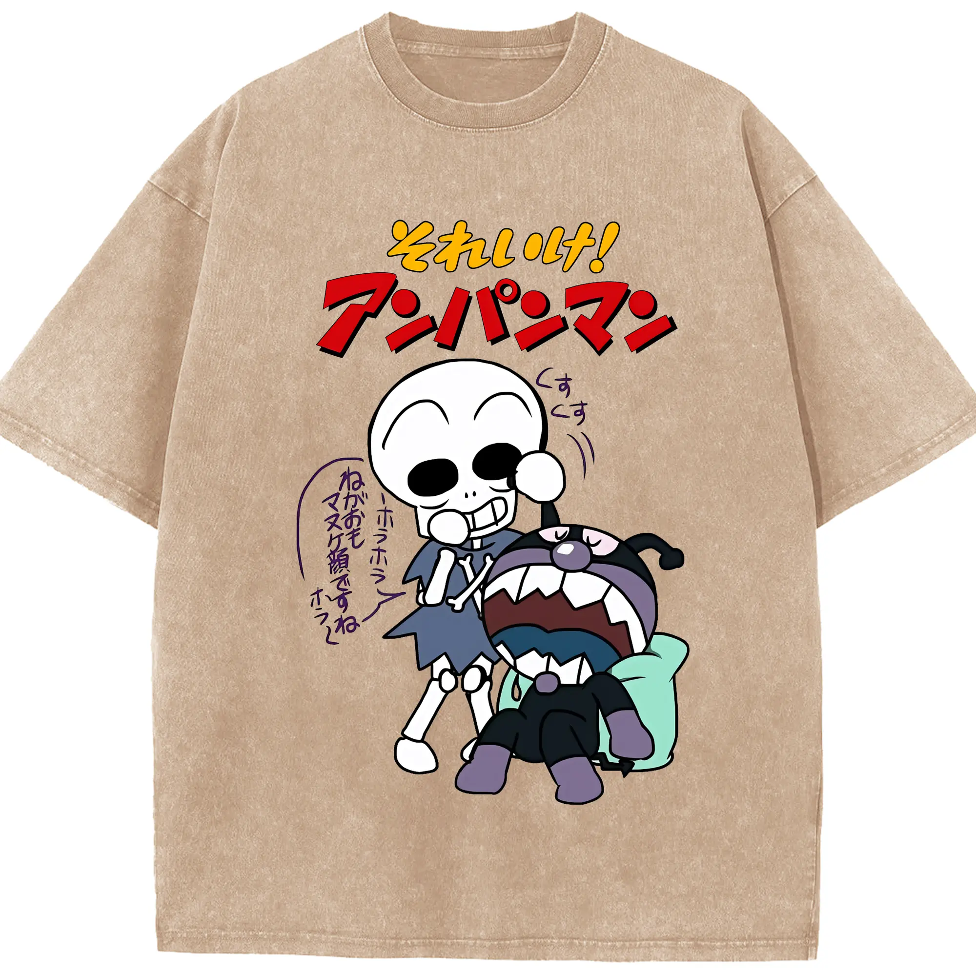 アンパンマン グッズ,ばいきんまん - 綿100% ヴィンテージ風 半袖Tシャツ ・ 背面プリント ・ 柔らか肌触り ・ 通気性 快適 ・ スポーツ カジュアル 外出用