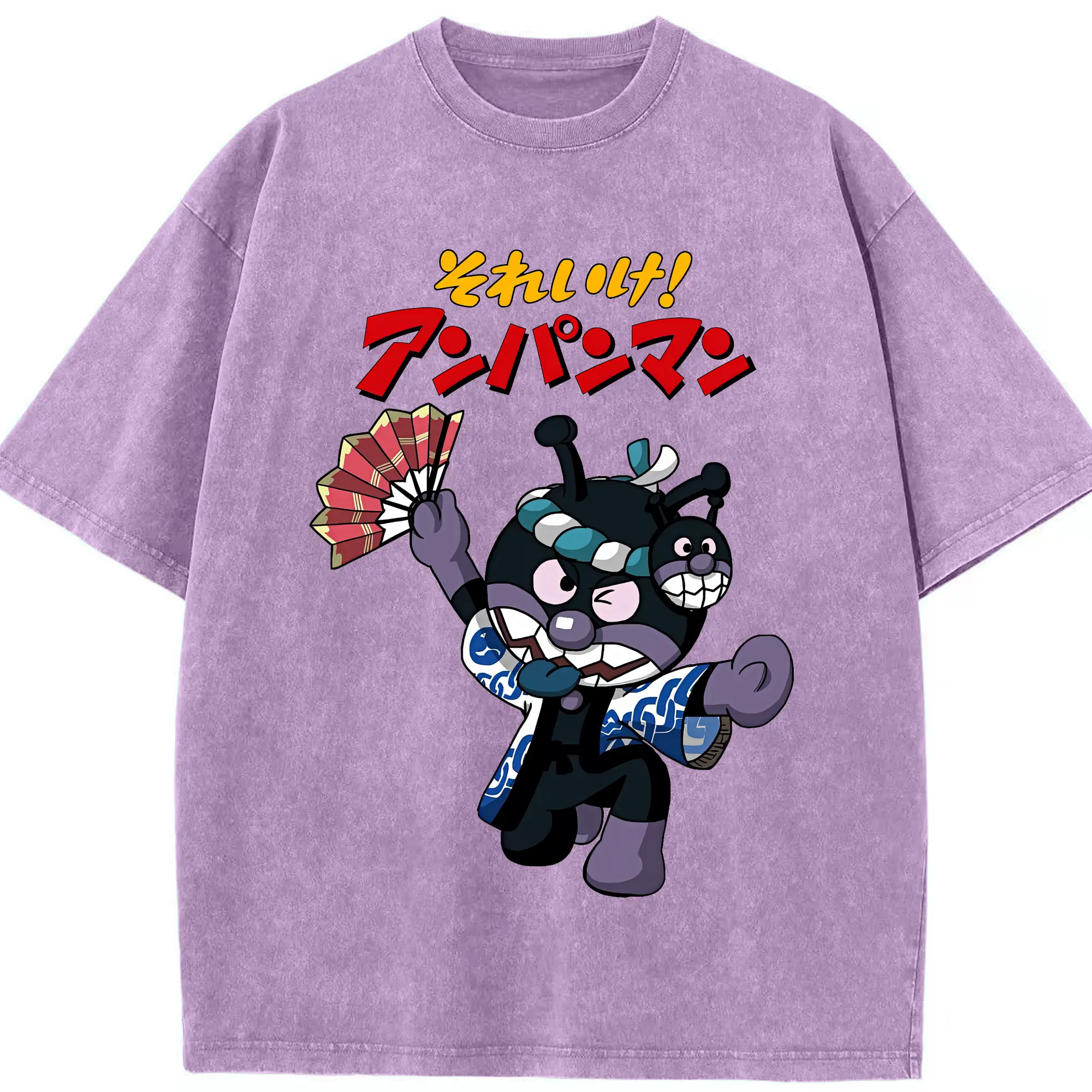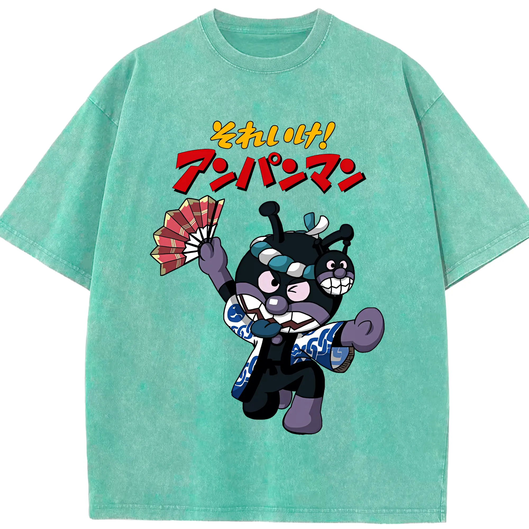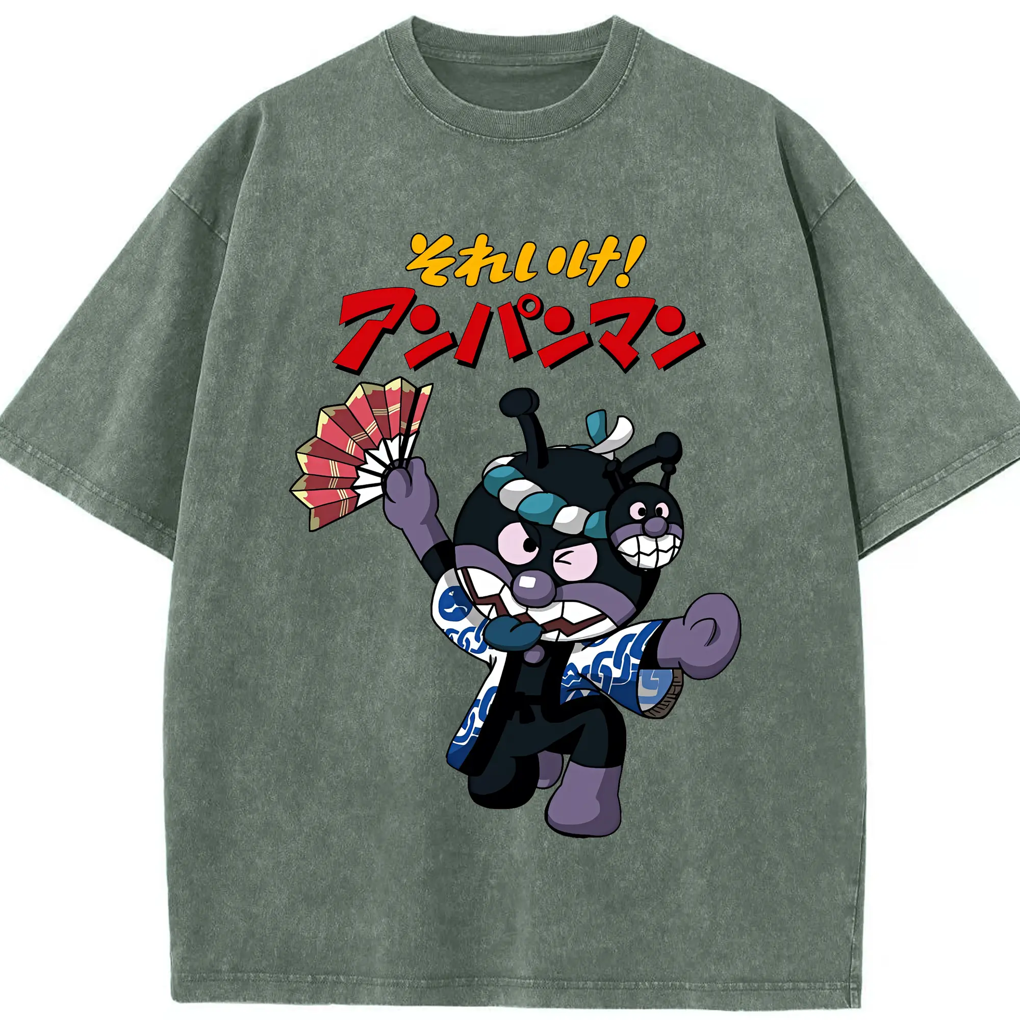 アンパンマン グッズ,ばいきんまん - 綿100% ヴィンテージ風 半袖Tシャツ ・ 背面プリント ・ 柔らか肌触り ・ 通気性 快適 ・ スポーツ カジュアル 外出用