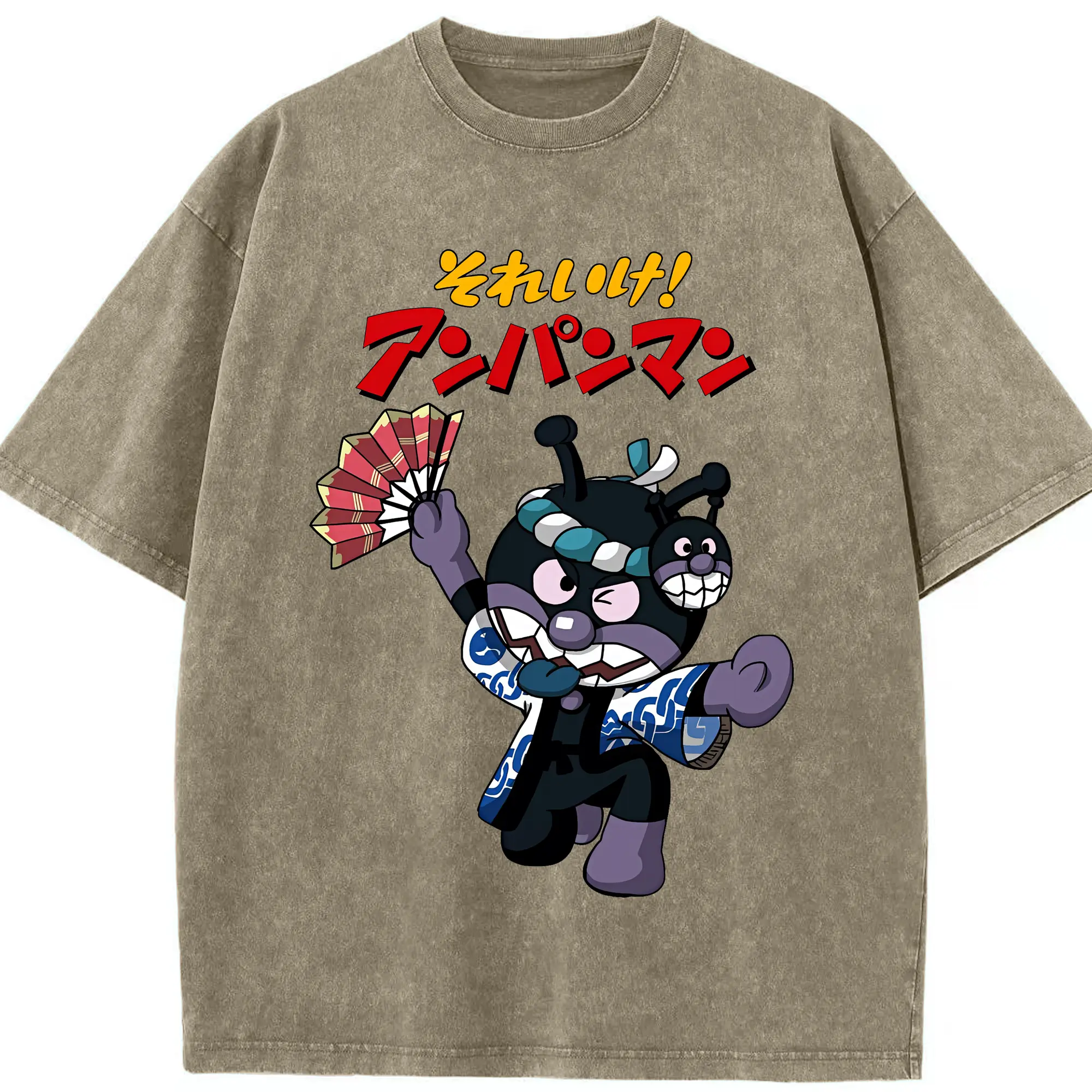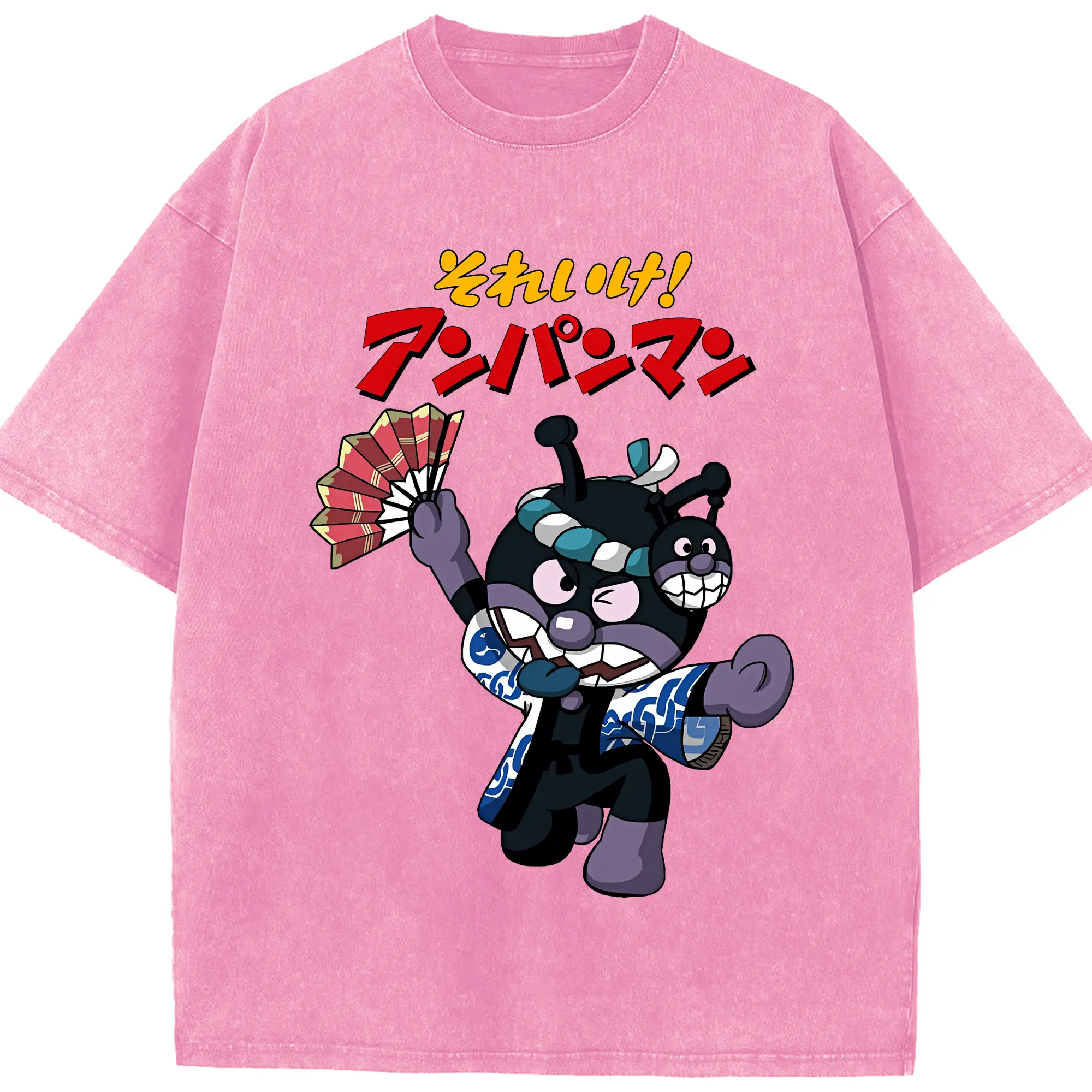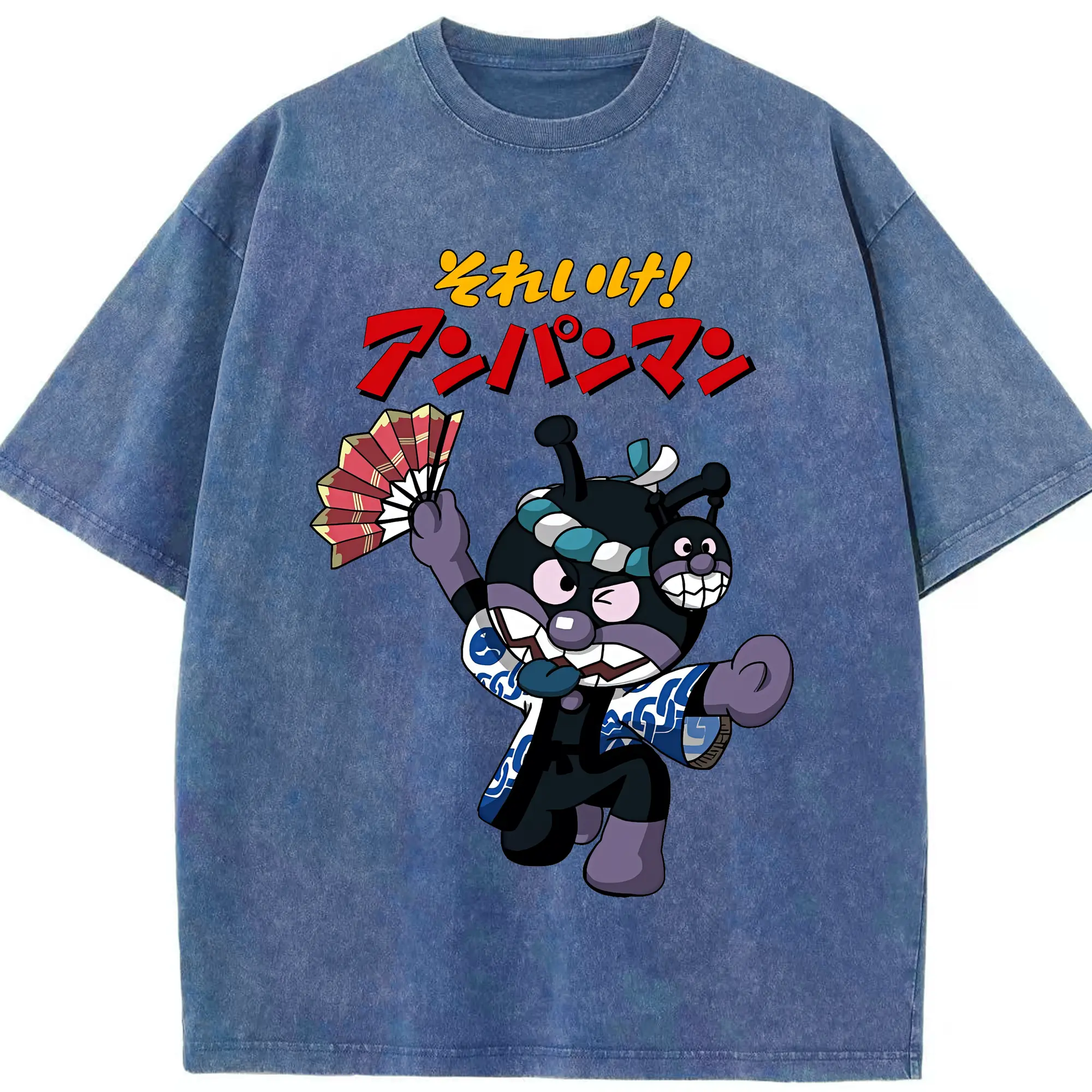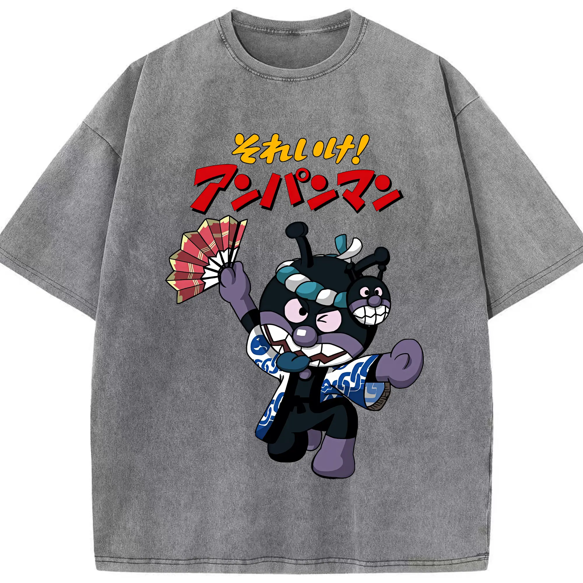 アンパンマン グッズ,ばいきんまん - 綿100% ヴィンテージ風 半袖Tシャツ ・ 背面プリント ・ 柔らか肌触り ・ 通気性 快適 ・ スポーツ カジュアル 外出用