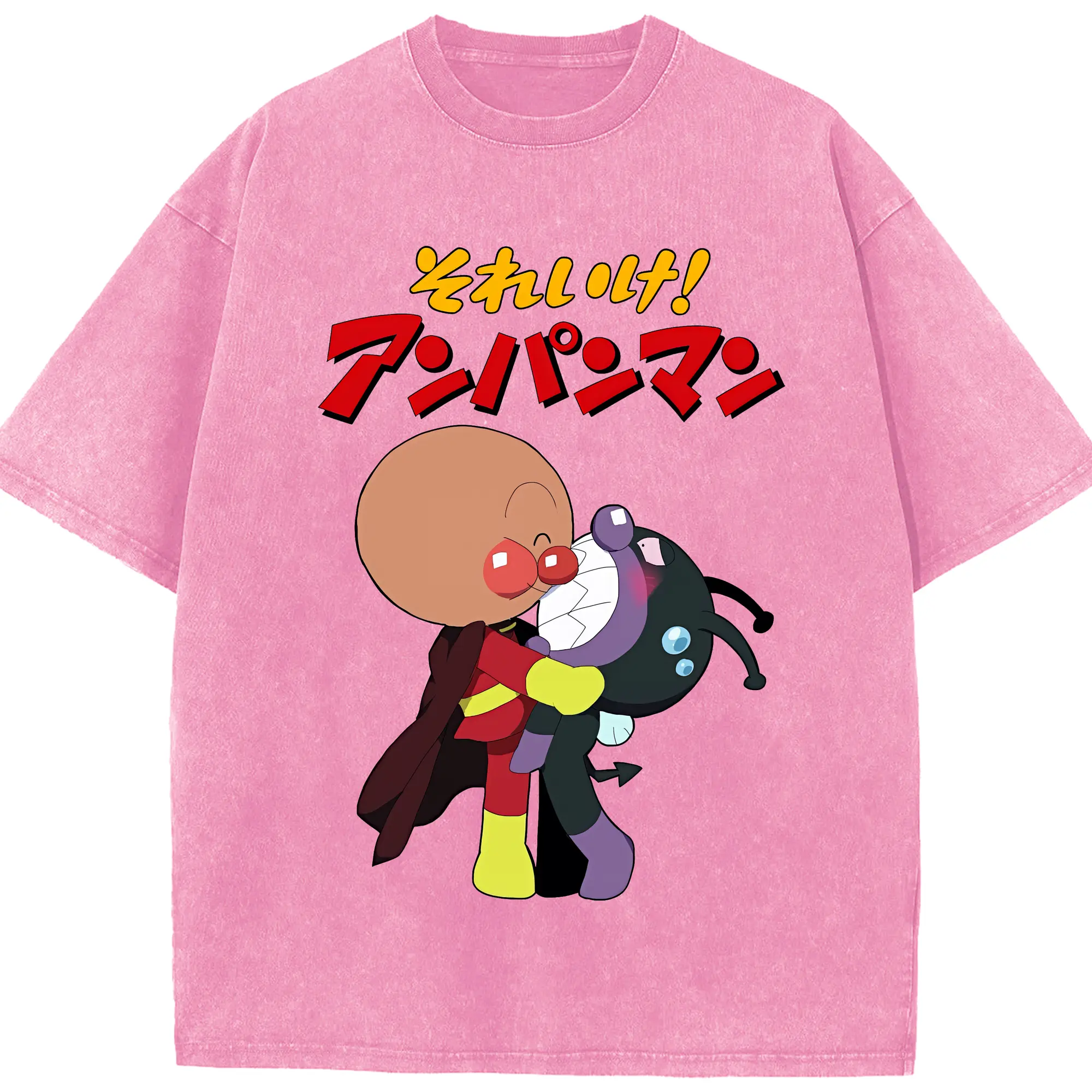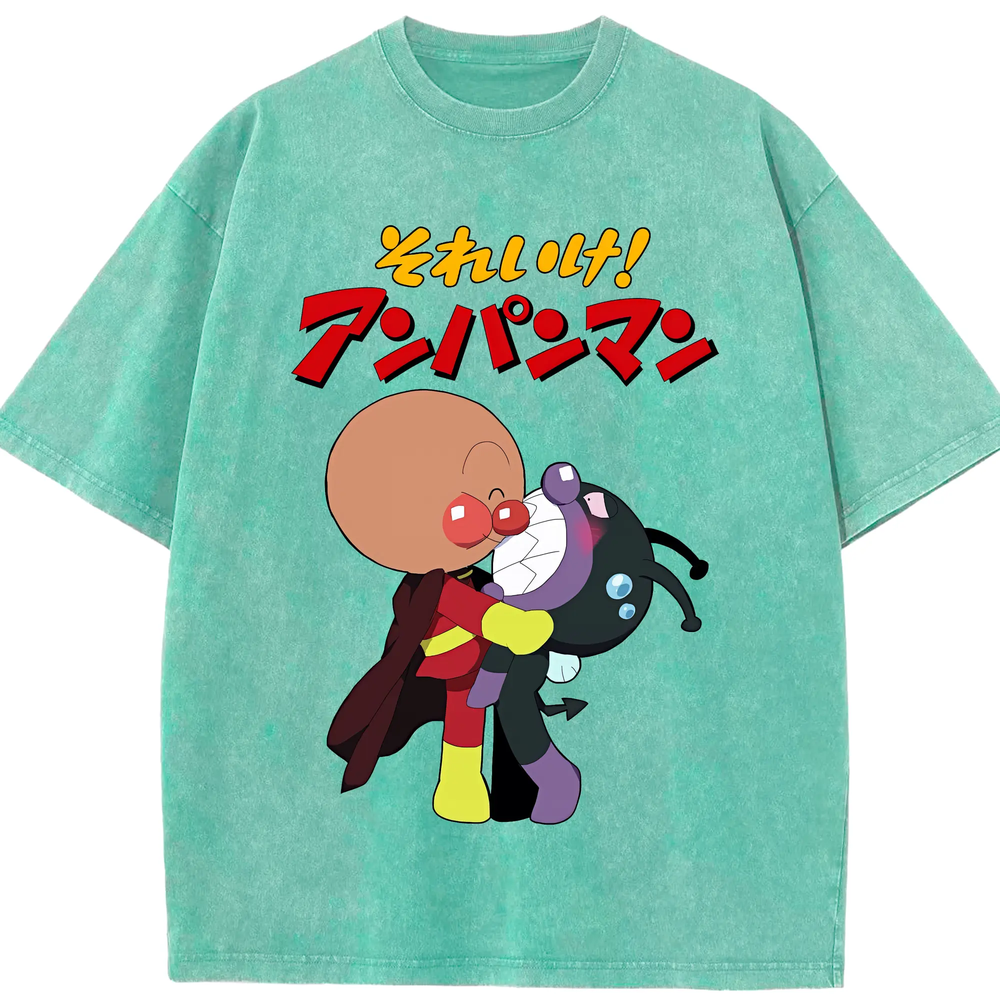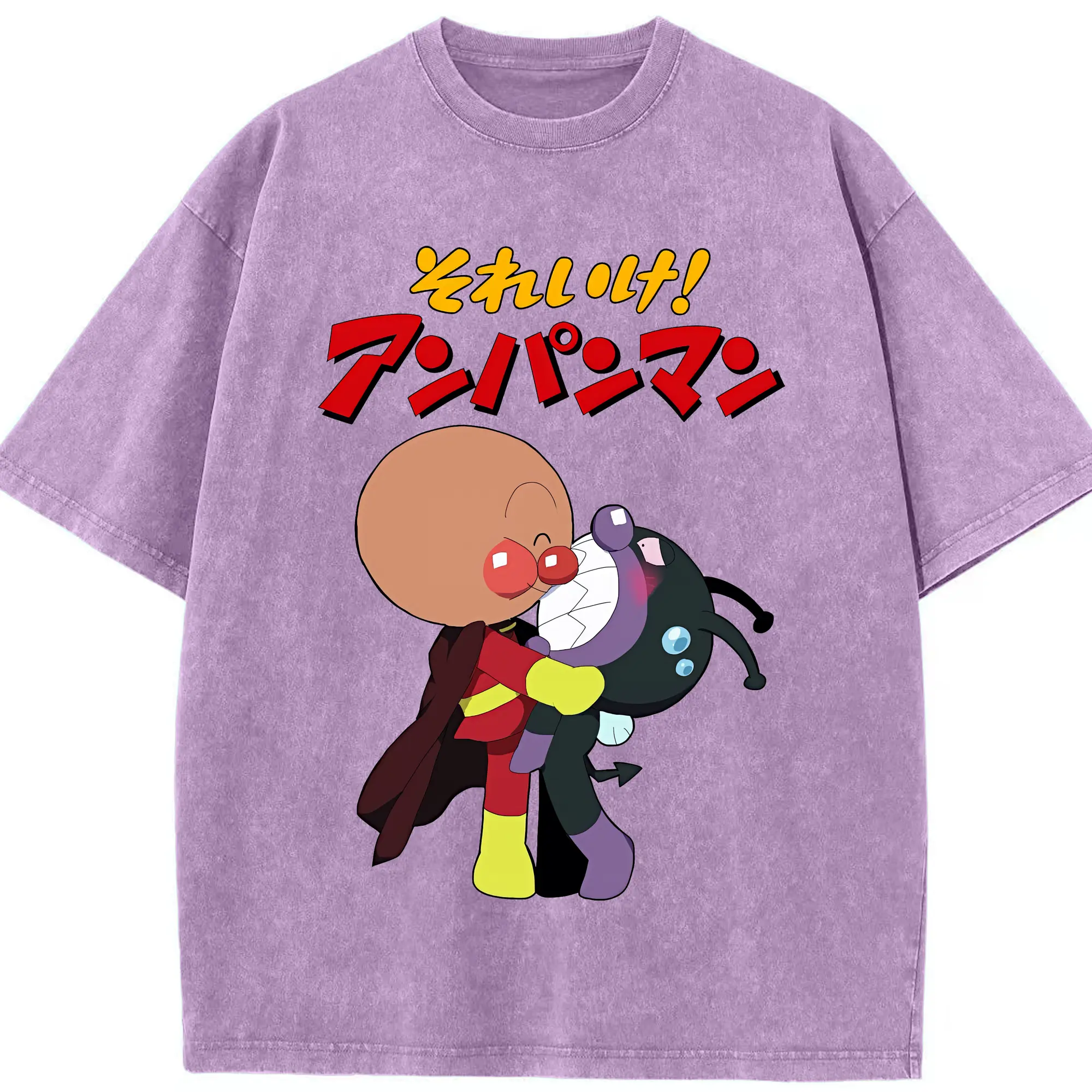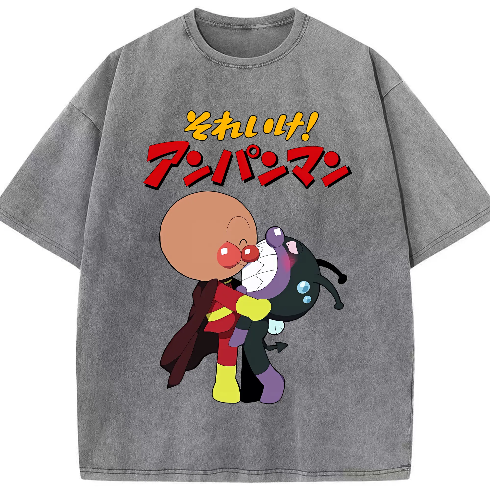 アンパンマン グッズ,ばいきんまん - 綿100% ヴィンテージ風 半袖Tシャツ ・ 背面プリント ・ 柔らか肌触り ・ 通気性 快適 ・ スポーツ カジュアル 外出用