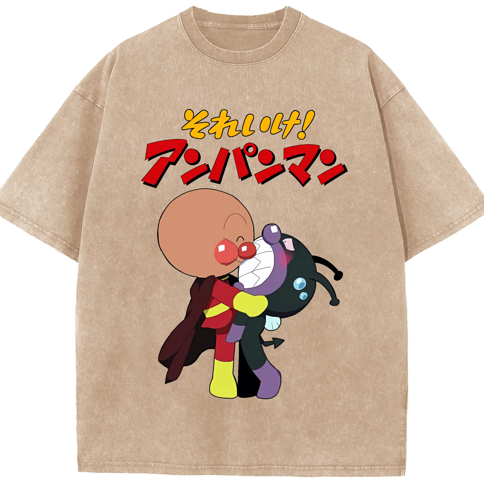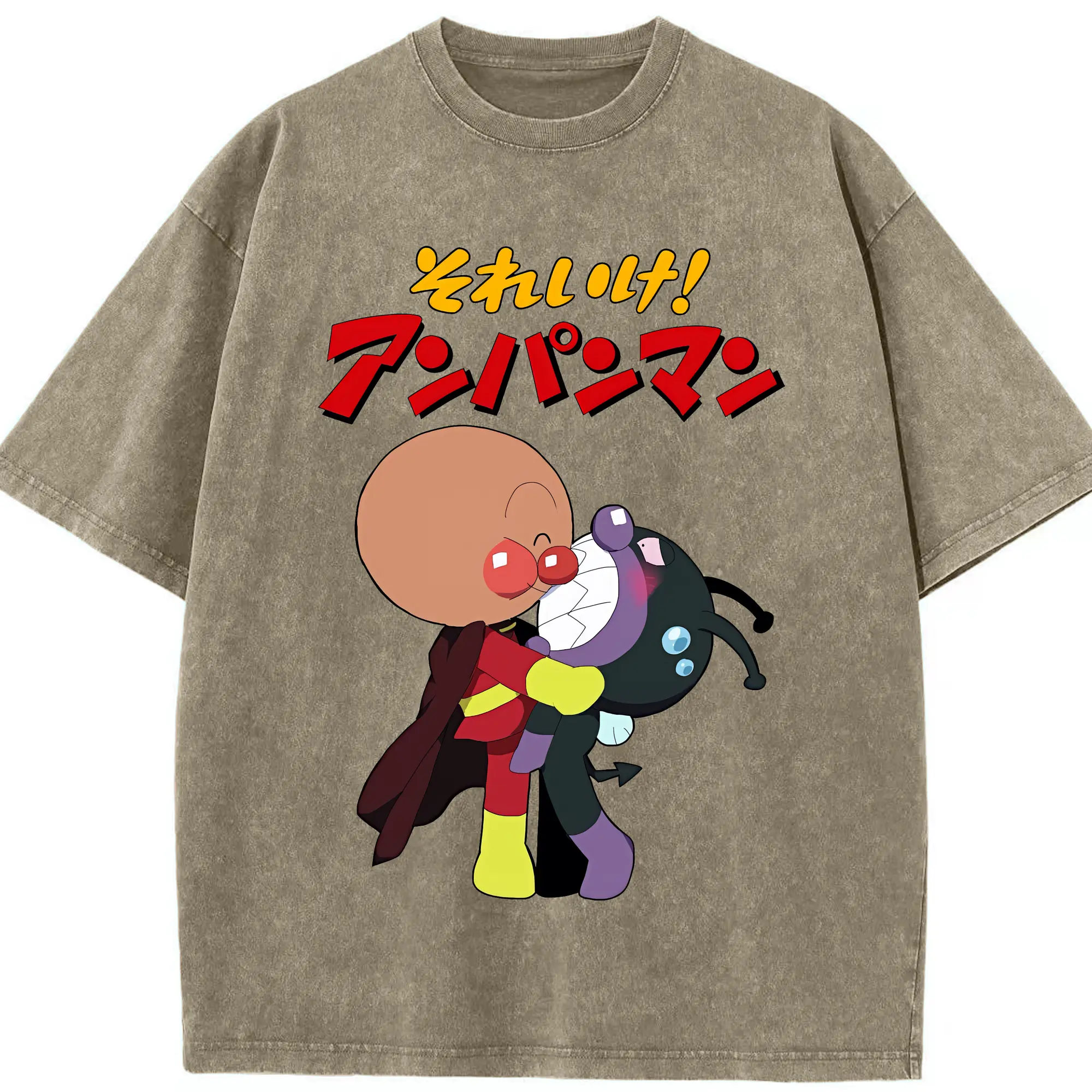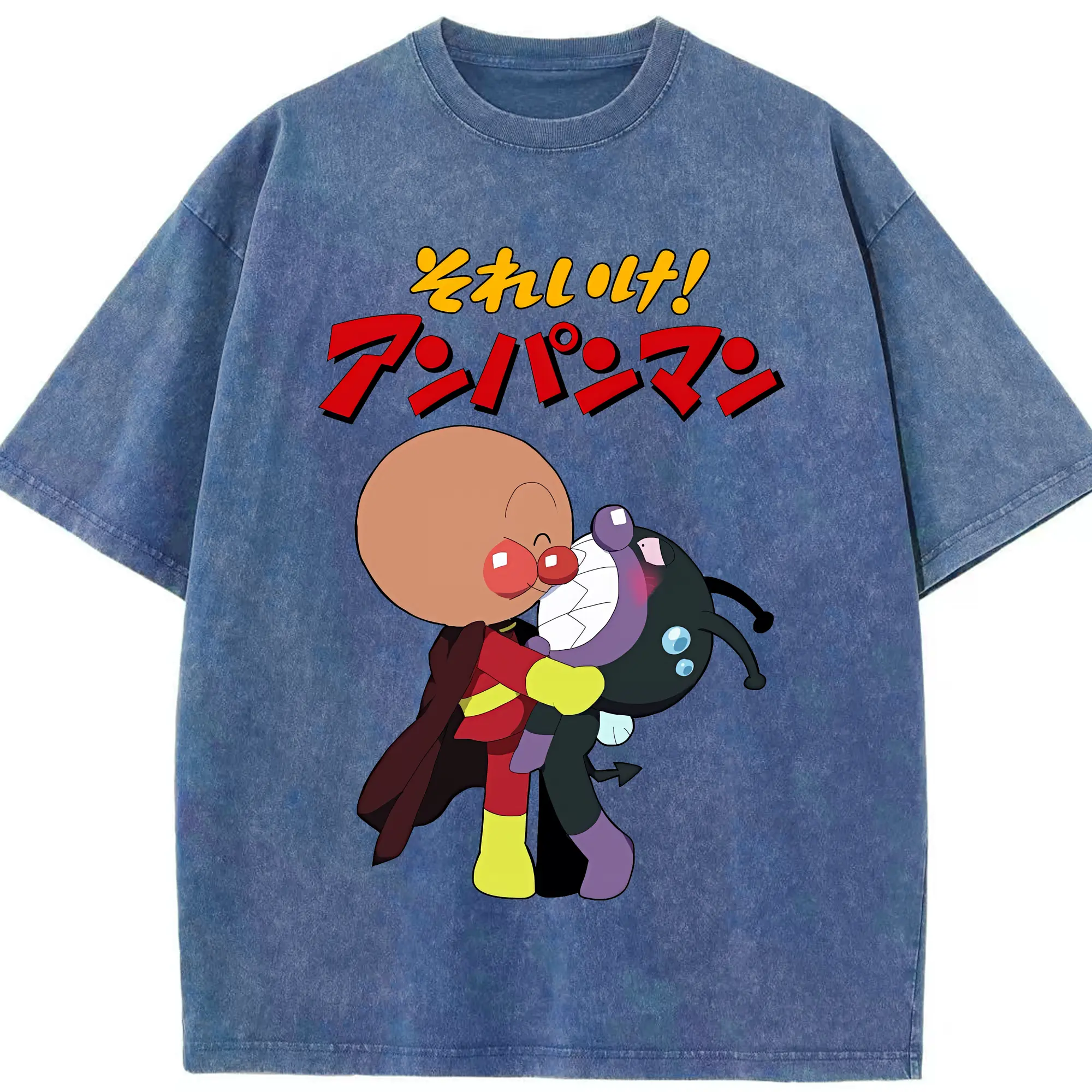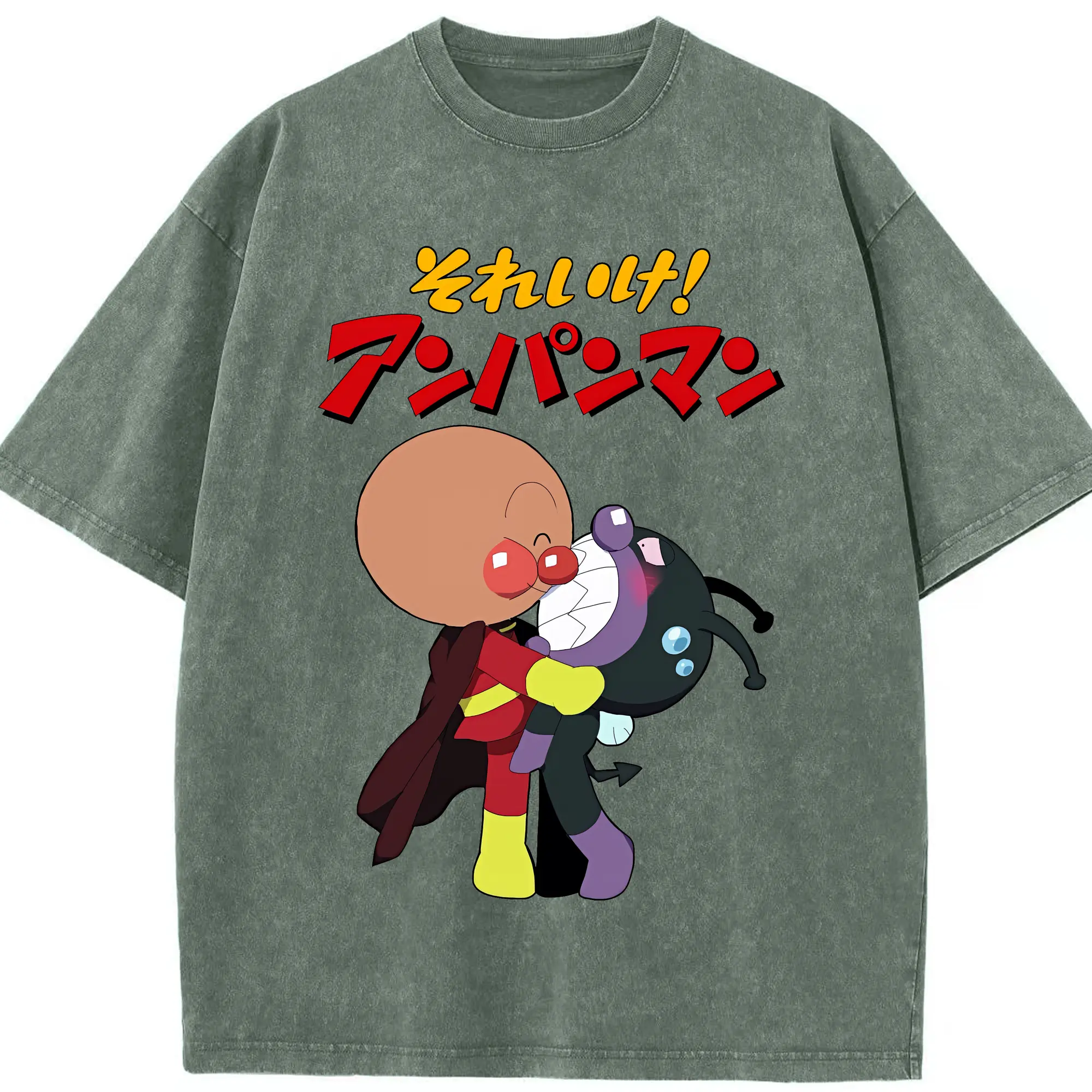 アンパンマン グッズ,ばいきんまん - 綿100% ヴィンテージ風 半袖Tシャツ ・ 背面プリント ・ 柔らか肌触り ・ 通気性 快適 ・ スポーツ カジュアル 外出用