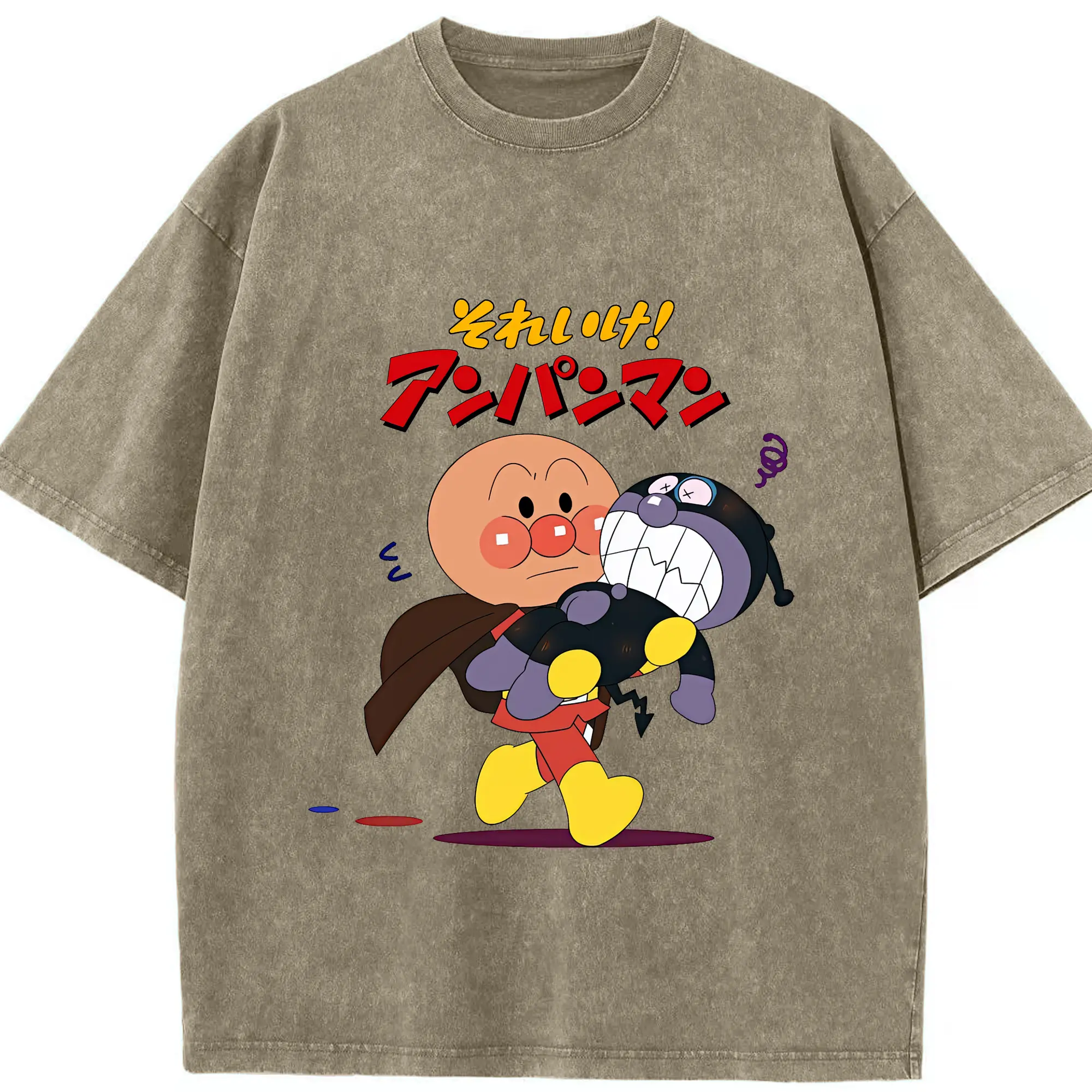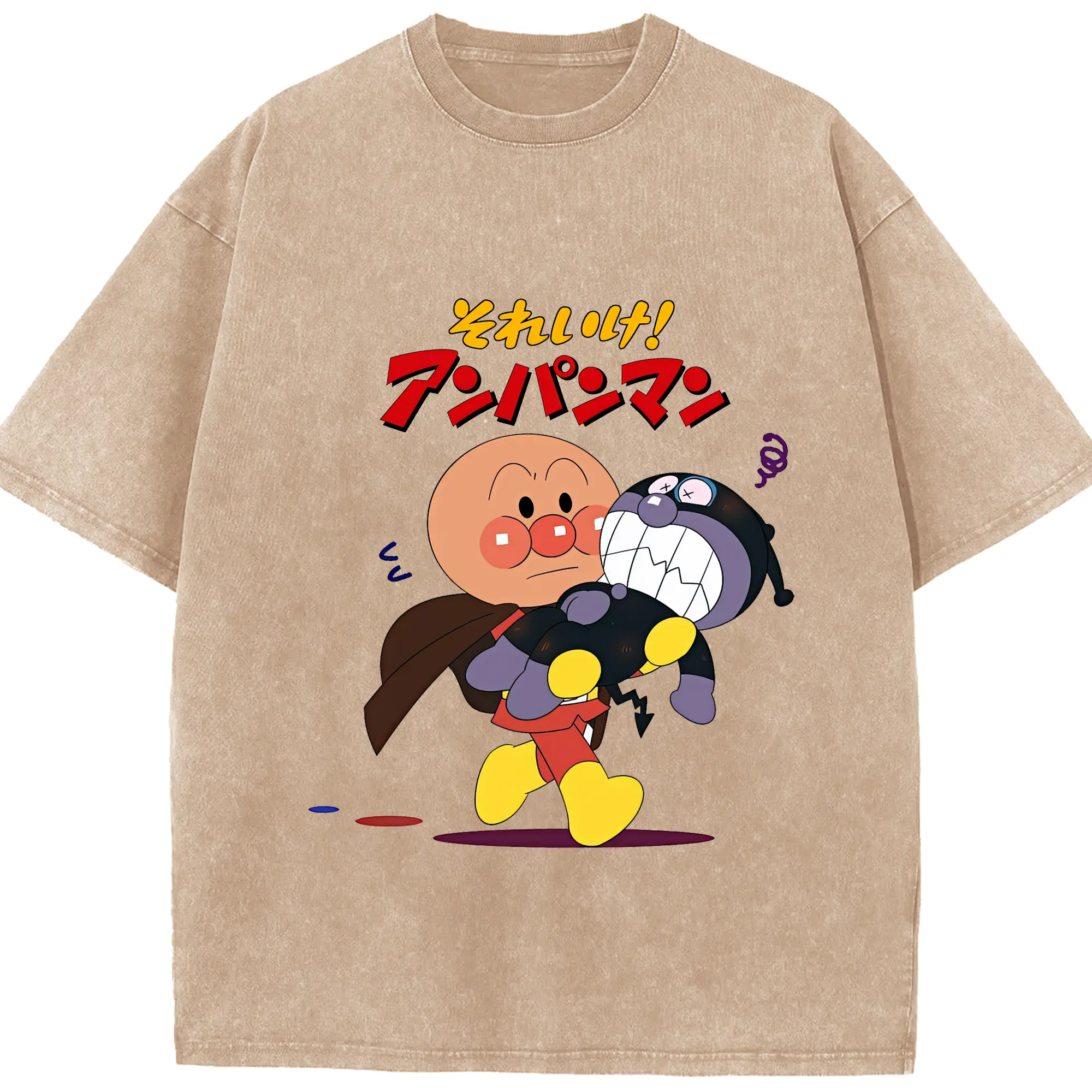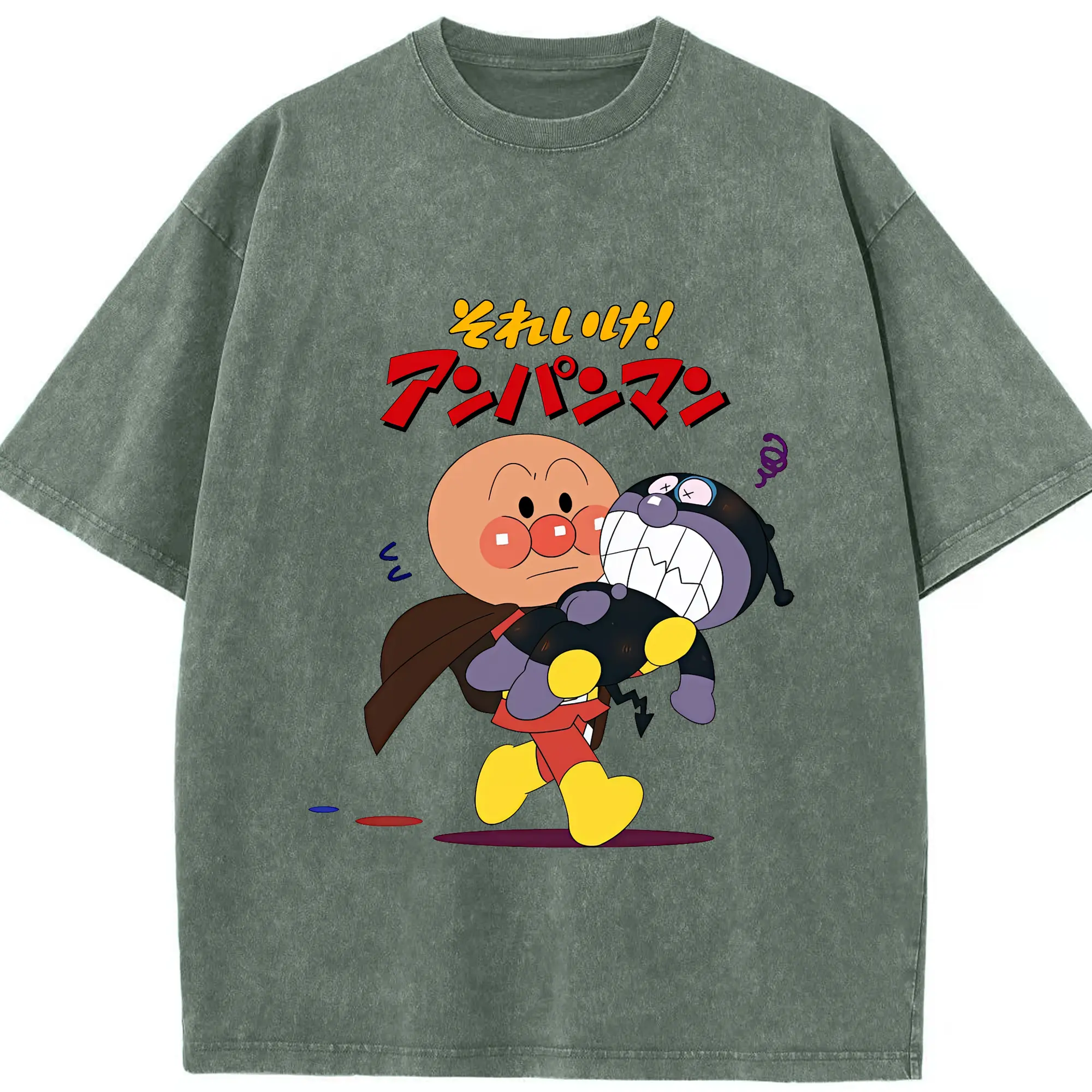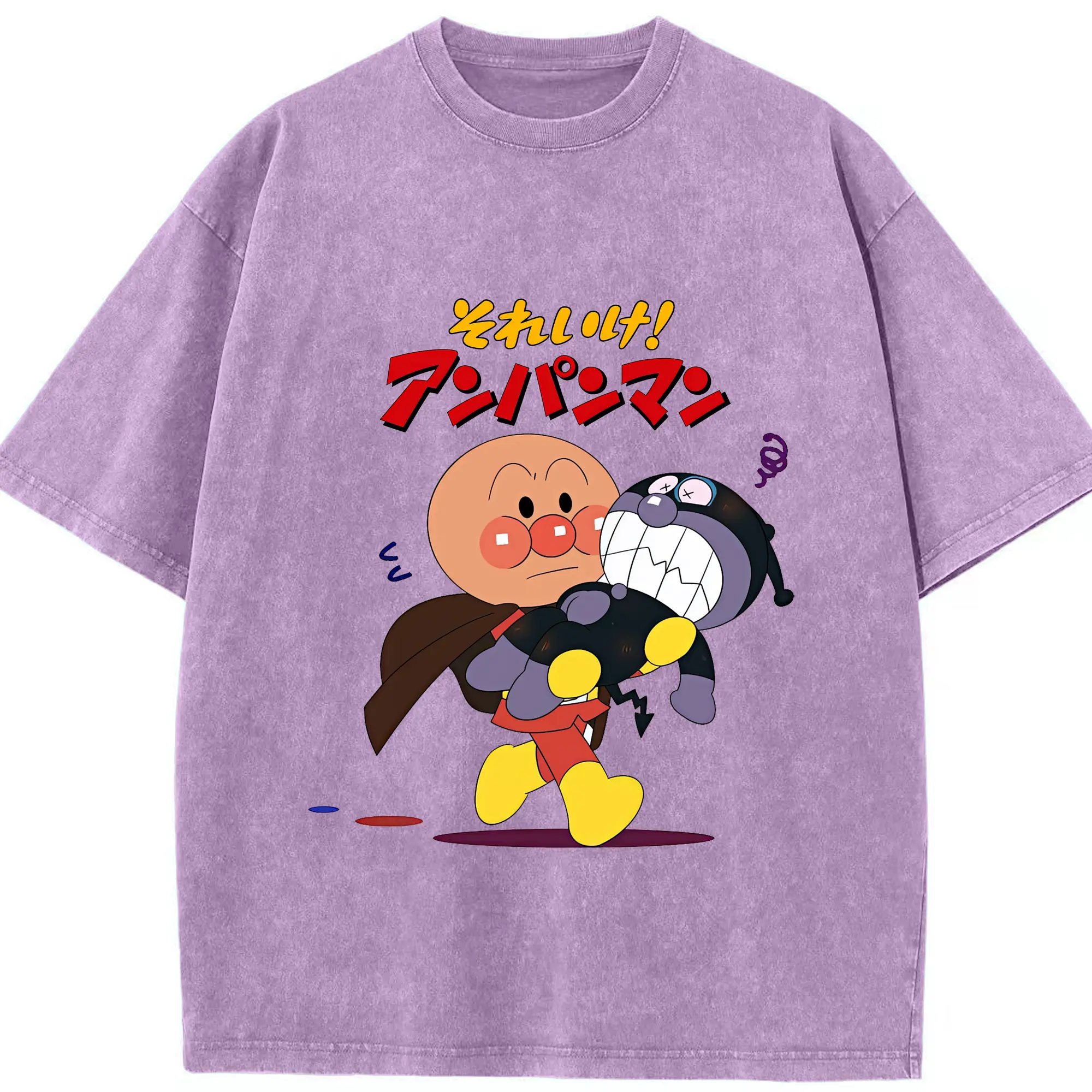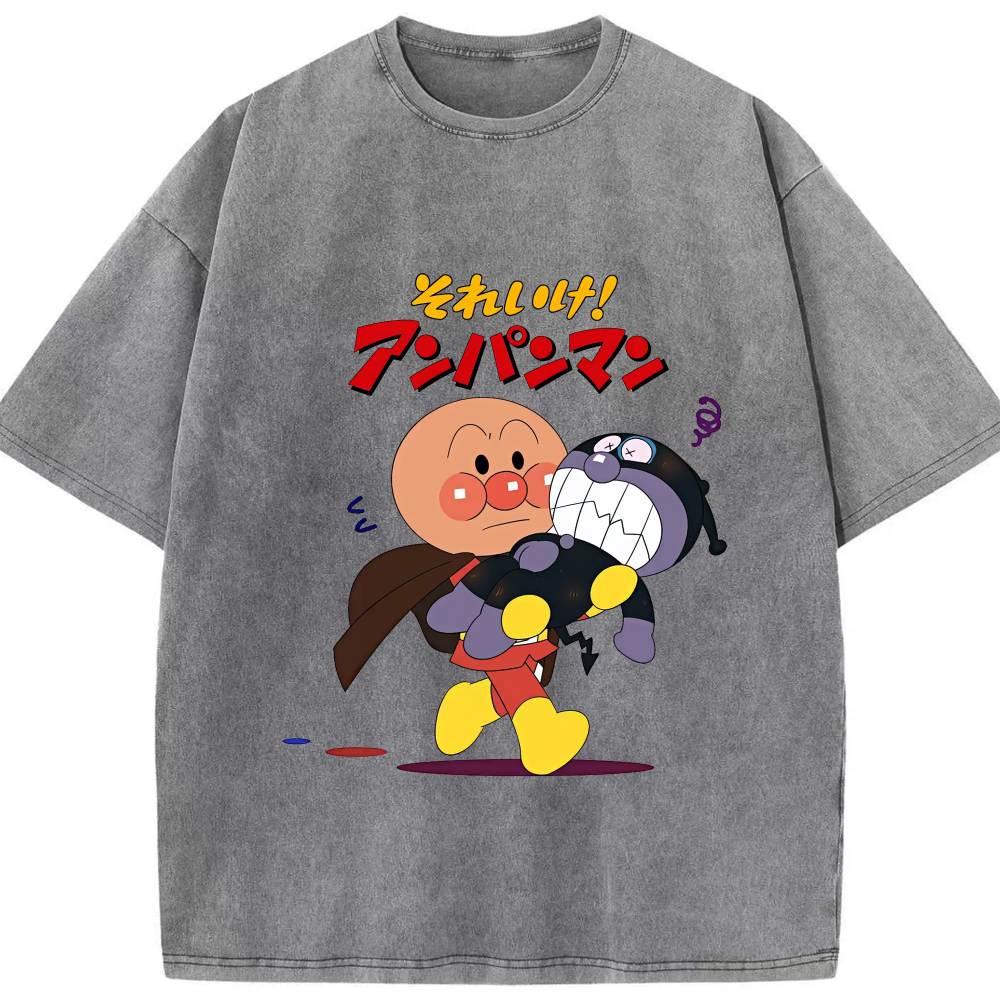 アンパンマン グッズ,ばいきんまん - 綿100% ヴィンテージ風 半袖Tシャツ ・ 背面プリント ・ 柔らか肌触り ・ 通気性 快適 ・ スポーツ カジュアル 外出用
