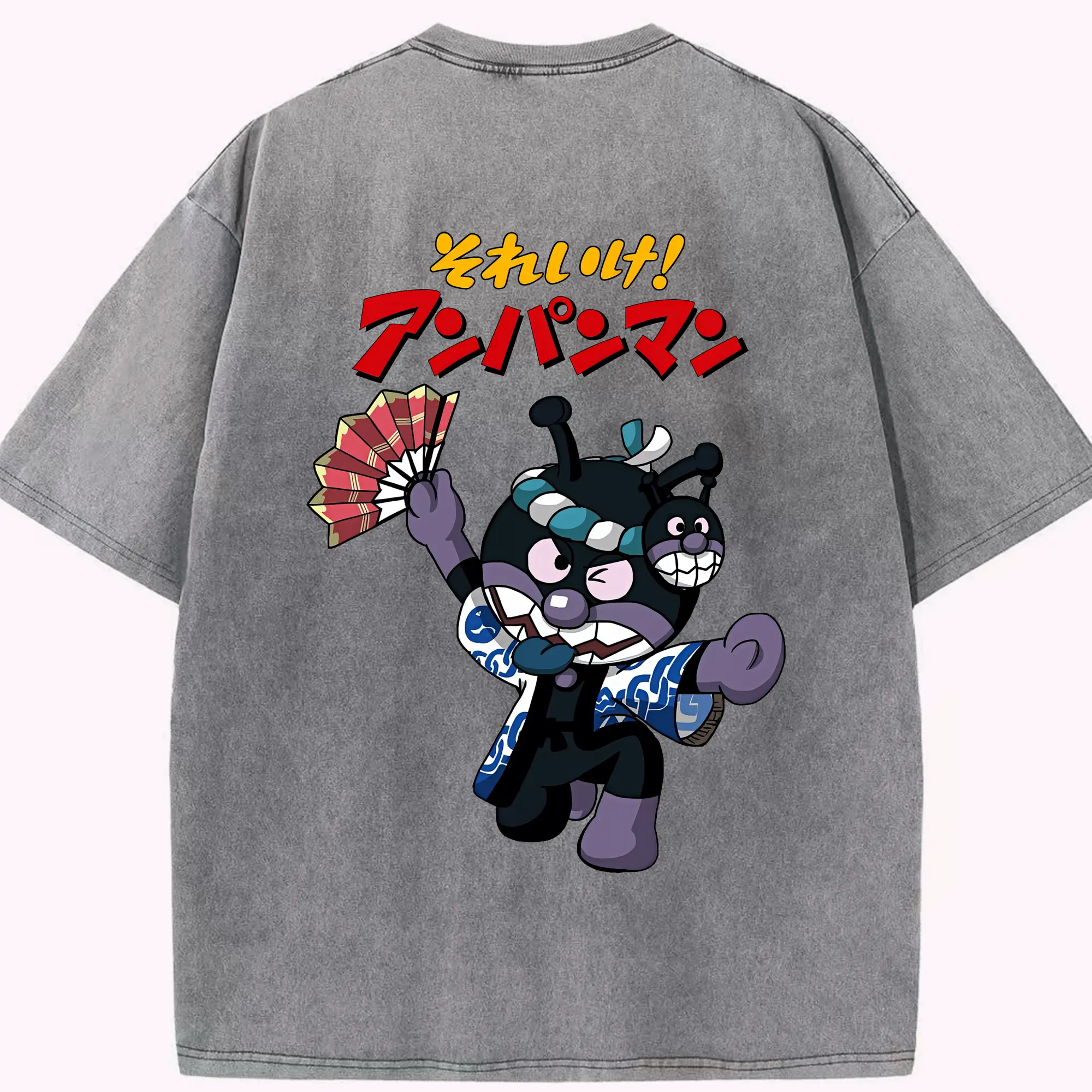 アンパンマン グッズ,ばいきんまん - 綿100% ヴィンテージ風 半袖Tシャツ ・ フロントプリント ・ 柔らか肌触り ・ 通気性 快適 ・ スポーツ カジュアル 外出用