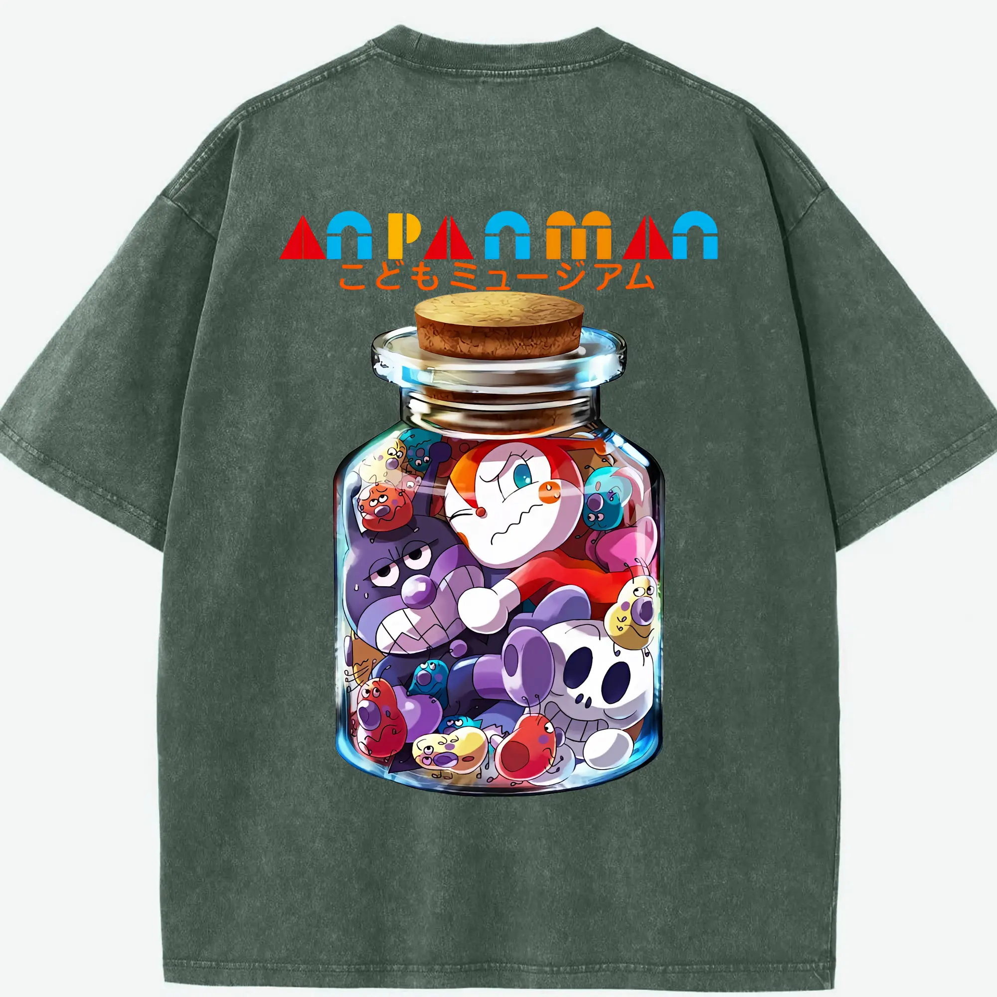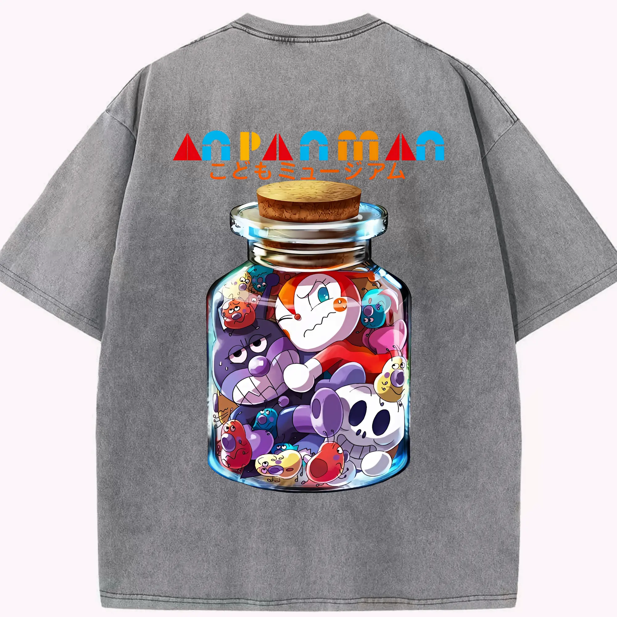 アンパンマン グッズ,ばいきんまん - 綿100% ヴィンテージ風 半袖Tシャツ ・ フロントプリント ・ 柔らか肌触り ・ 通気性 快適 ・ スポーツ カジュアル 外出用