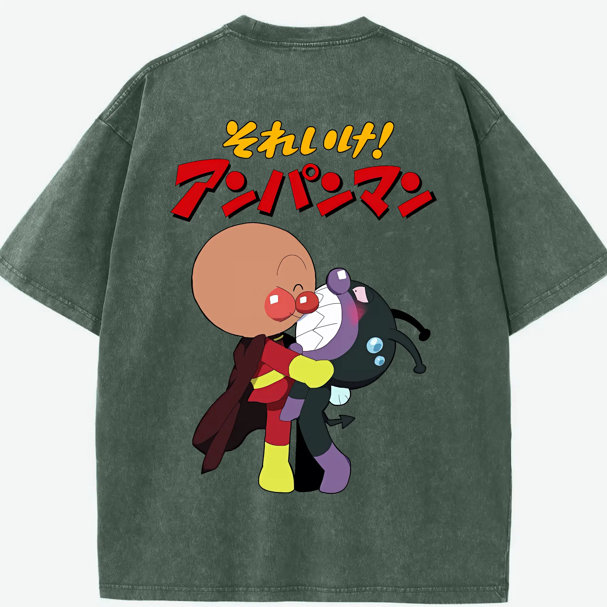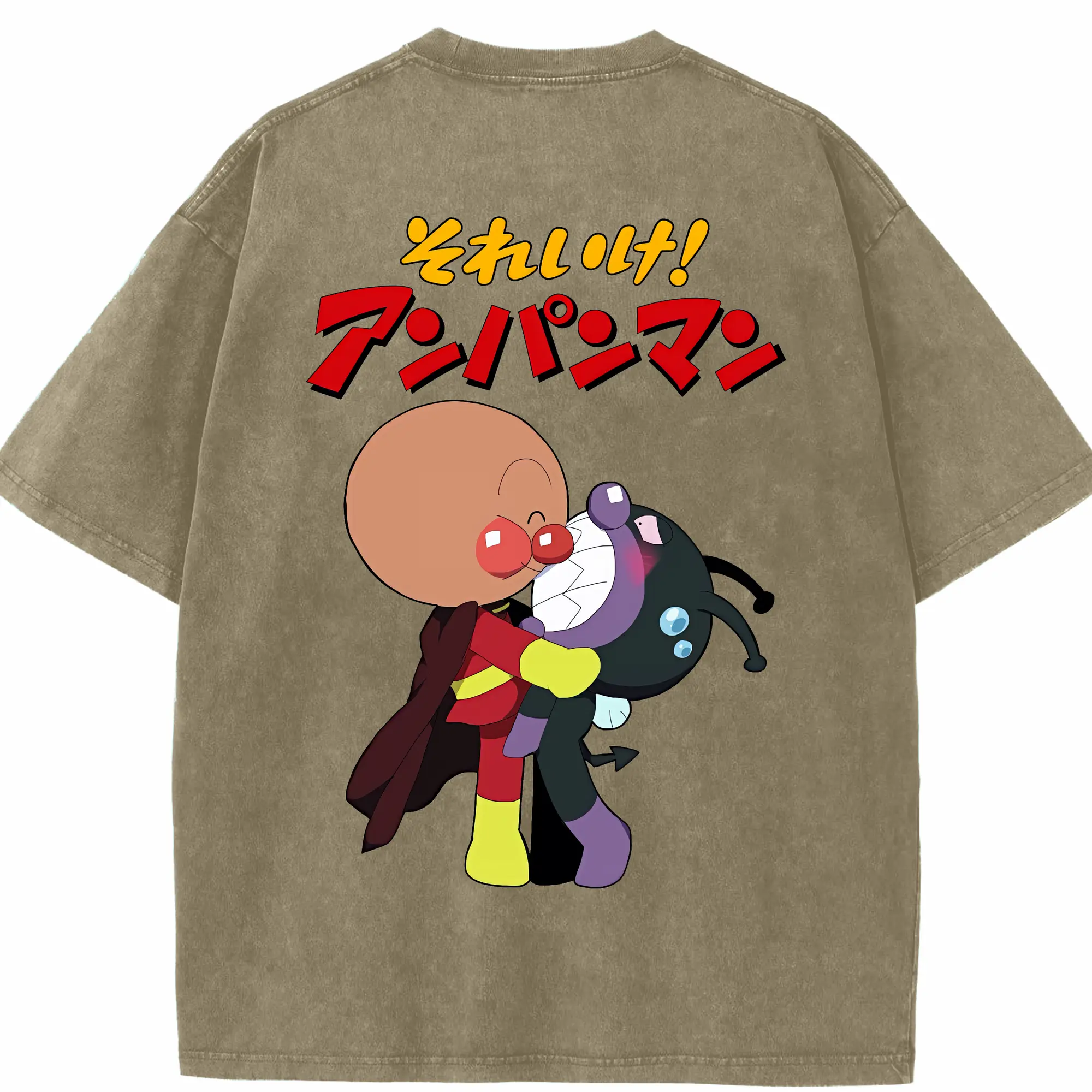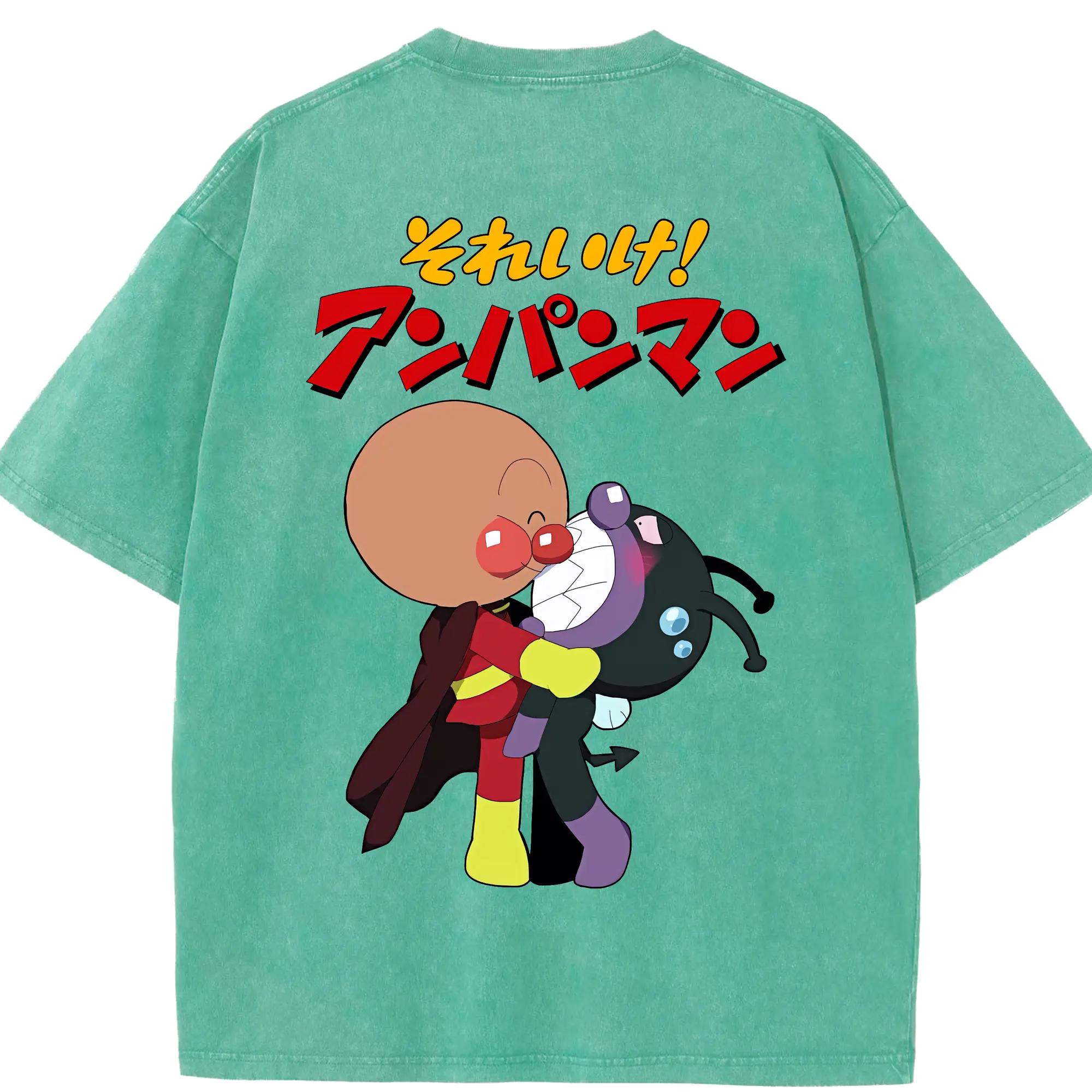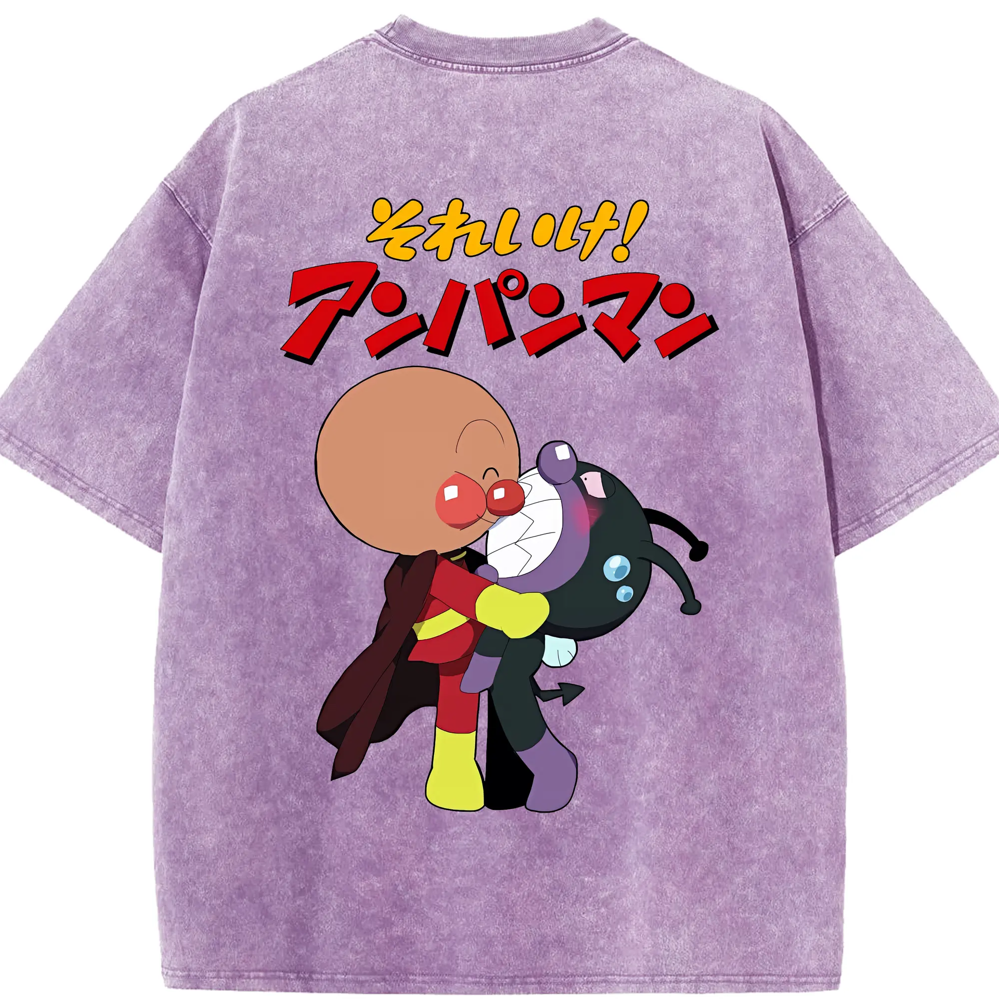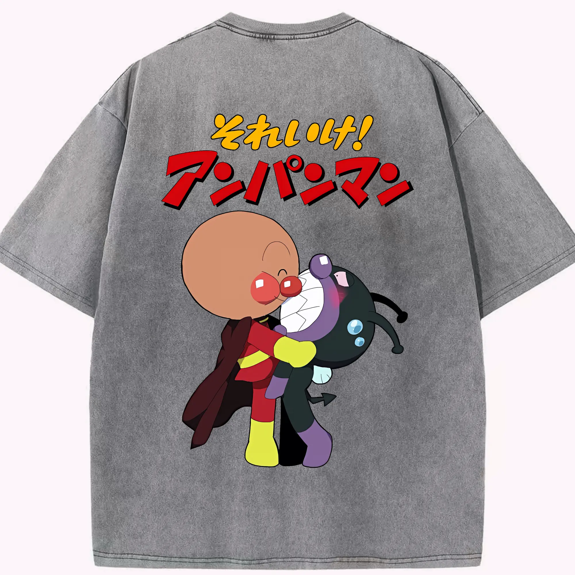 アンパンマン グッズ,ばいきんまん - 綿100% ヴィンテージ風 半袖Tシャツ ・ フロントプリント ・ 柔らか肌触り ・ 通気性 快適 ・ スポーツ カジュアル 外出用