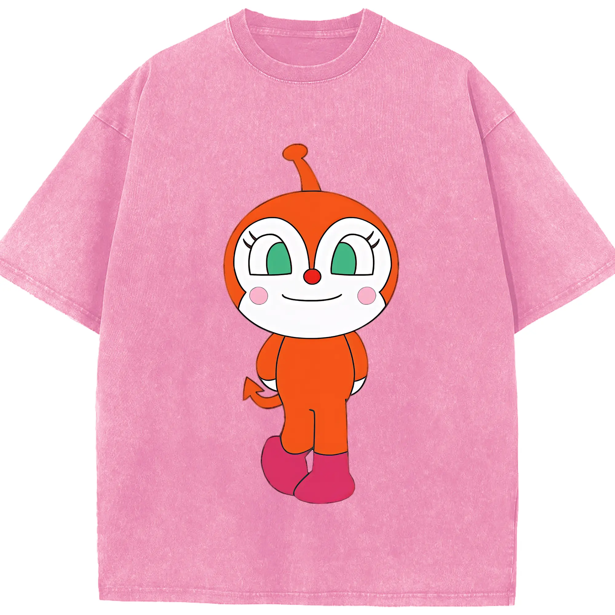 アンパンマン グッズ,ドキンちゃん - 綿100% ヴィンテージ風 半袖Tシャツ ・ 背面プリント ・ 柔らか肌触り ・ 通気性 快適 ・ スポーツ カジュアル 外出用