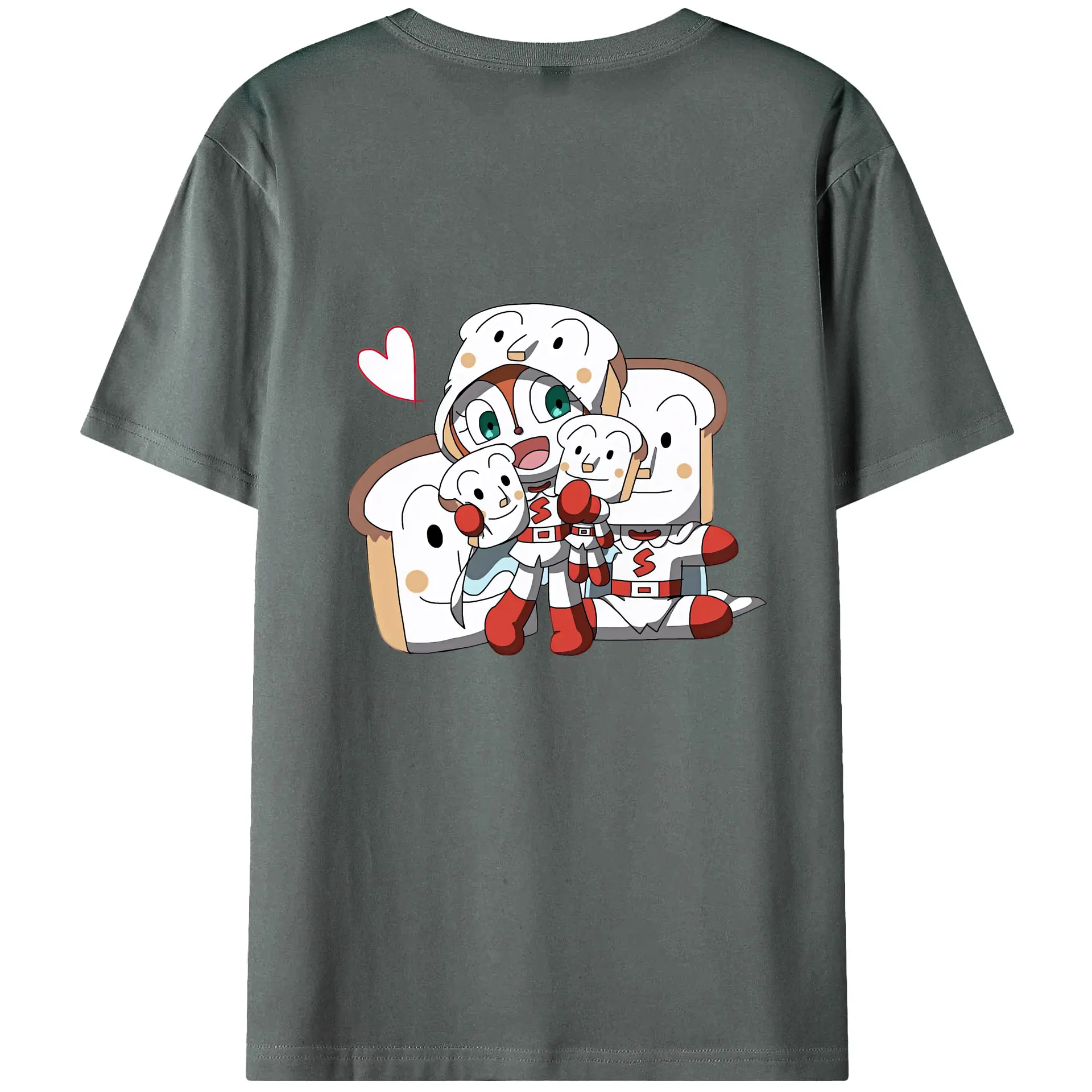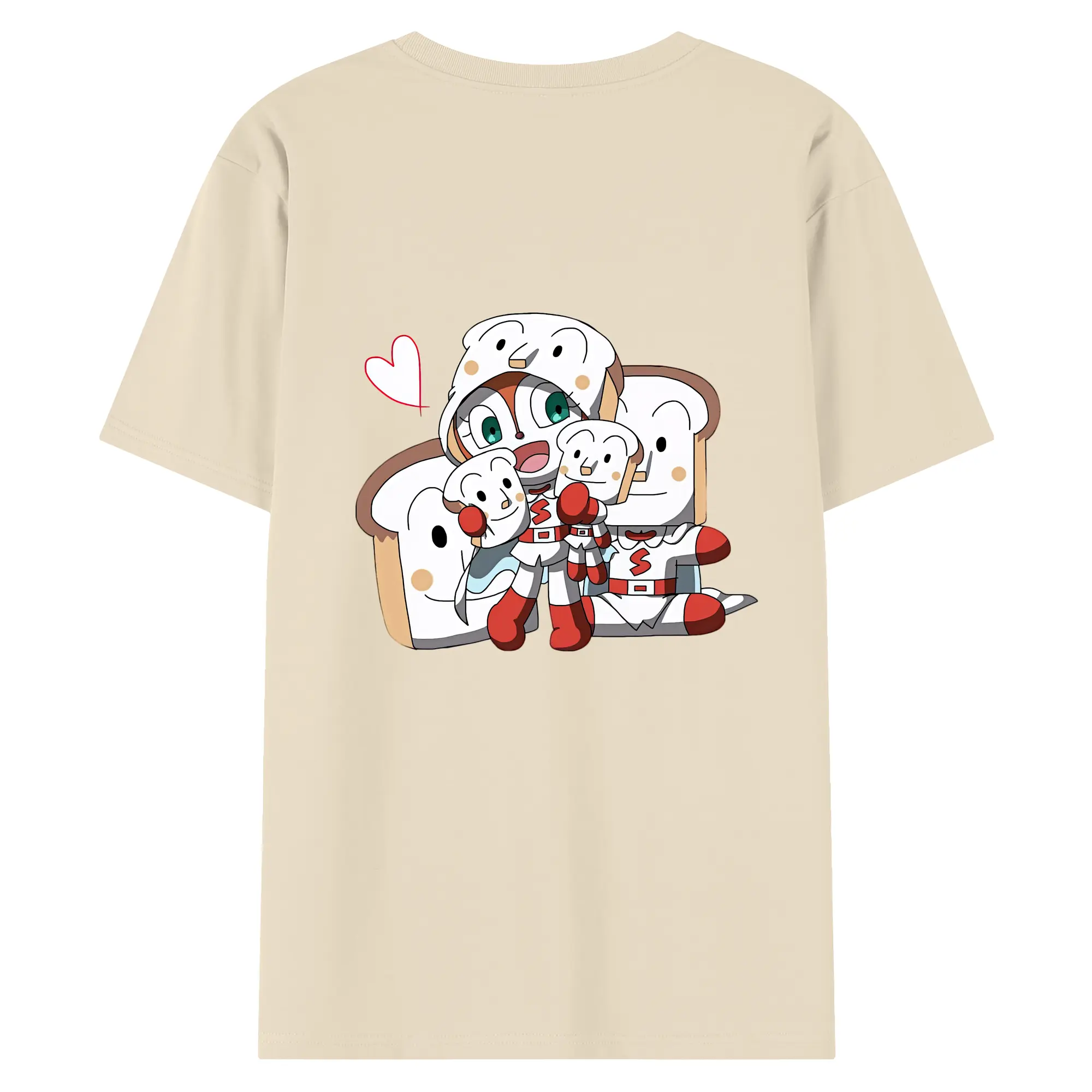 アンパンマン グッズ,しょくぱんまん - 綿100% ヴィンテージ風 半袖Tシャツ ・ 背面プリント ・ 柔らか肌触り ・ 通気性 快適 ・ スポーツ カジュアル 外出用
