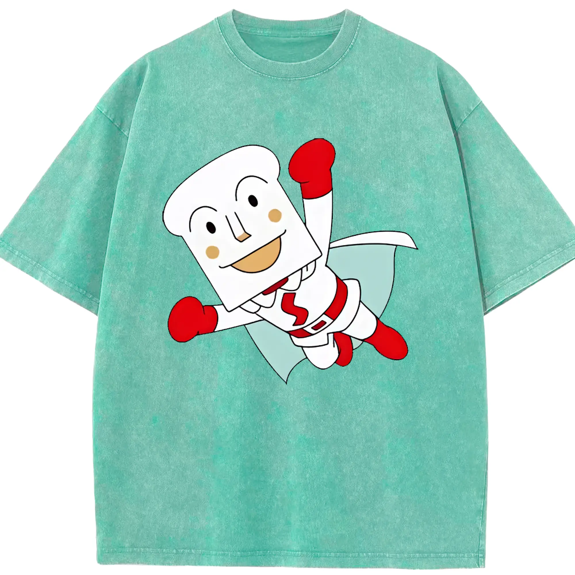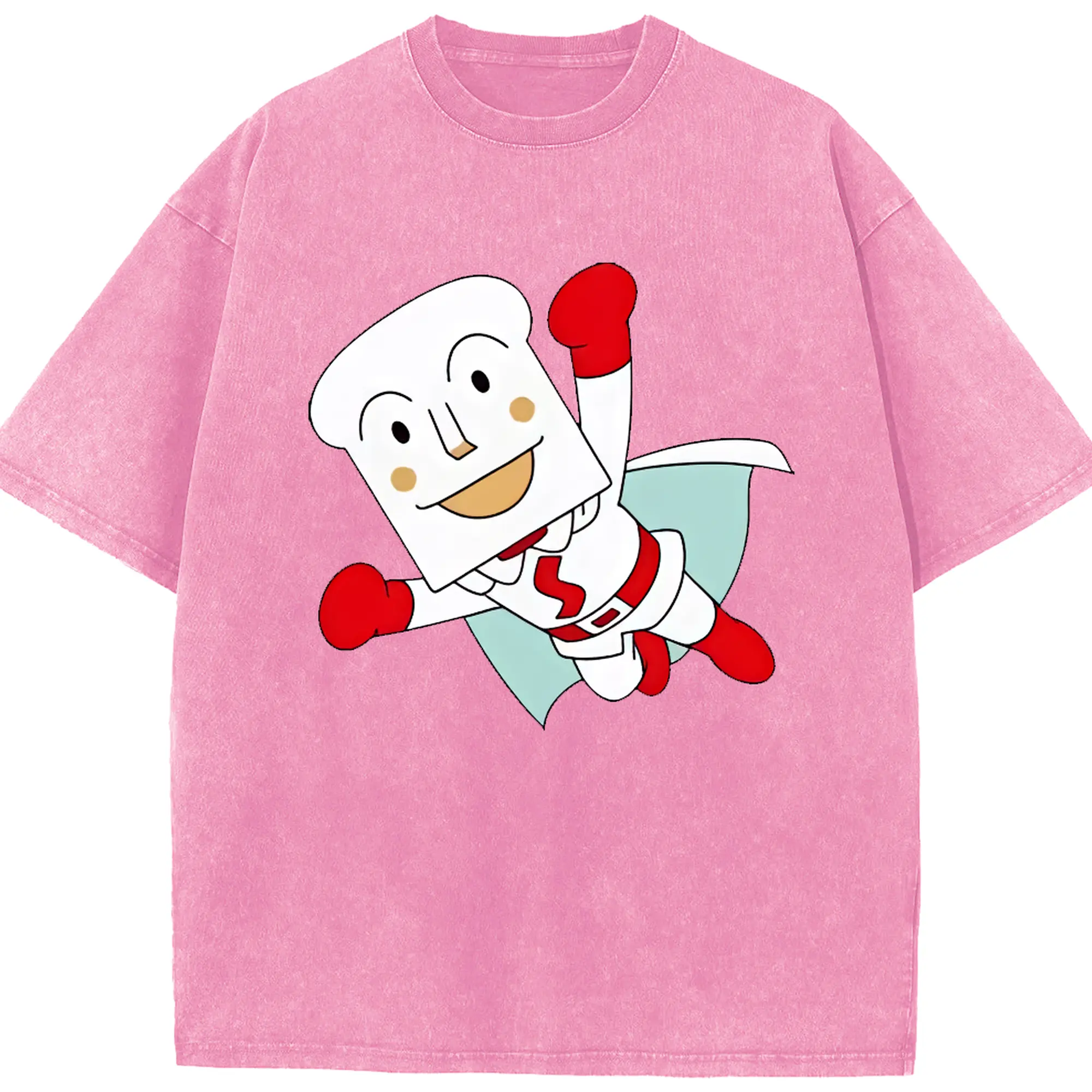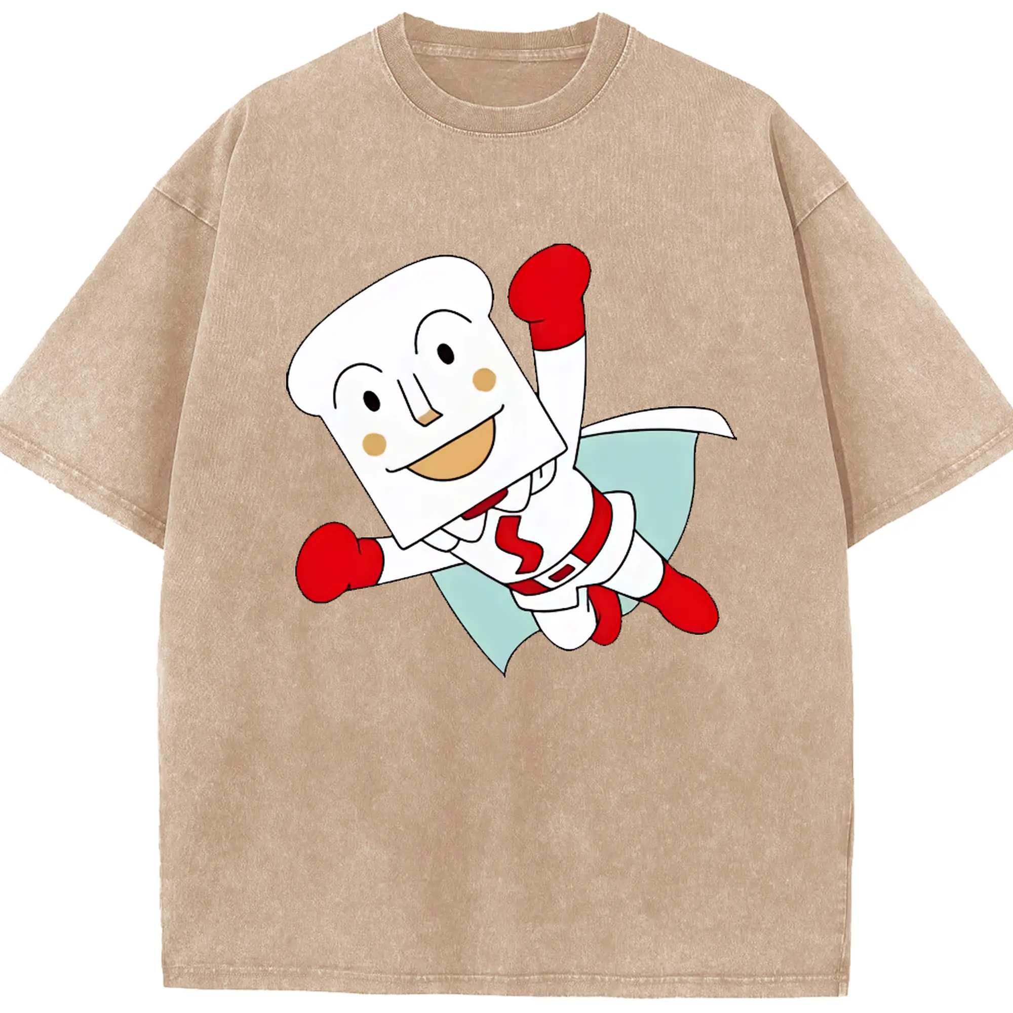 アンパンマン グッズ,しょくぱんまん - 綿100% ヴィンテージ風 半袖Tシャツ ・ 背面プリント ・ 柔らか肌触り ・ 通気性 快適 ・ スポーツ カジュアル 外出用