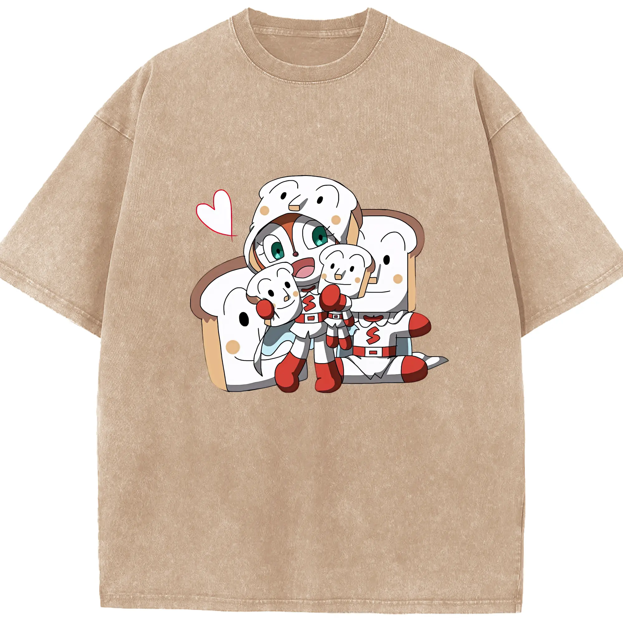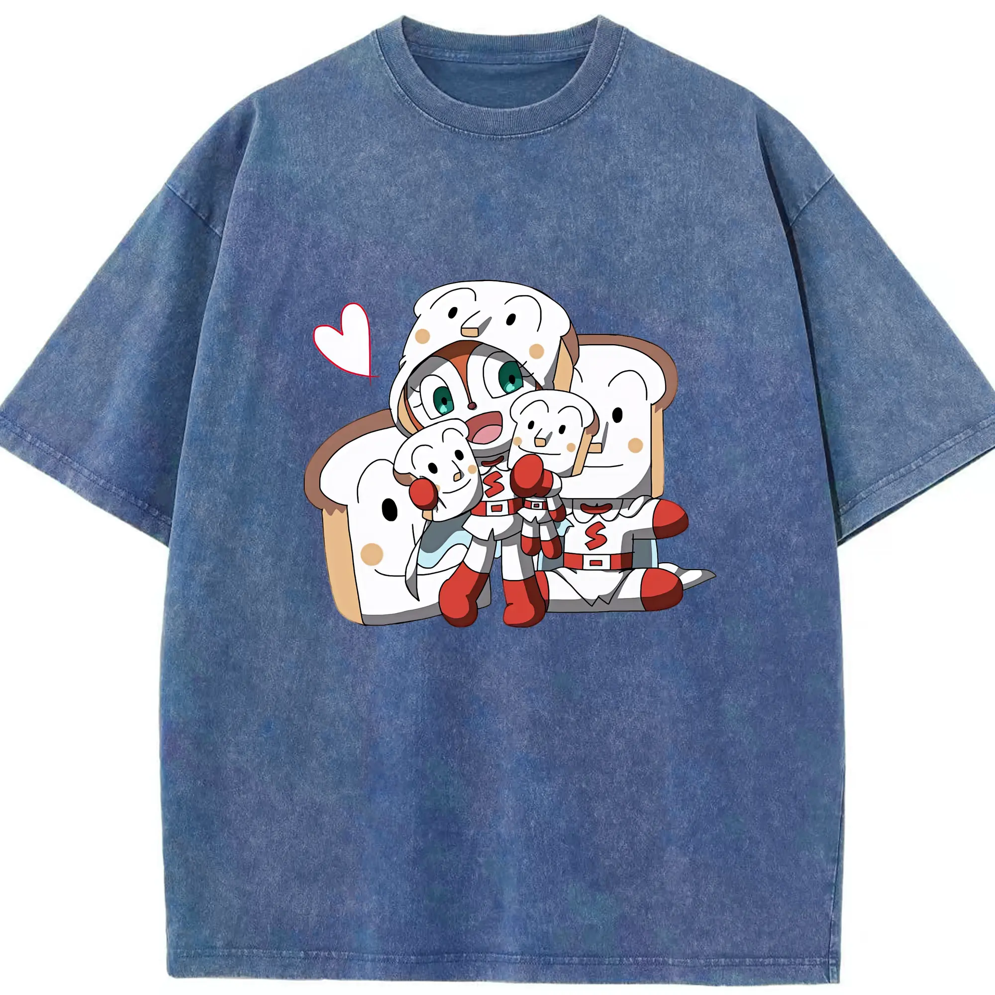アンパンマン グッズ,しょくぱんまん - 綿100% ヴィンテージ風 半袖Tシャツ ・ 背面プリント ・ 柔らか肌触り ・ 通気性 快適 ・ スポーツ カジュアル 外出用