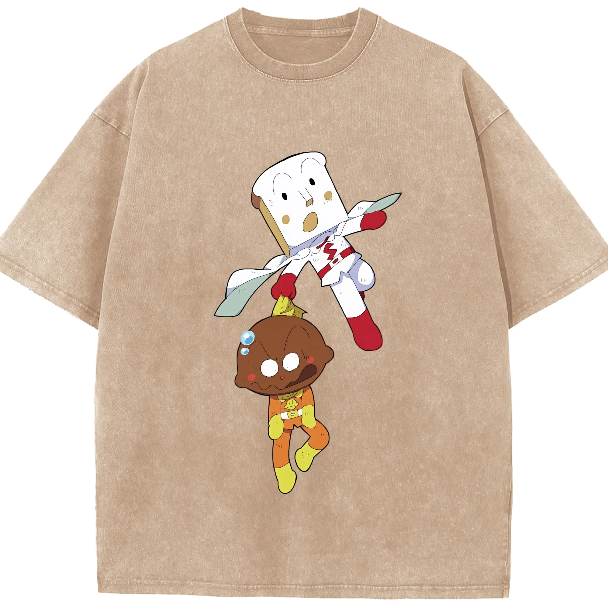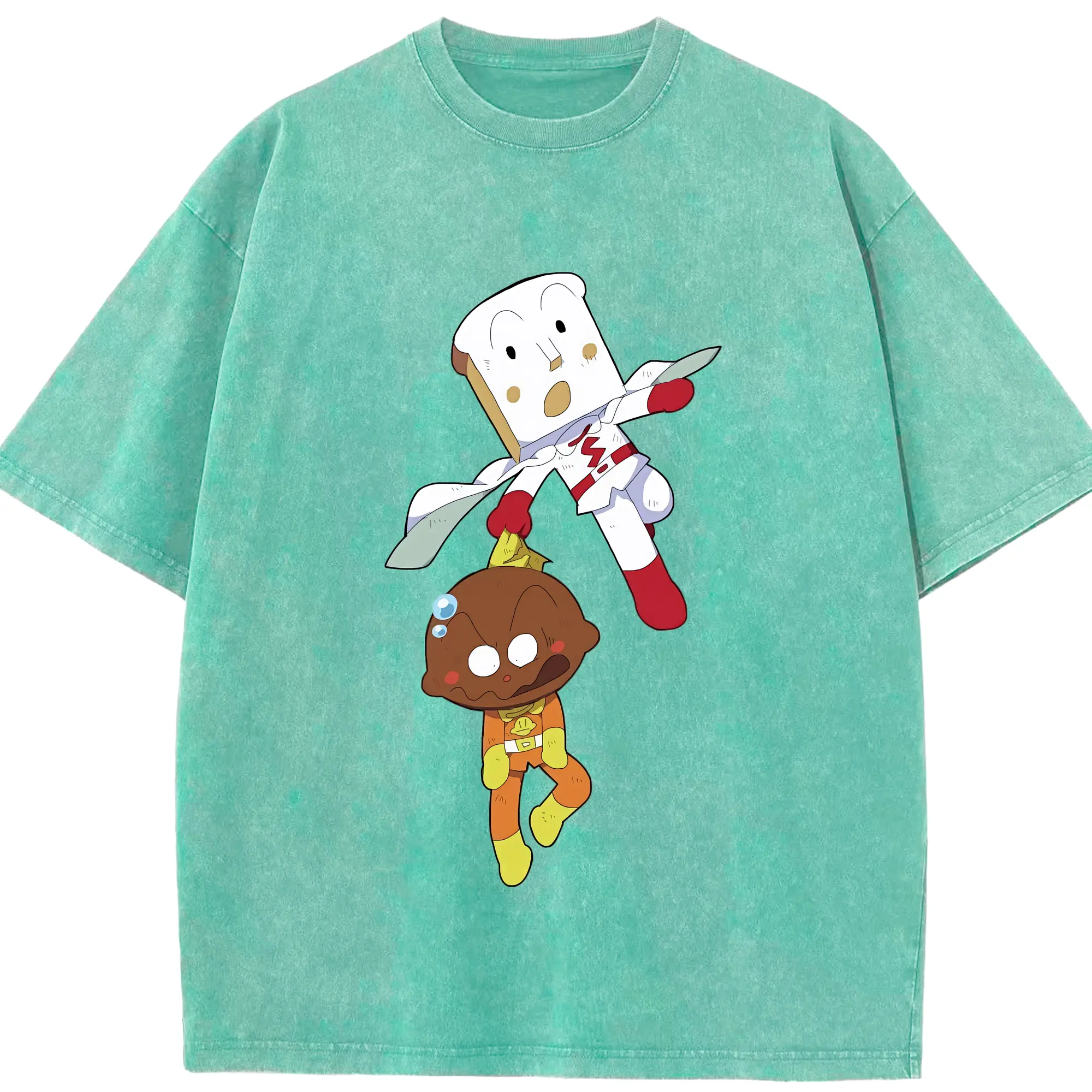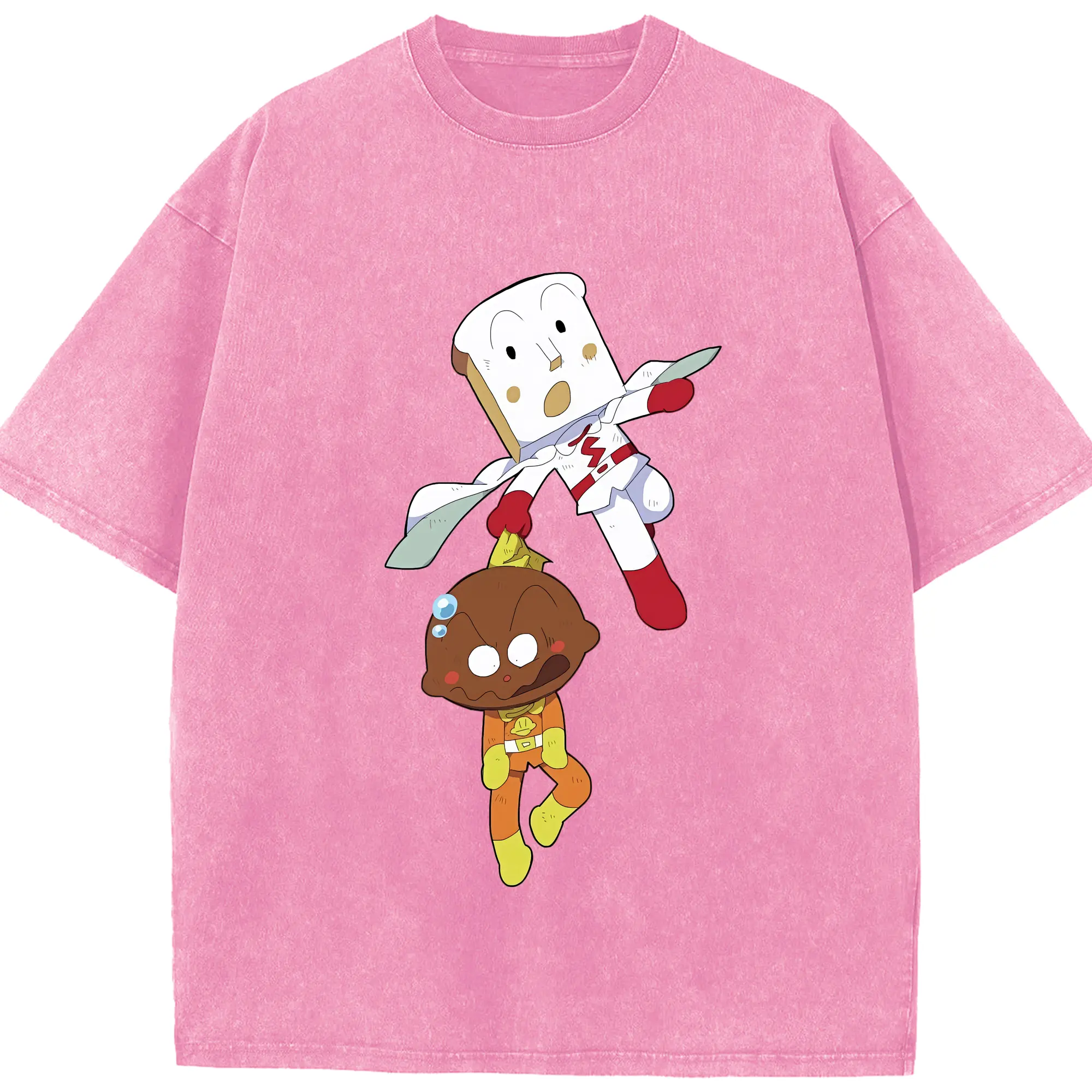 アンパンマン グッズ,しょくぱんまん - 綿100% ヴィンテージ風 半袖Tシャツ ・ 背面プリント ・ 柔らか肌触り ・ 通気性 快適 ・ スポーツ カジュアル 外出用