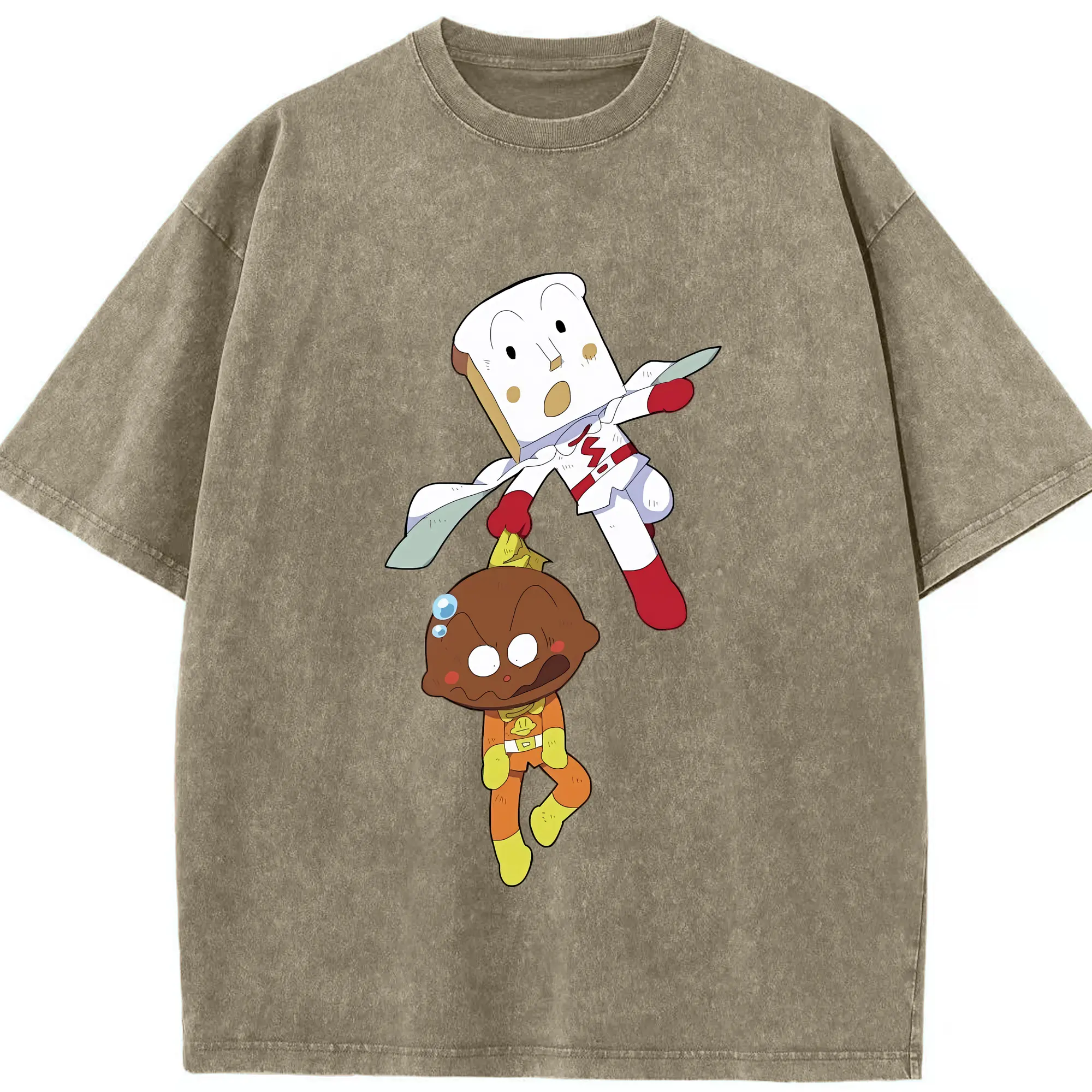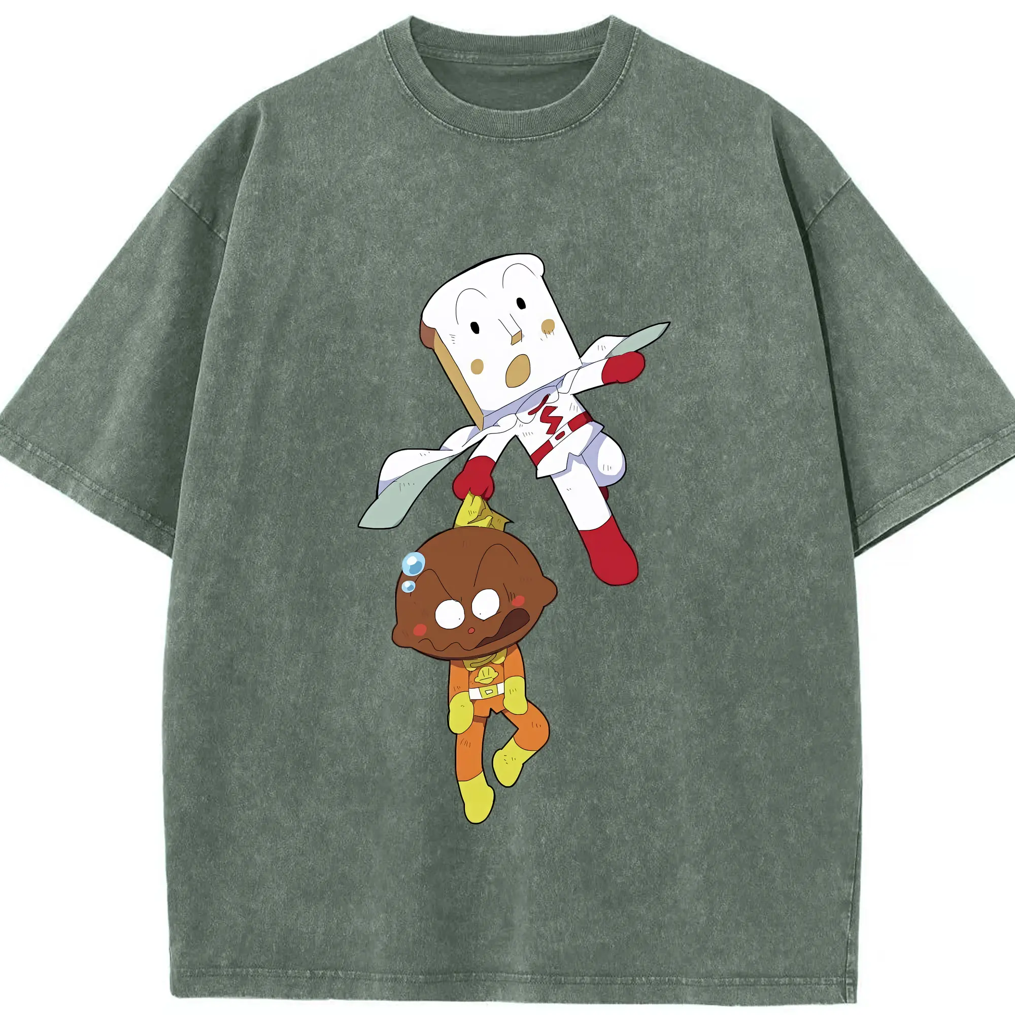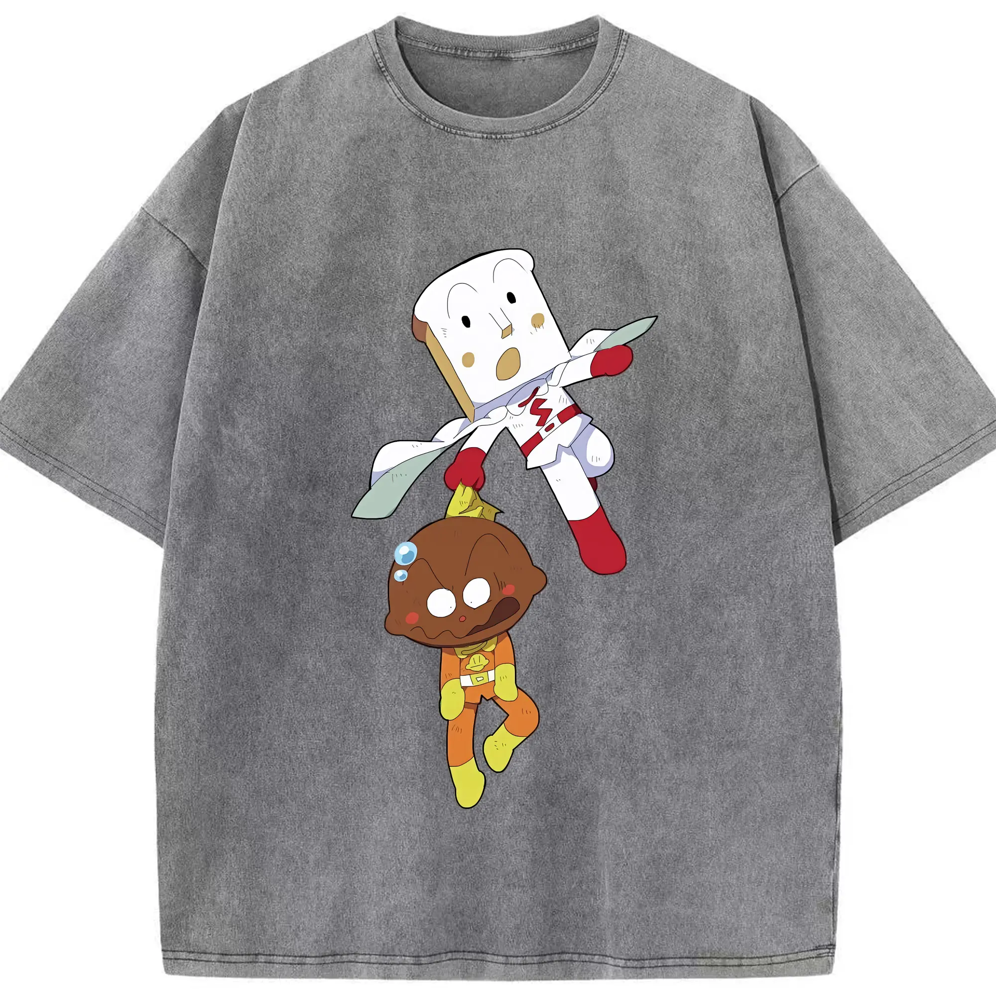 アンパンマン グッズ,しょくぱんまん - 綿100% ヴィンテージ風 半袖Tシャツ ・ 背面プリント ・ 柔らか肌触り ・ 通気性 快適 ・ スポーツ カジュアル 外出用