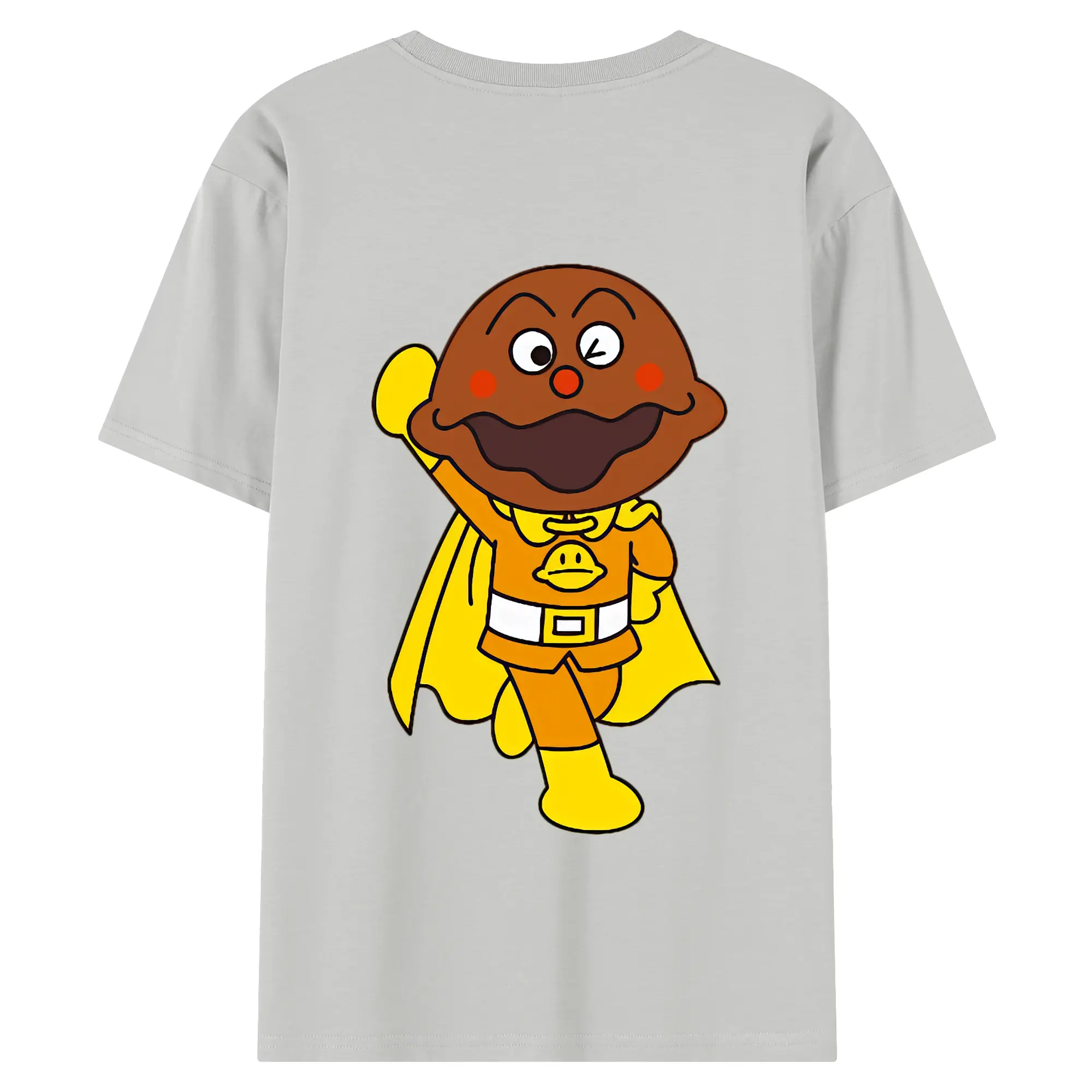 アンパンマン グッズ,カレーパンマン - 綿100% ヴィンテージ風 半袖Tシャツ ・ 背面プリント ・ 柔らか肌触り ・ 通気性 快適 ・ スポーツ カジュアル 外出用