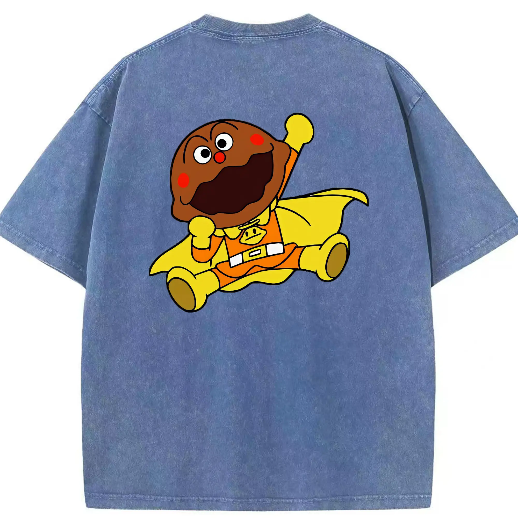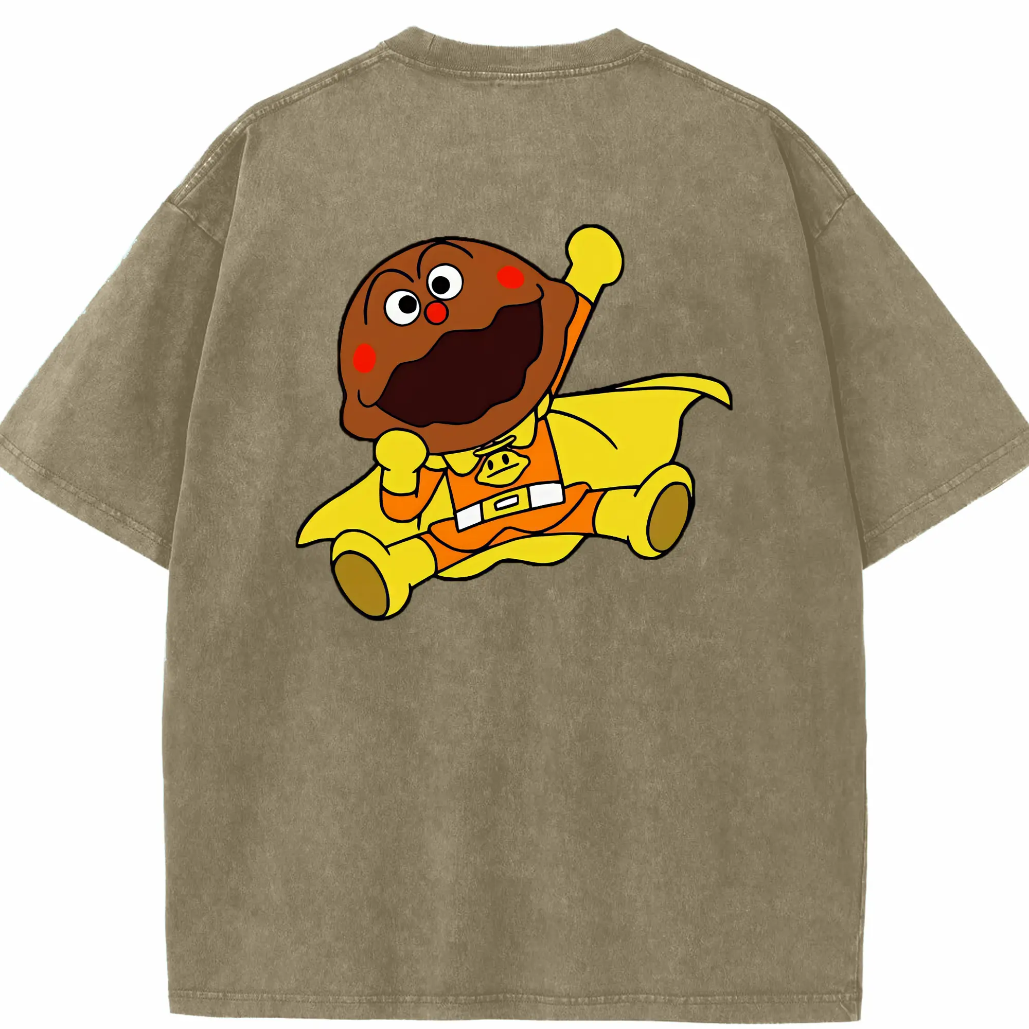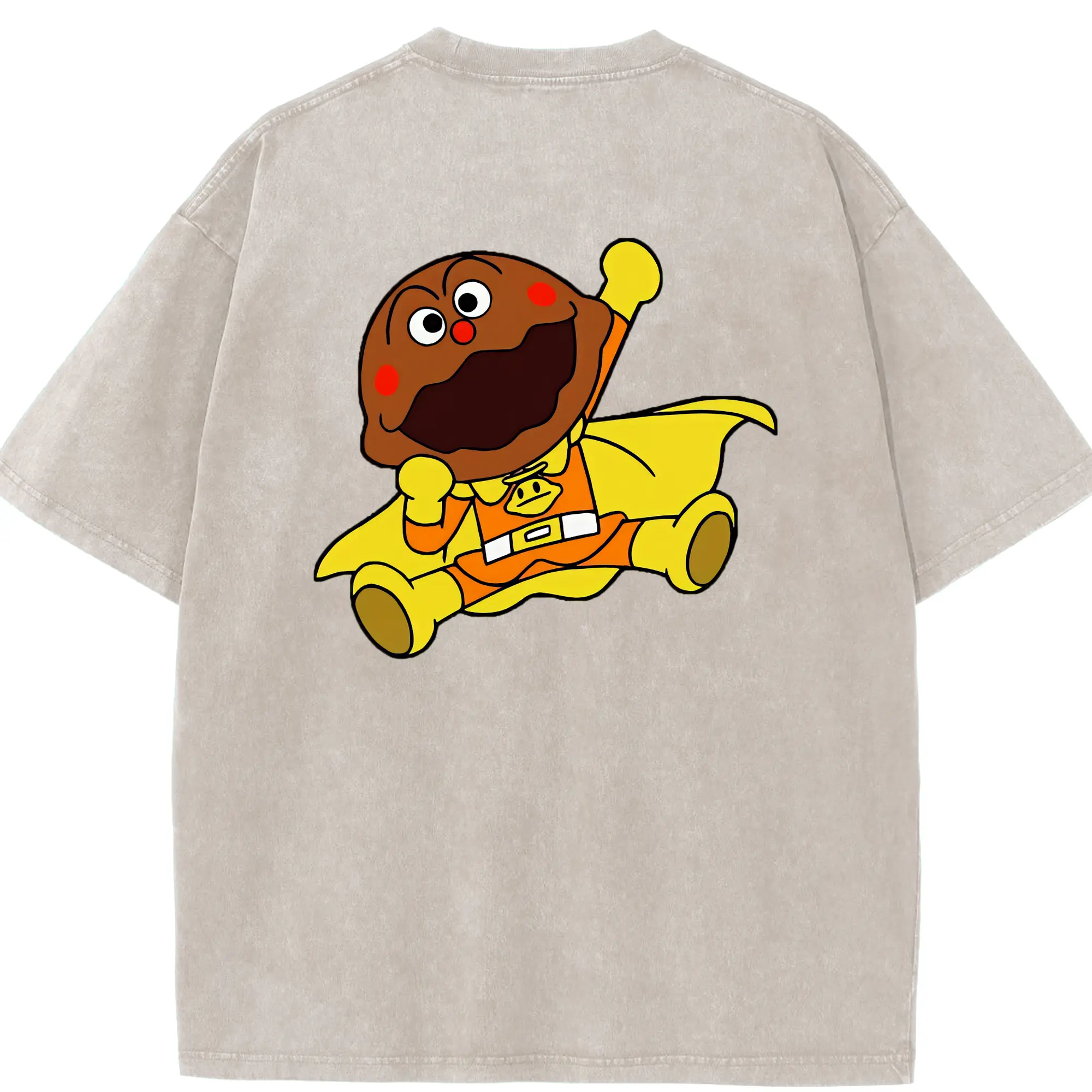 アンパンマン グッズ,カレーパンマン - 綿100% ヴィンテージ風 半袖Tシャツ ・ フロントプリント ・ 柔らか肌触り ・ 通気性 快適 ・ スポーツ カジュアル 外出用