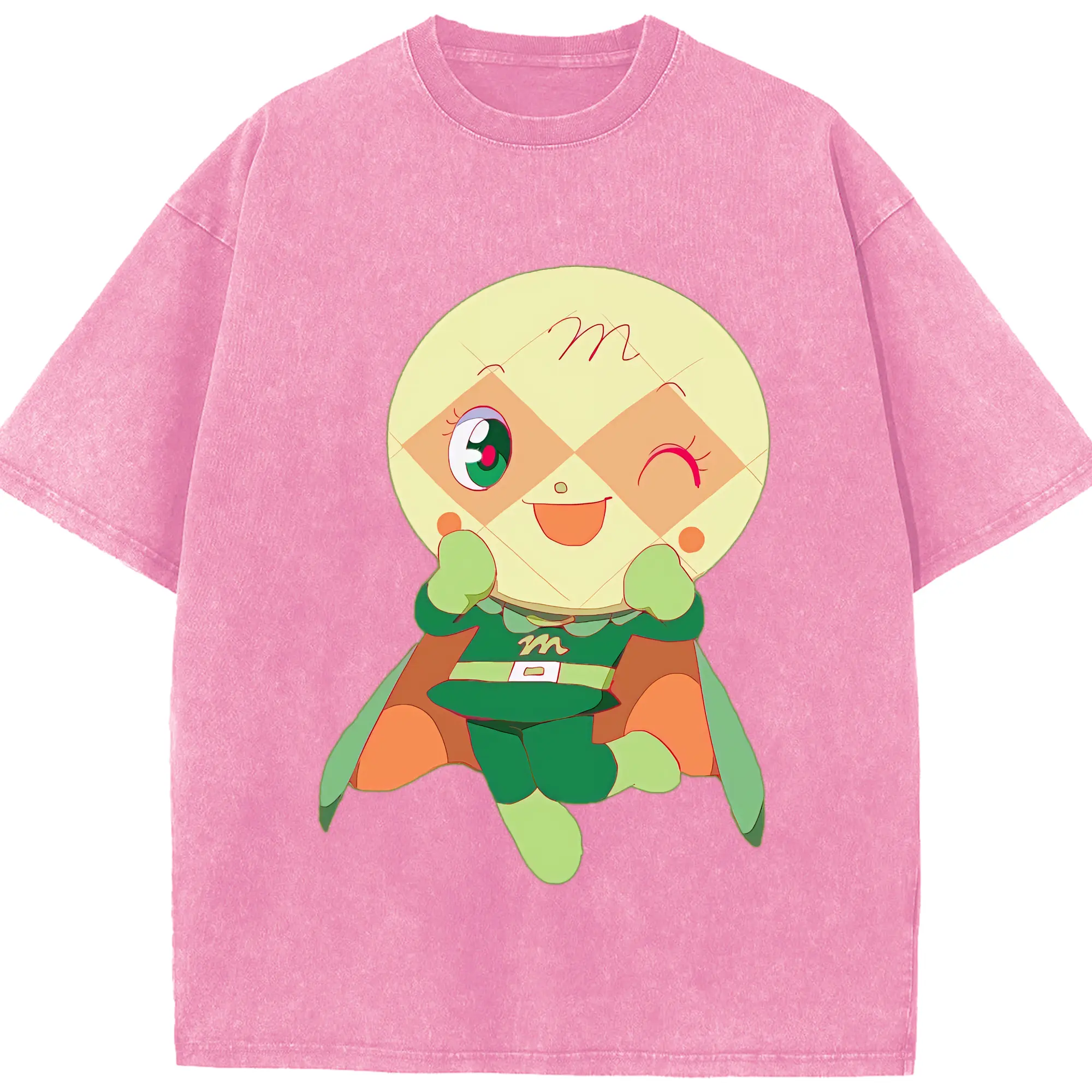 アンパンマン グッズ,メロンパンナ - 綿100% ヴィンテージ風 半袖Tシャツ ・ 背面プリント ・ 柔らか肌触り ・ 通気性 快適 ・ スポーツ カジュアル 外出用