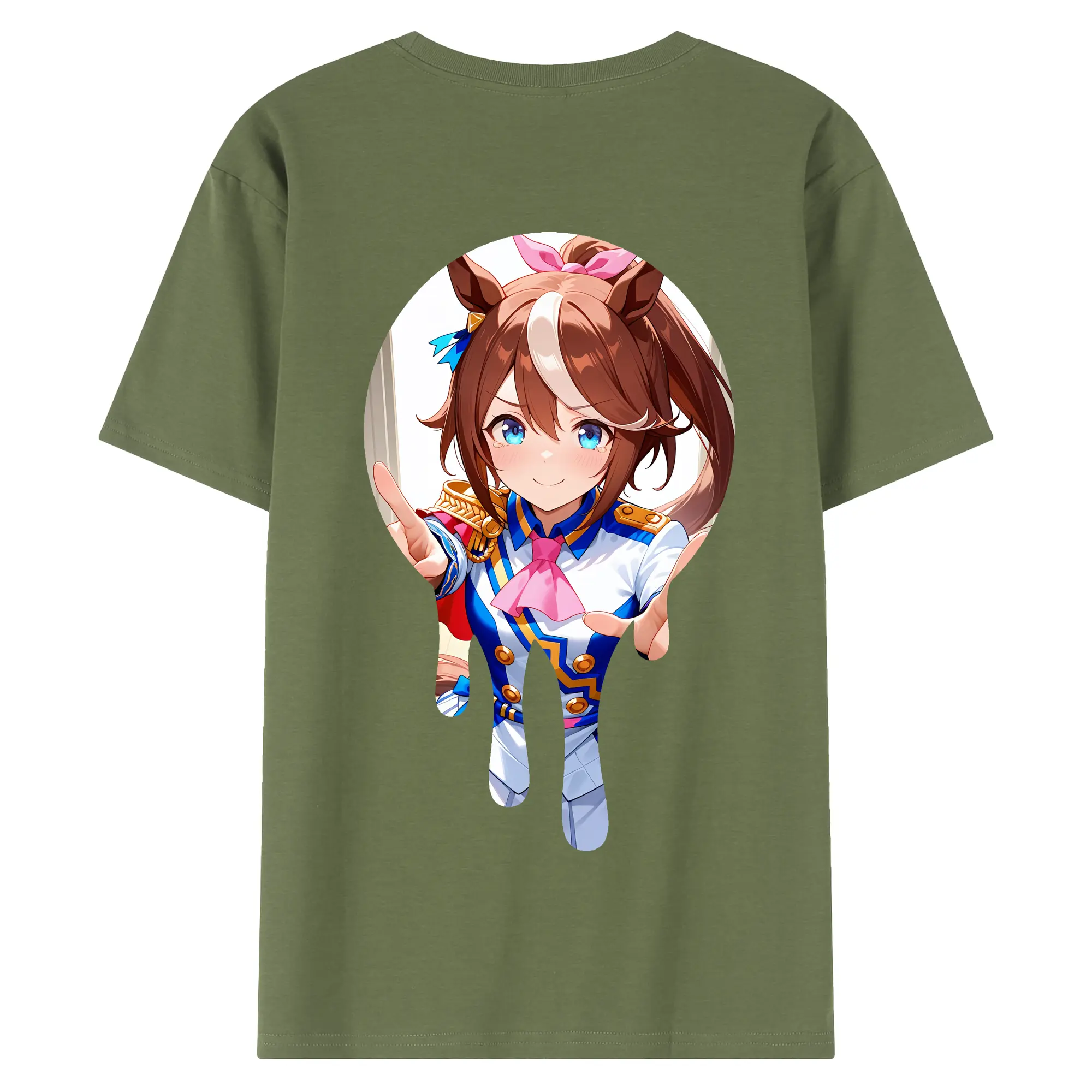 ウマ娘 プリティーダービー グッズ スペシャルウィーク - 綿100% 半袖Tシャツ ・ フロントプリント ・ 快適 通気性 ・ 日常使い 散歩 スポーツ用