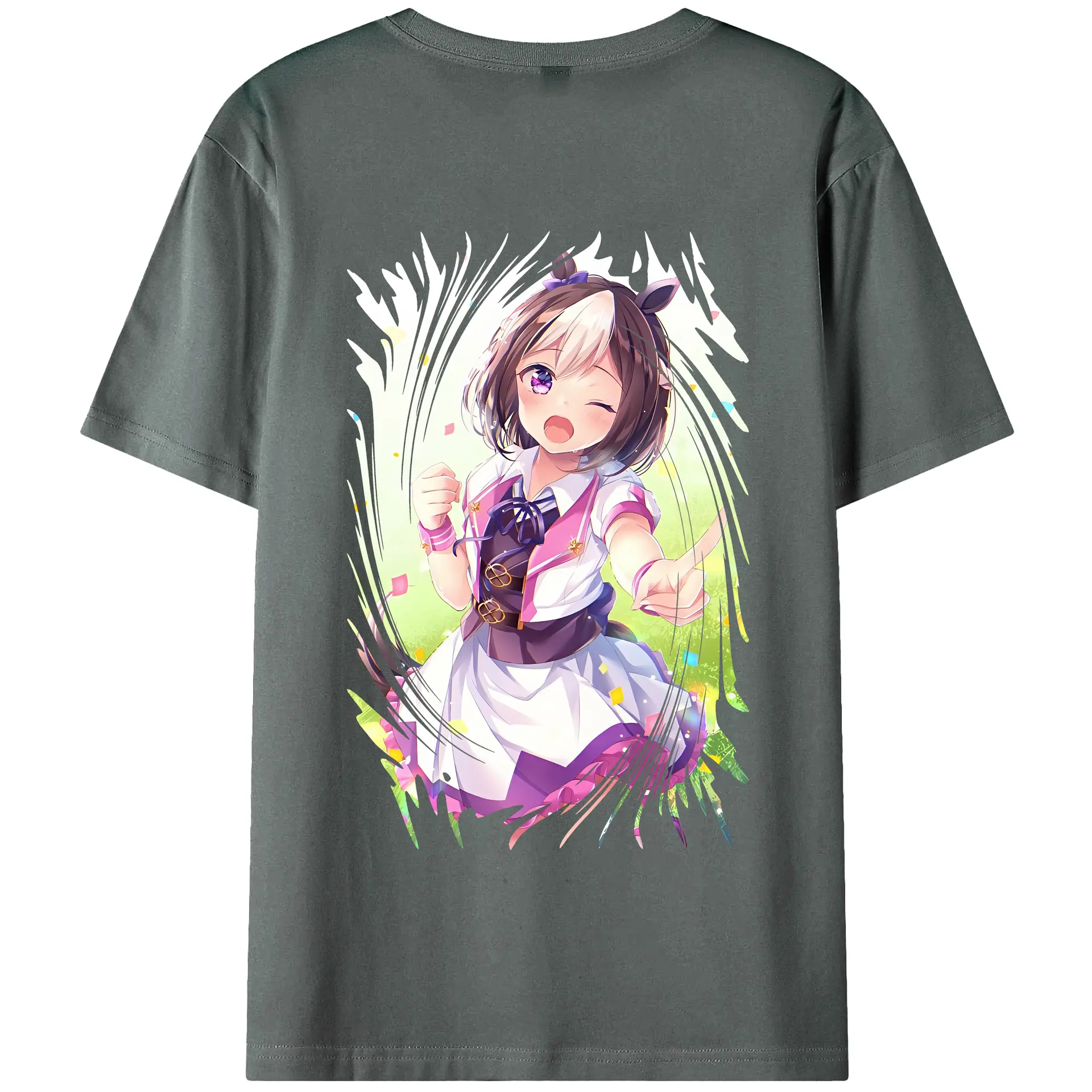 ウマ娘 プリティーダービー グッズ スペシャルウィーク - 綿100% 半袖Tシャツ ・ フロントプリント ・ 快適 通気性 ・ 日常使い 散歩 スポーツ用
