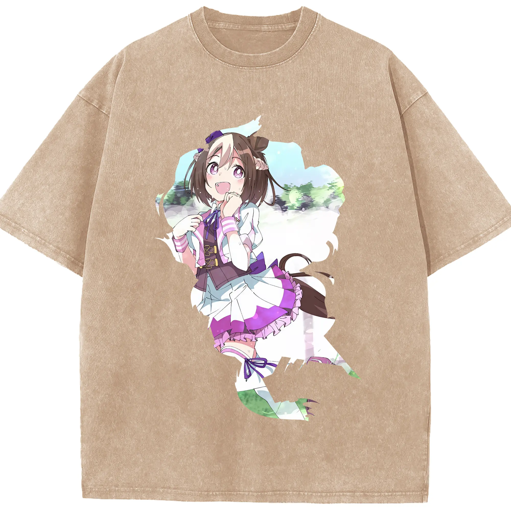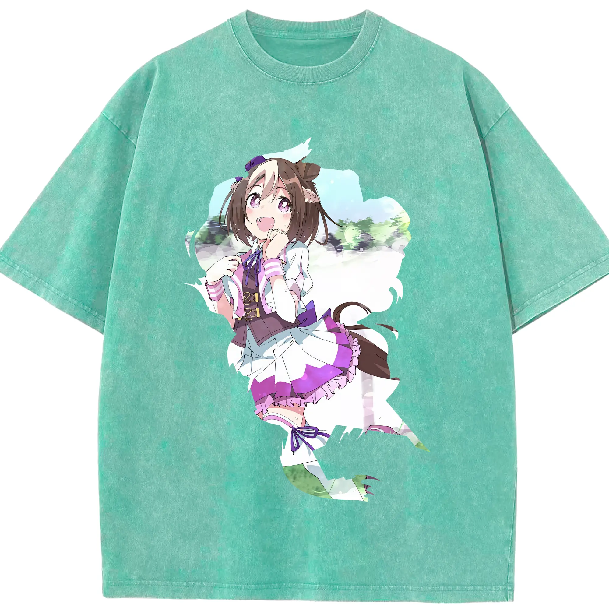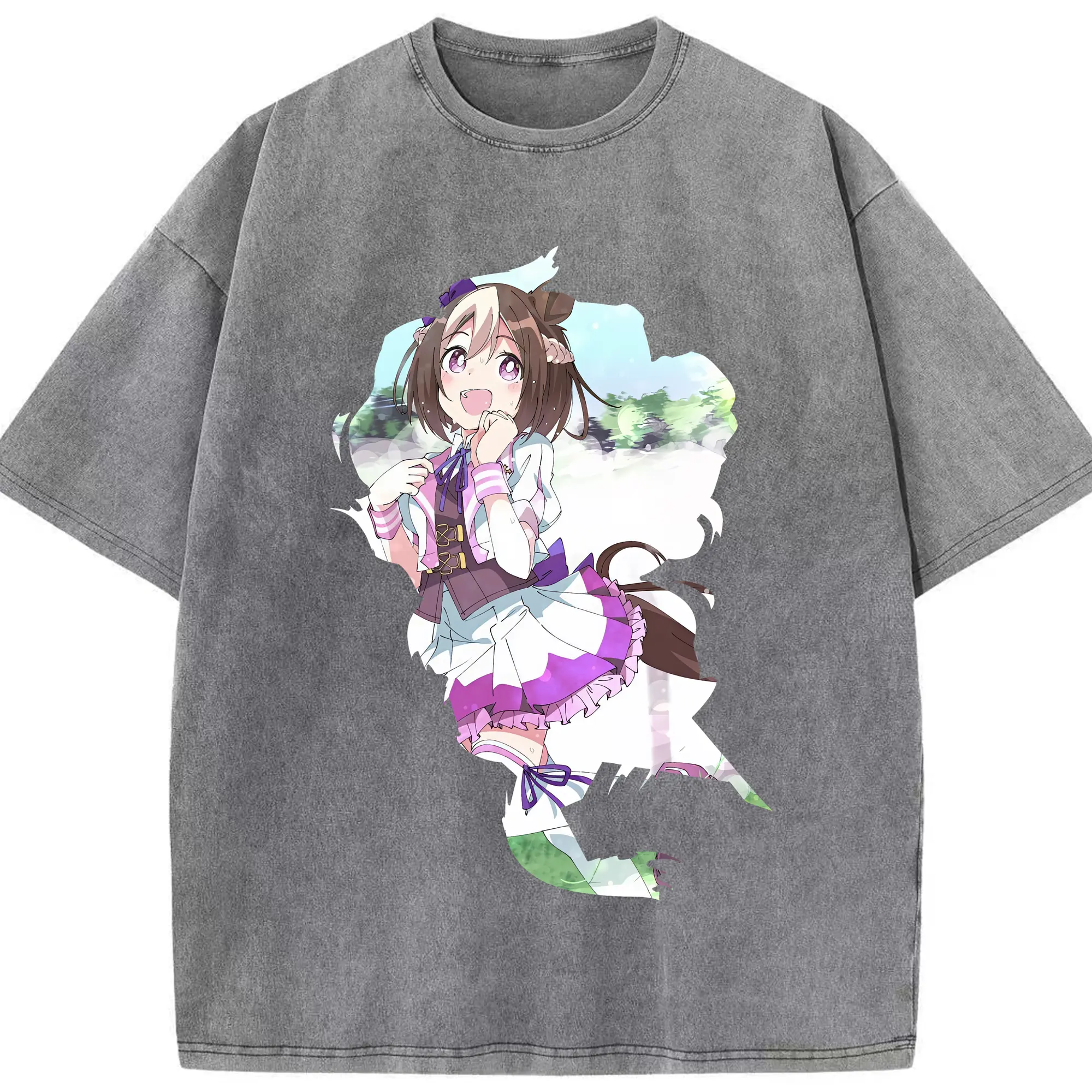 ウマ娘 プリティーダービー グッズ スペシャルウィーク - 綿100% ヴィンテージ風 半袖Tシャツ ・ 背面プリント ・ 柔らか肌触り ・ 通気性 快適 ・ スポーツ カジュアル 外出用