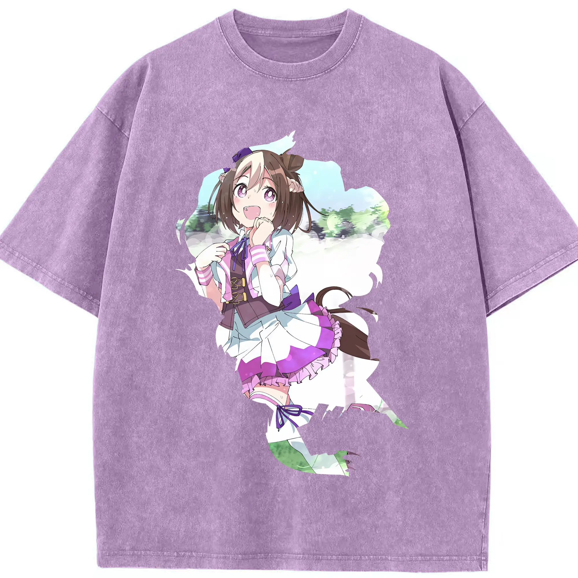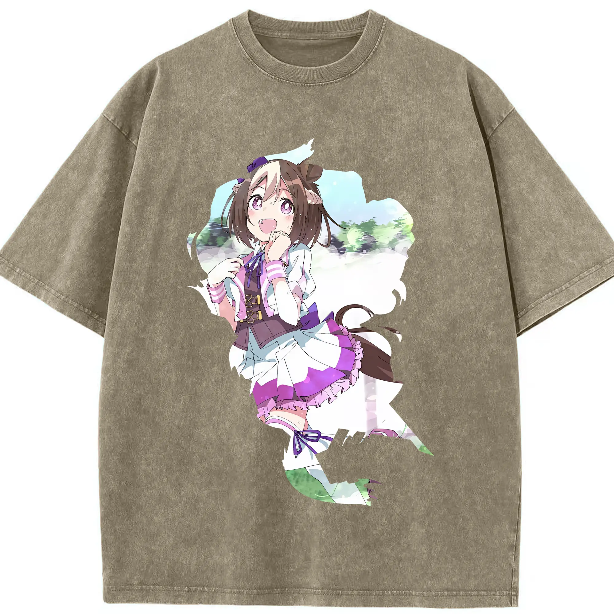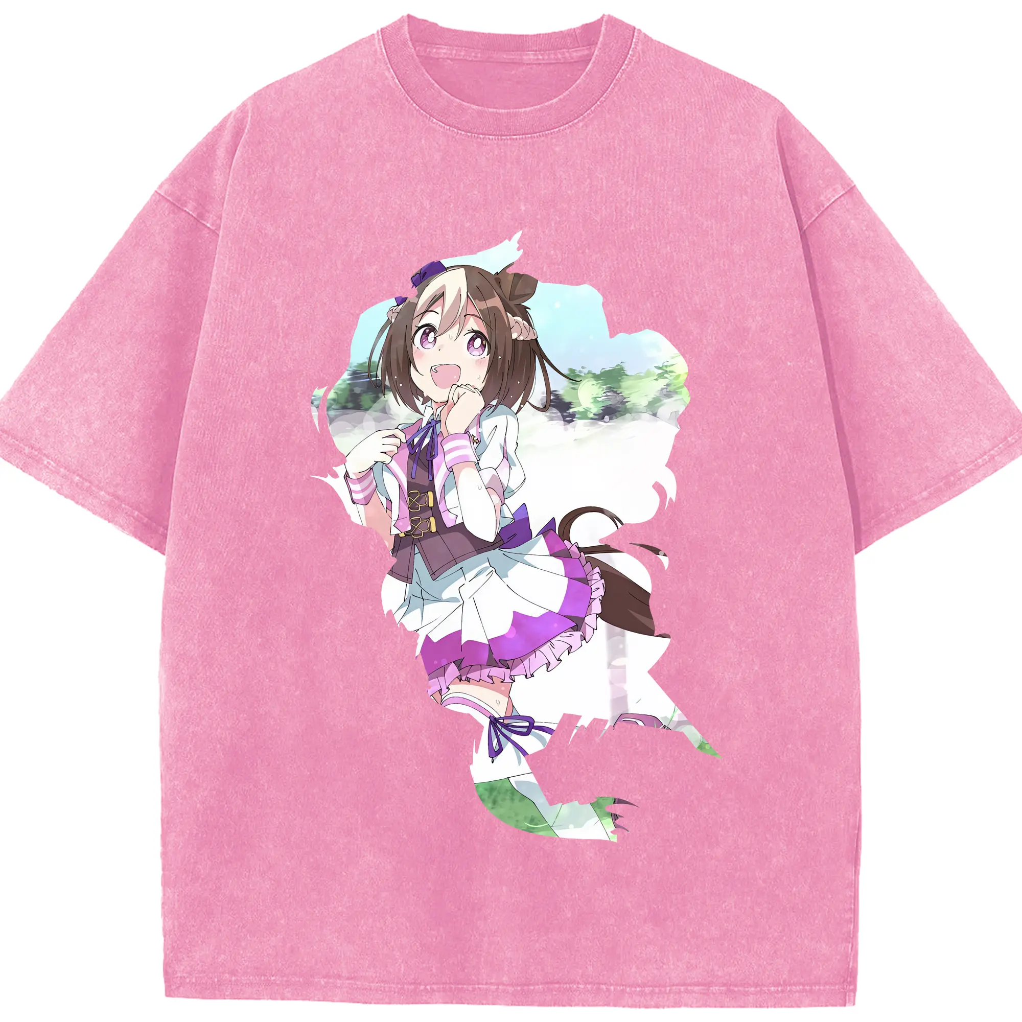 ウマ娘 プリティーダービー グッズ スペシャルウィーク - 綿100% ヴィンテージ風 半袖Tシャツ ・ 背面プリント ・ 柔らか肌触り ・ 通気性 快適 ・ スポーツ カジュアル 外出用