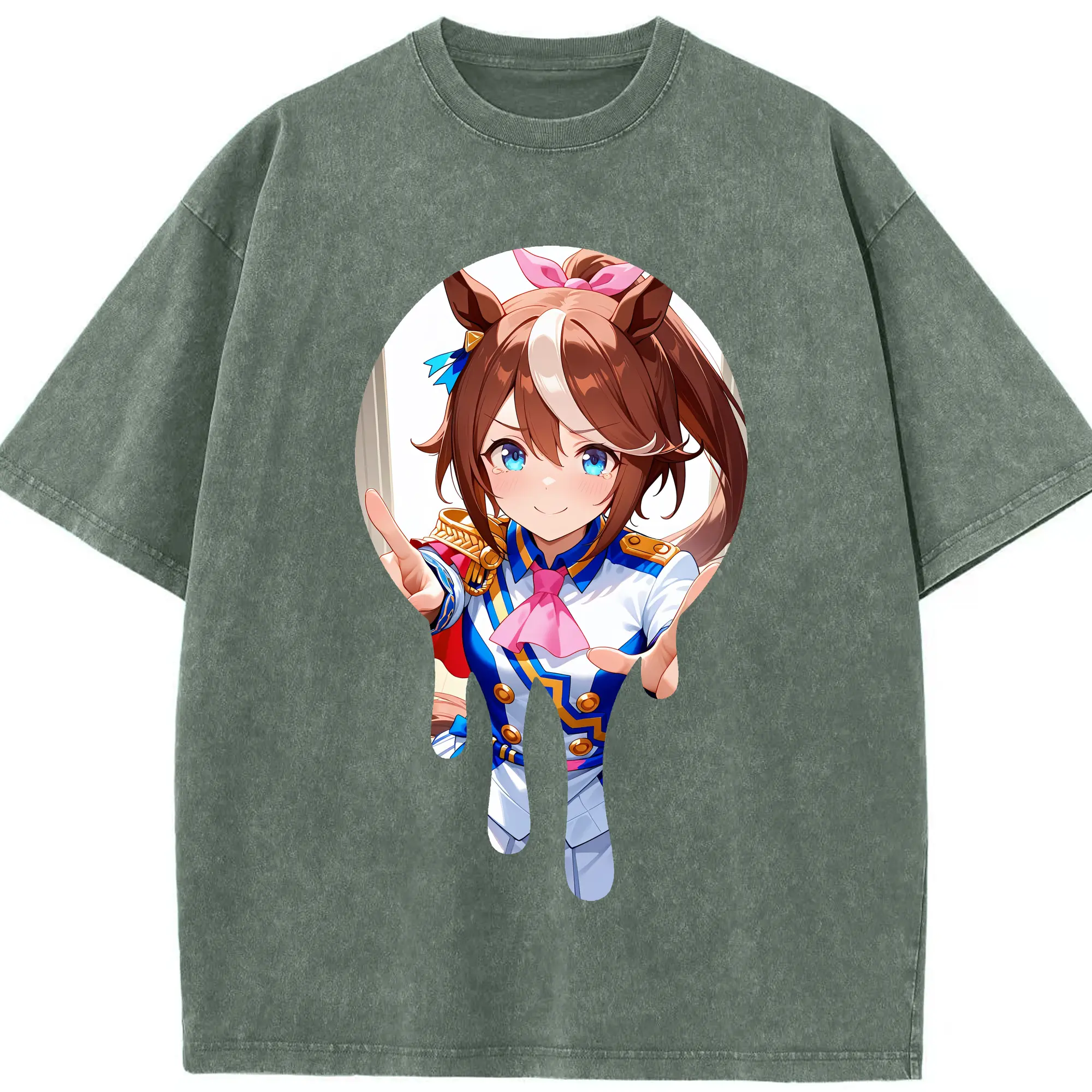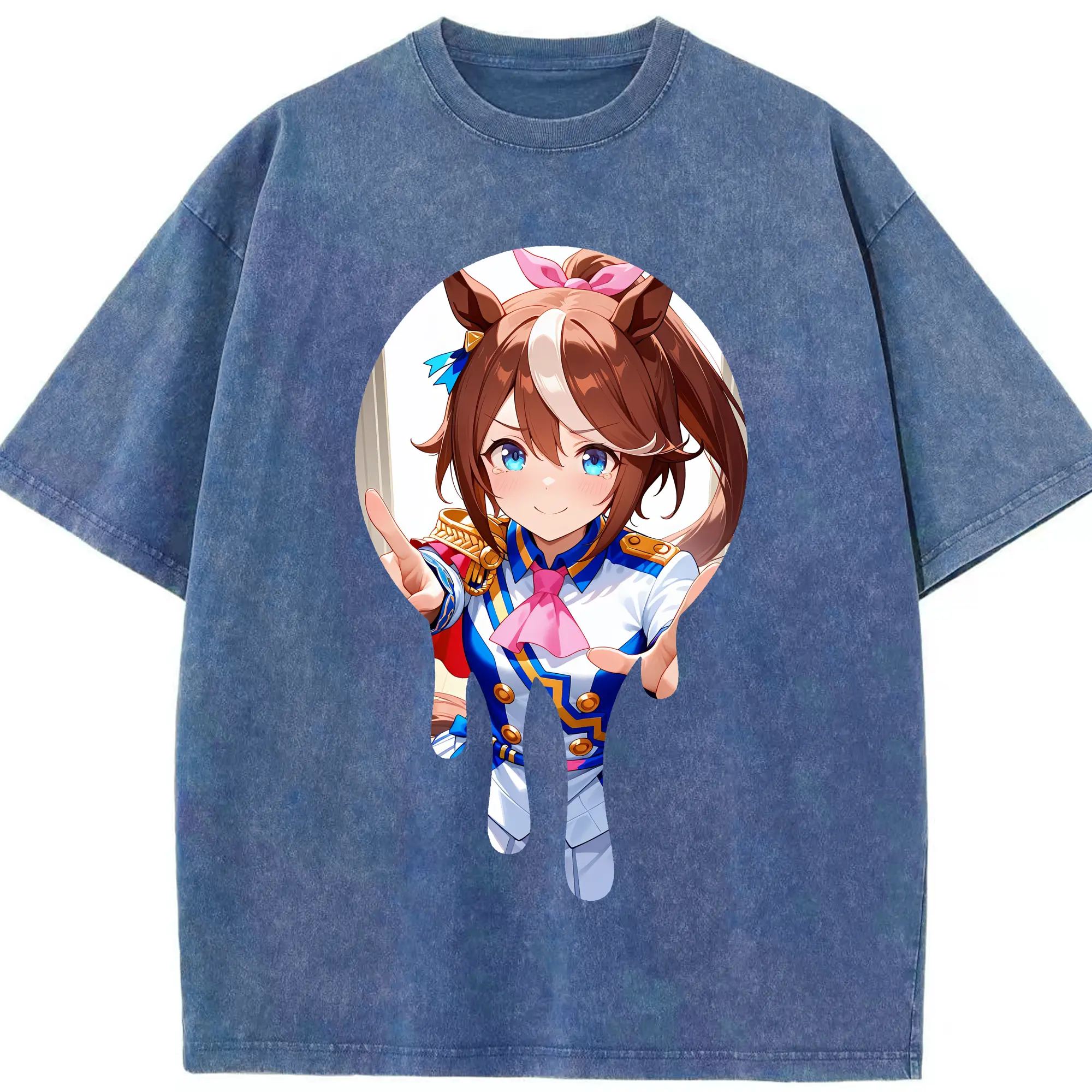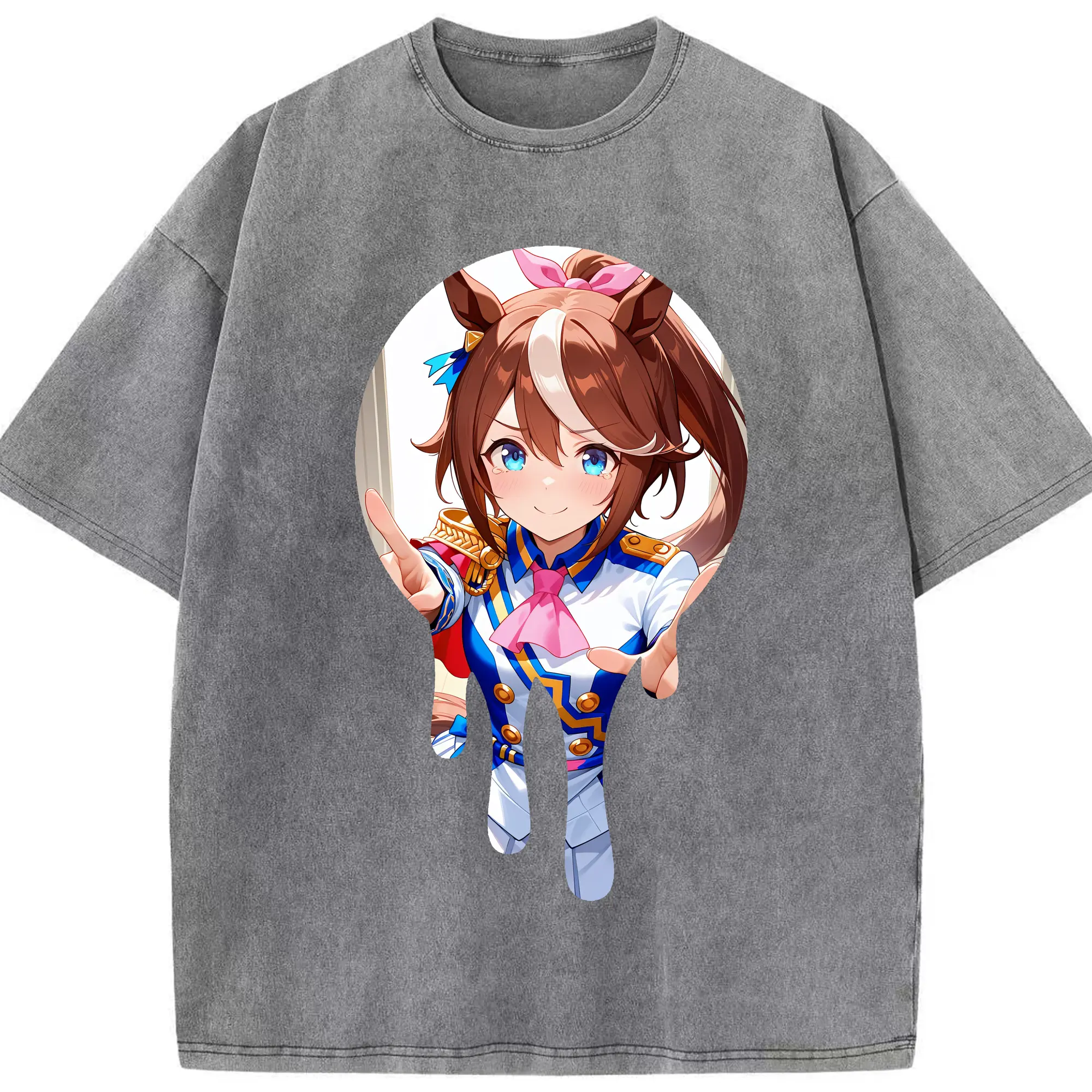 ウマ娘 プリティーダービー グッズ スペシャルウィーク - 綿100% ヴィンテージ風 半袖Tシャツ ・ 背面プリント ・ 柔らか肌触り ・ 通気性 快適 ・ スポーツ カジュアル 外出用