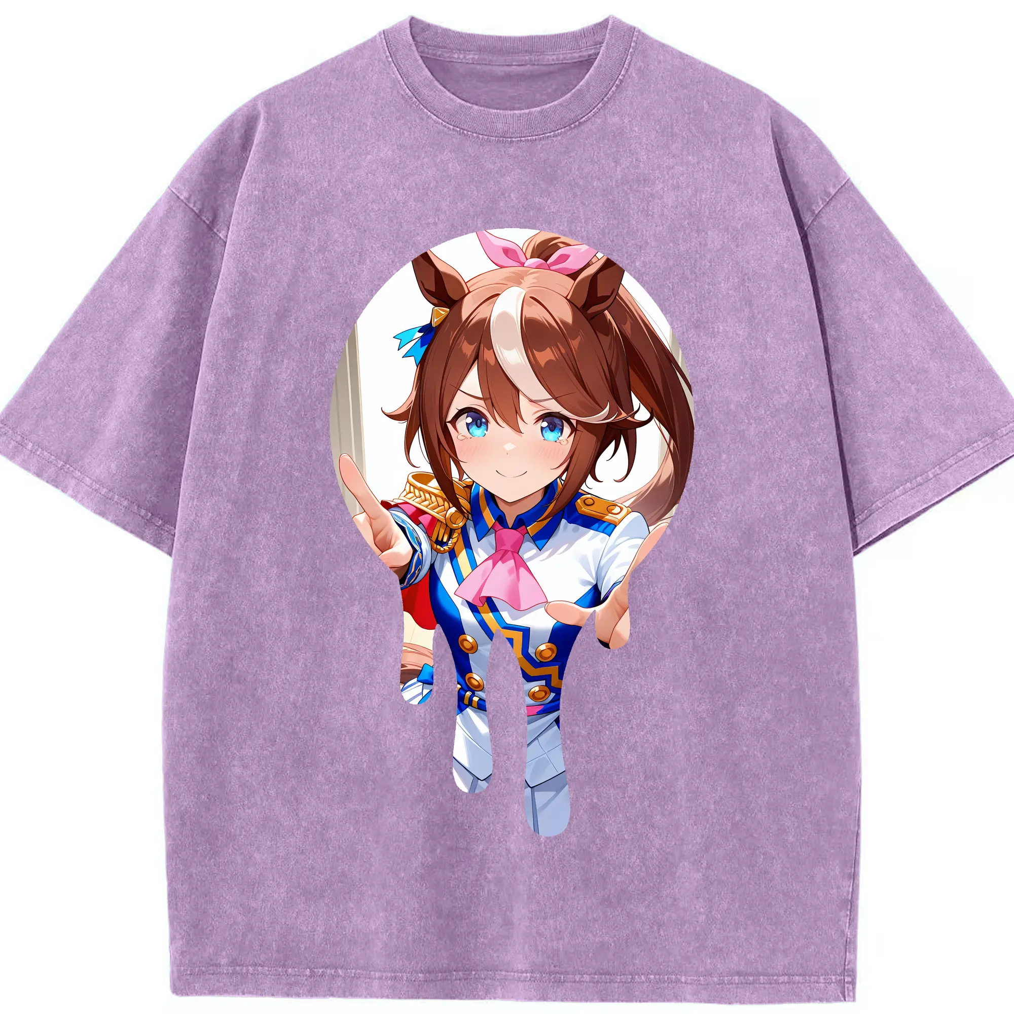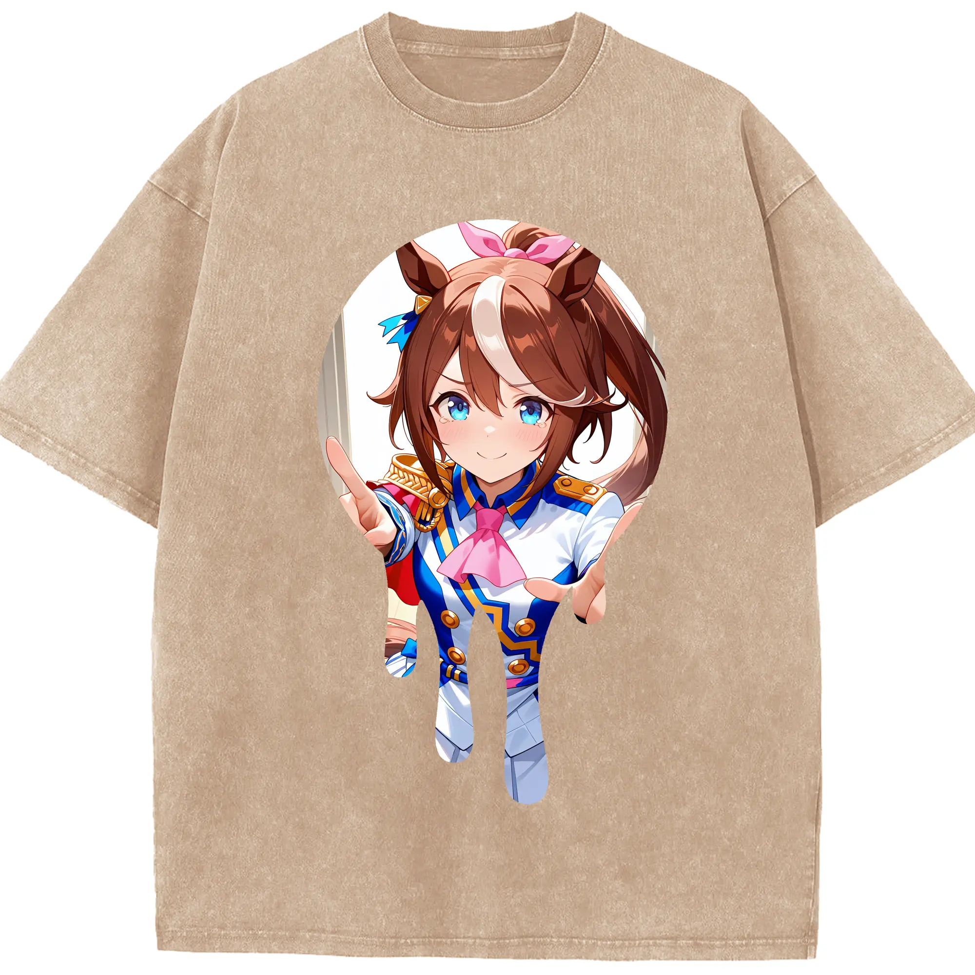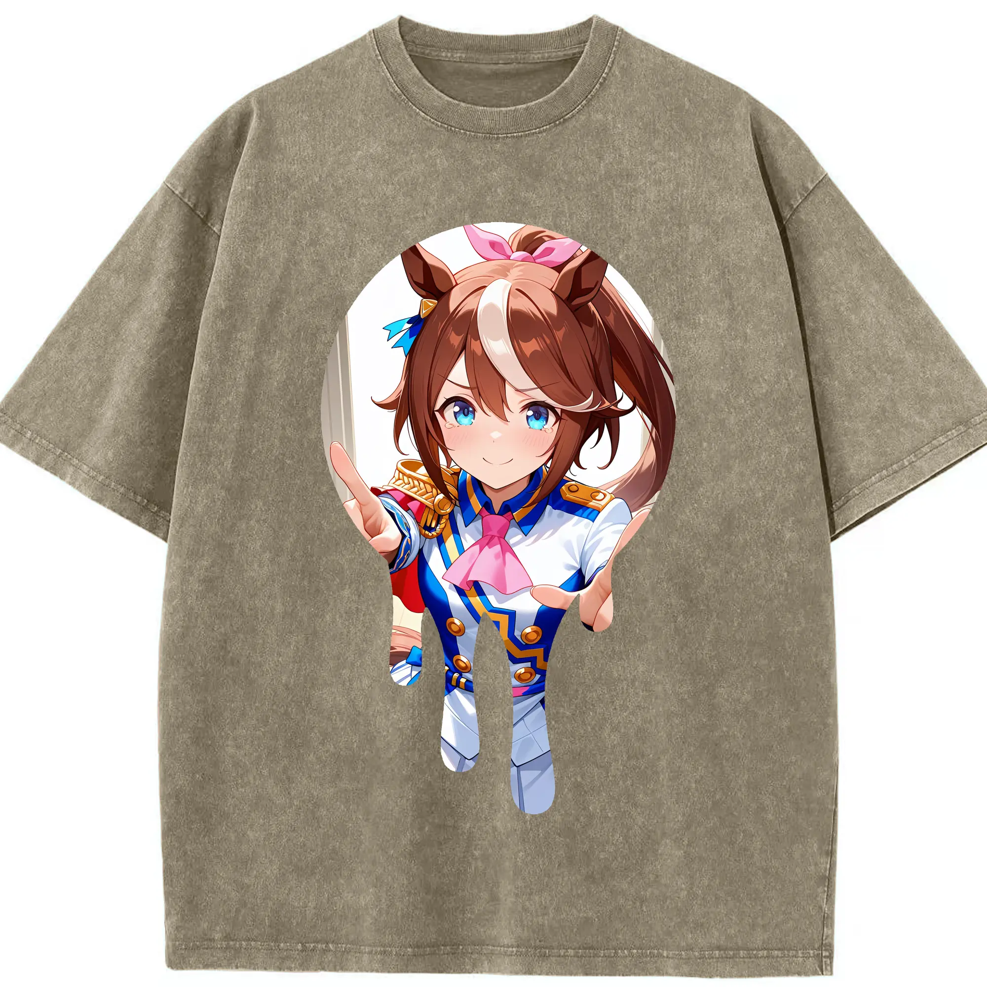 ウマ娘 プリティーダービー グッズ スペシャルウィーク - 綿100% ヴィンテージ風 半袖Tシャツ ・ 背面プリント ・ 柔らか肌触り ・ 通気性 快適 ・ スポーツ カジュアル 外出用