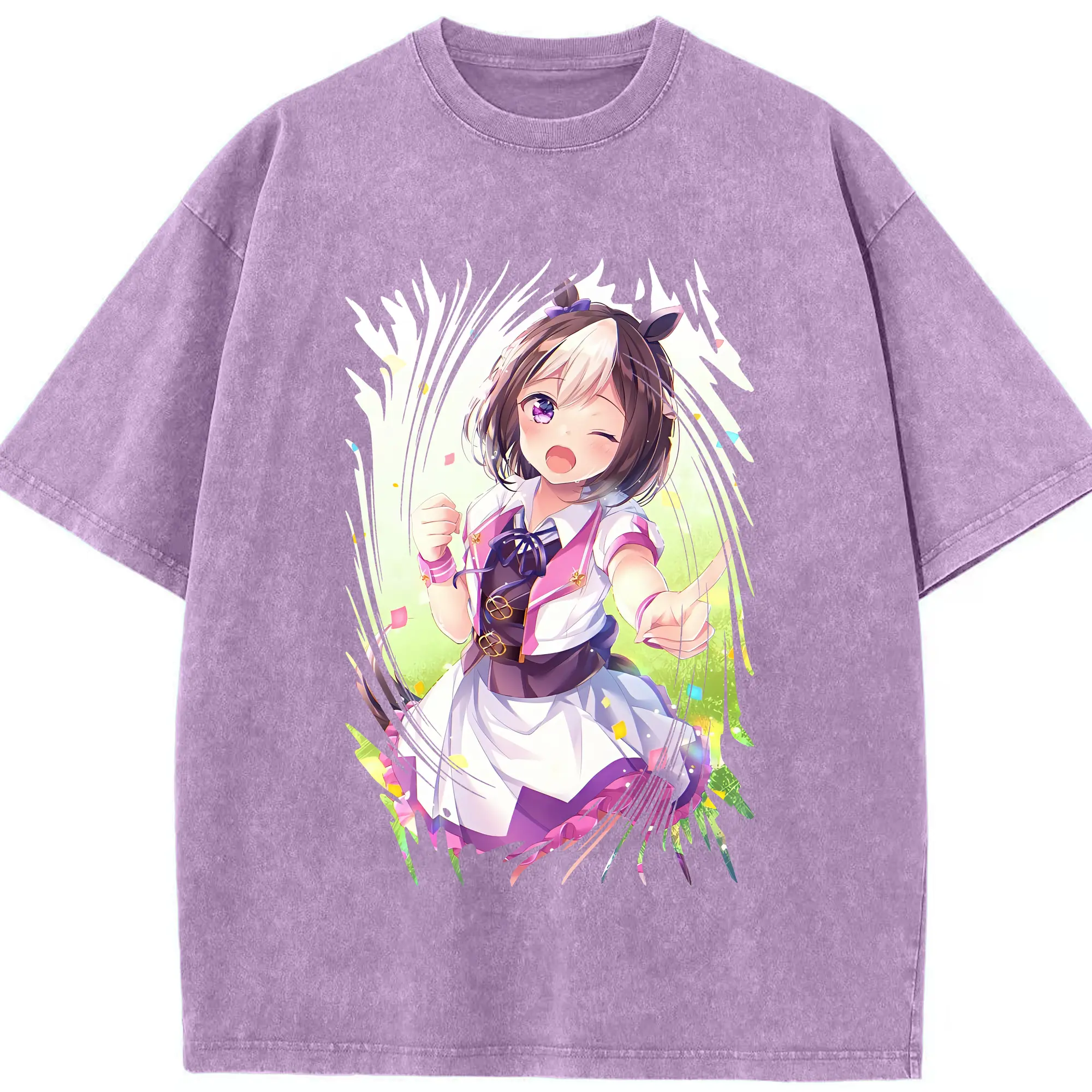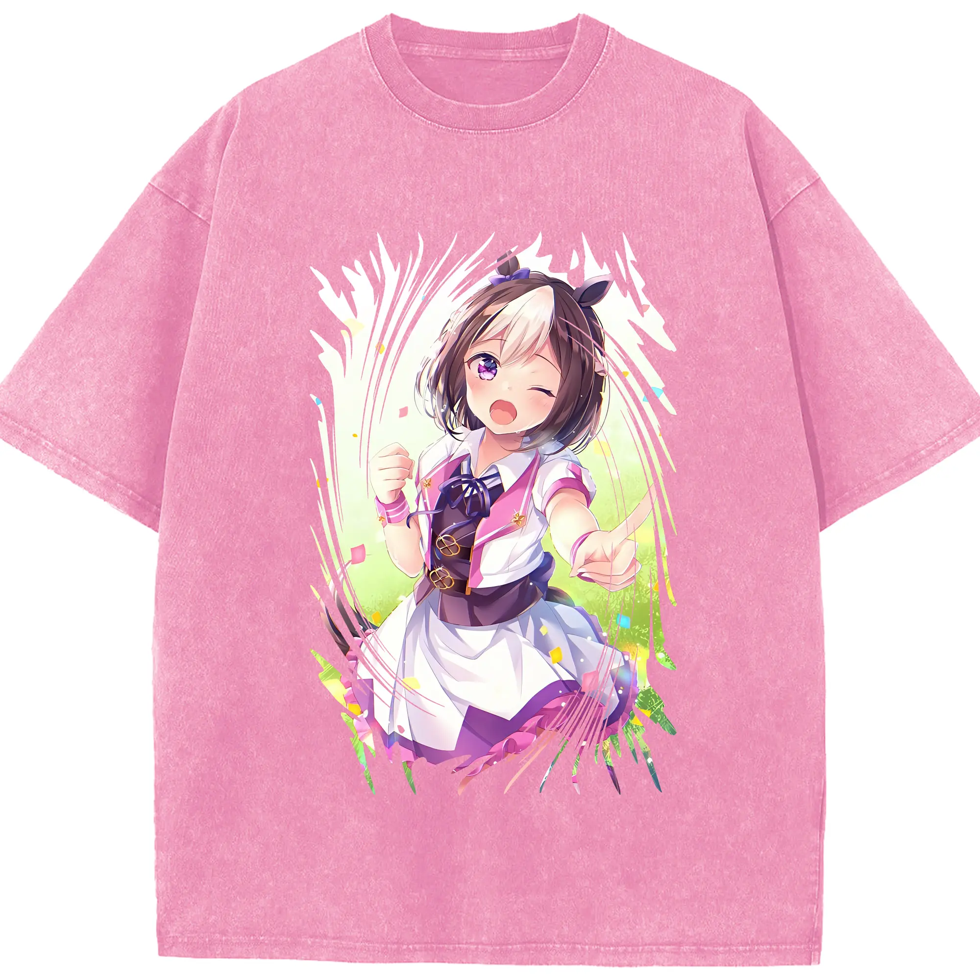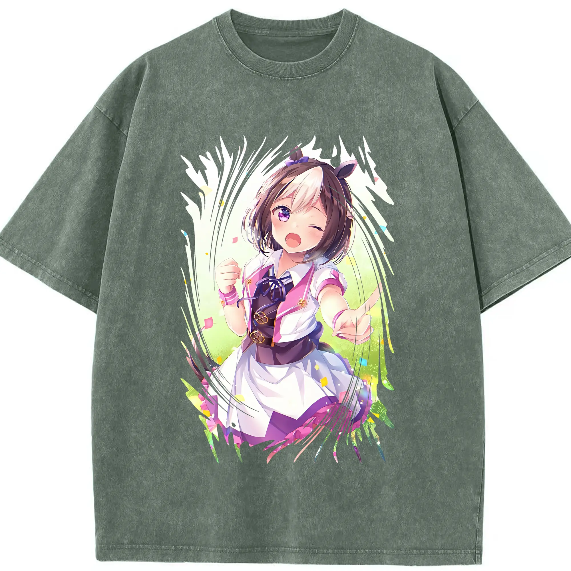 ウマ娘 プリティーダービー グッズ スペシャルウィーク - 綿100% ヴィンテージ風 半袖Tシャツ ・ 背面プリント ・ 柔らか肌触り ・ 通気性 快適 ・ スポーツ カジュアル 外出用