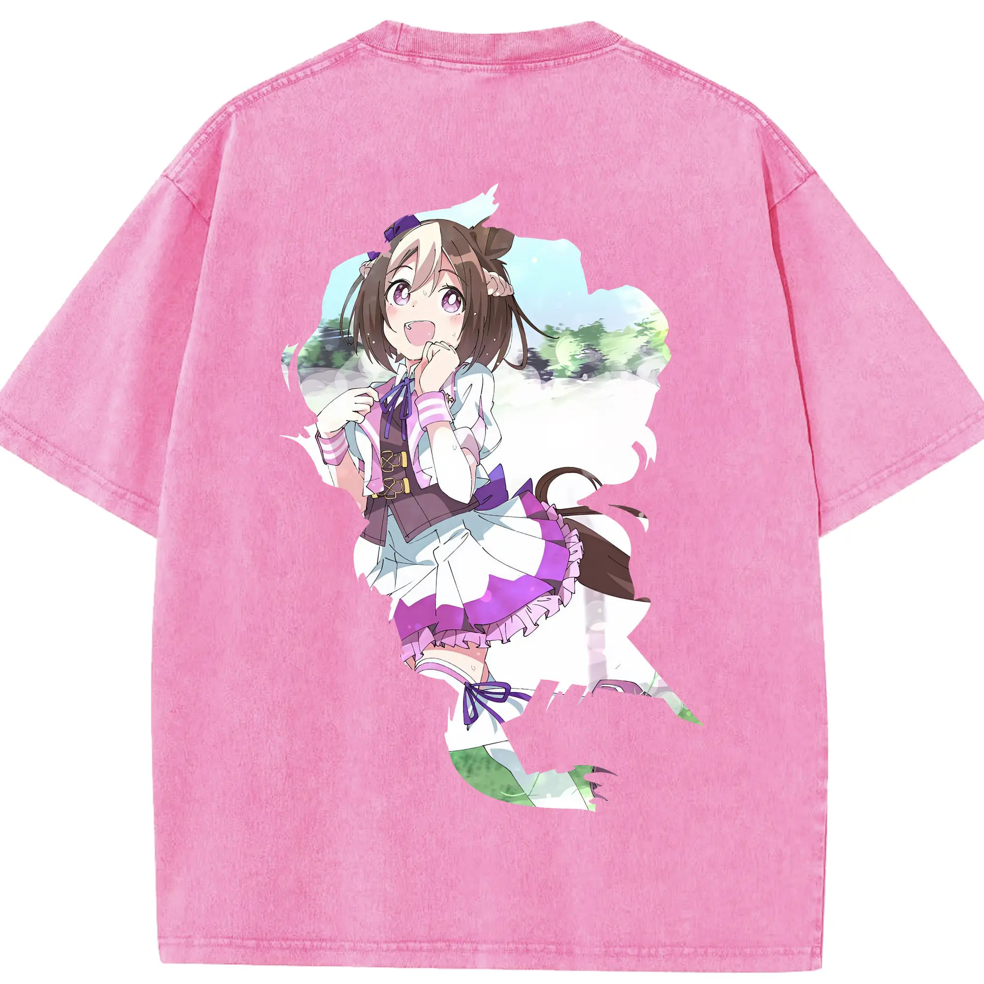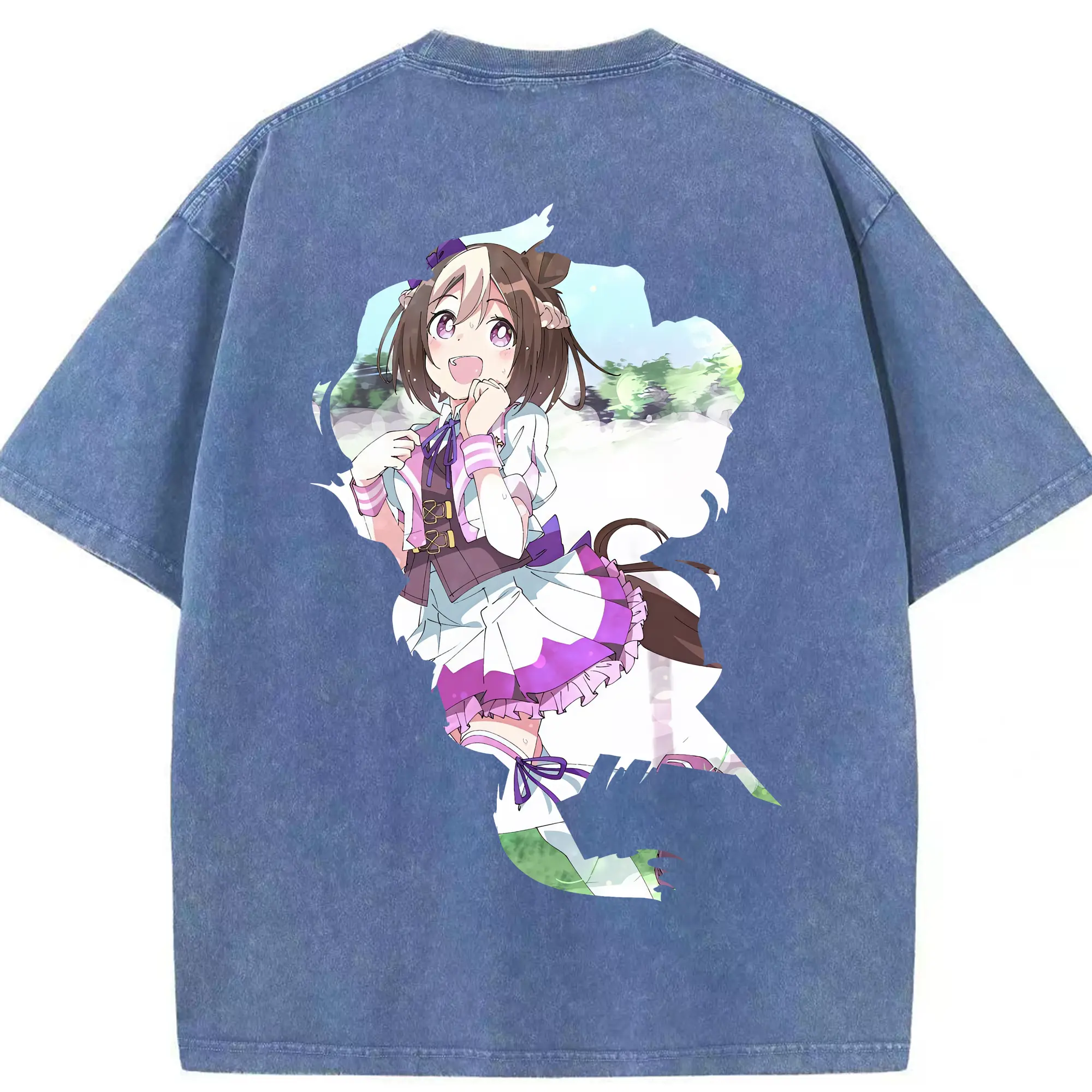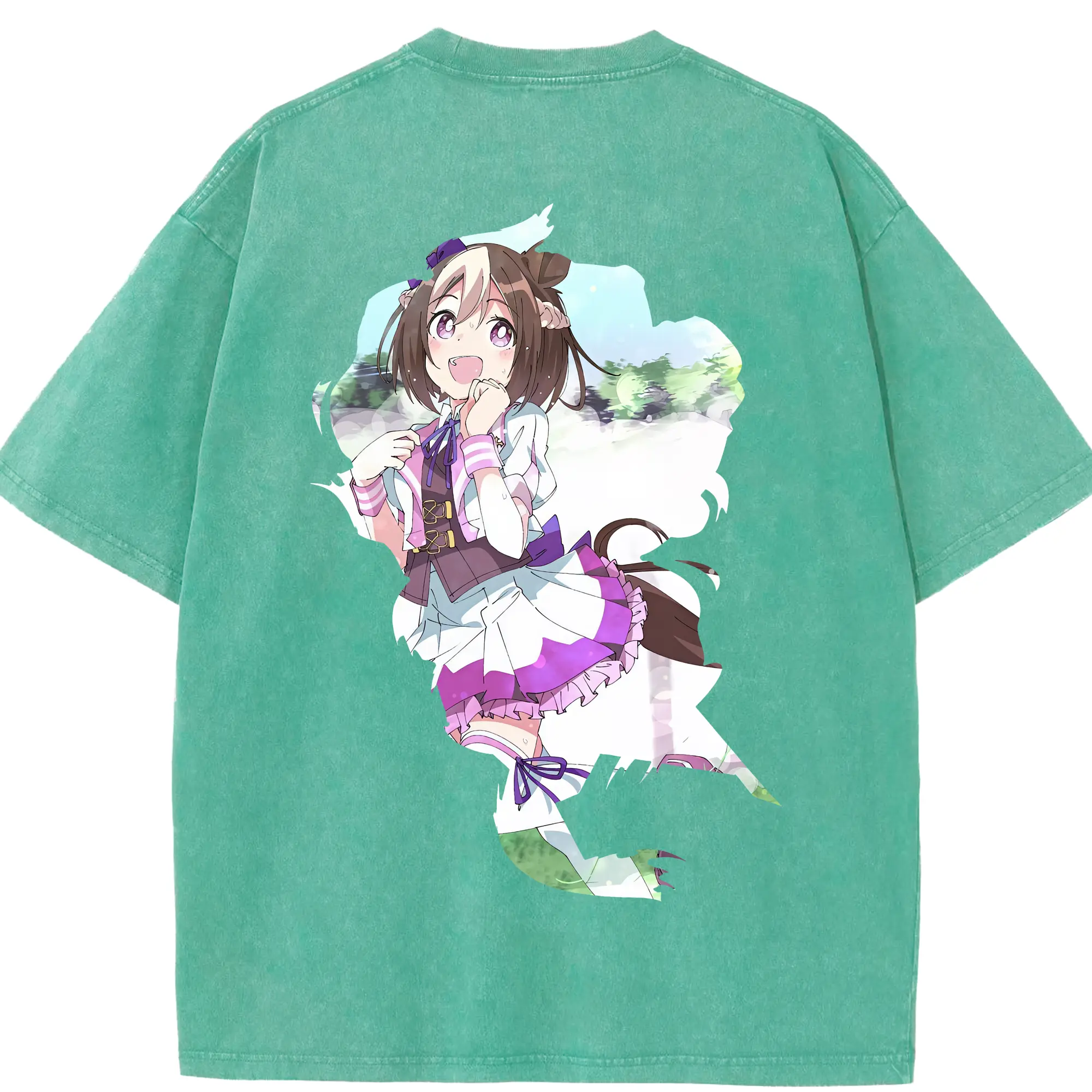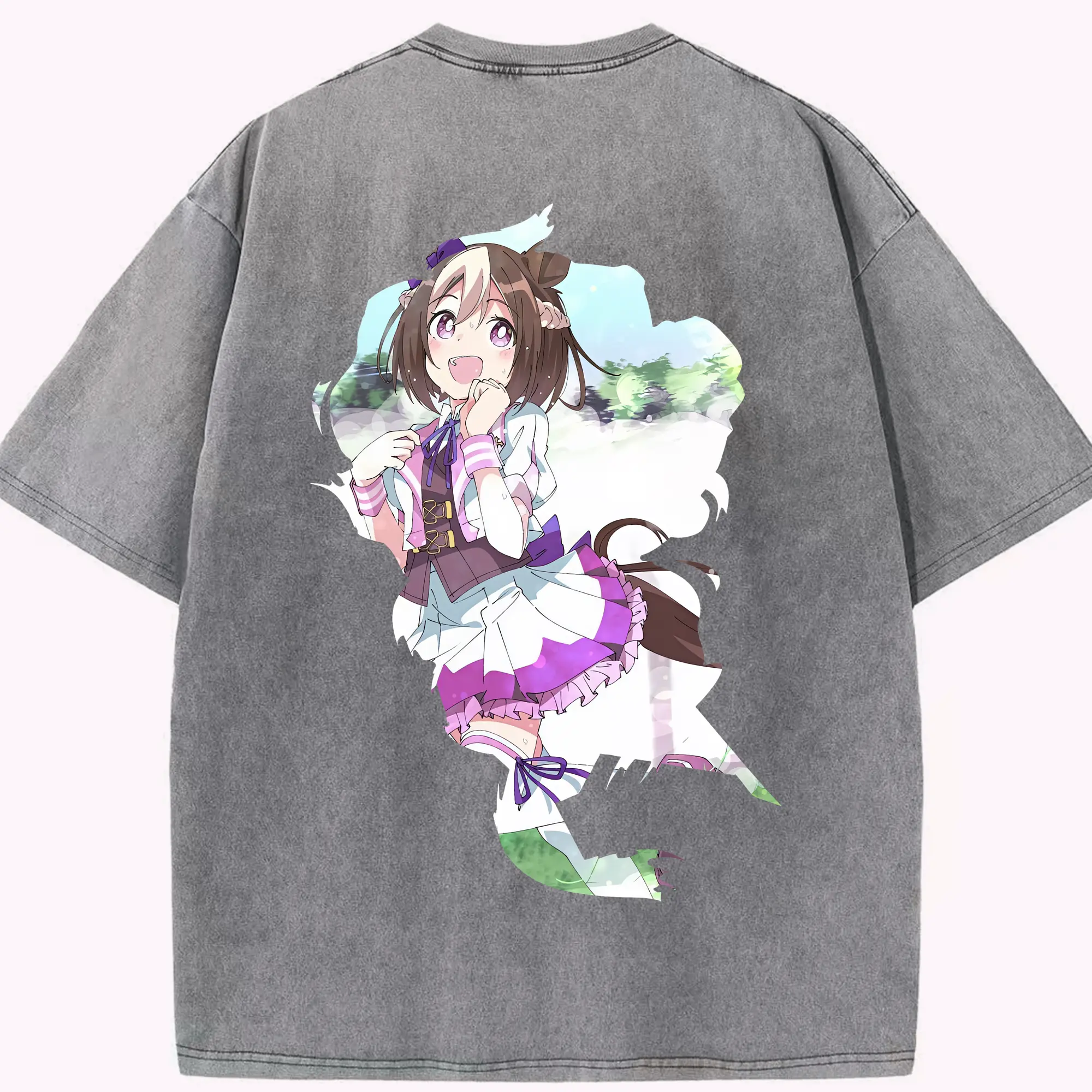 ウマ娘 プリティーダービー グッズ スペシャルウィーク - 綿100% ヴィンテージ風 半袖Tシャツ ・ フロントプリント ・ 柔らか肌触り ・ 通気性 快適 ・ スポーツ カジュアル 外出用