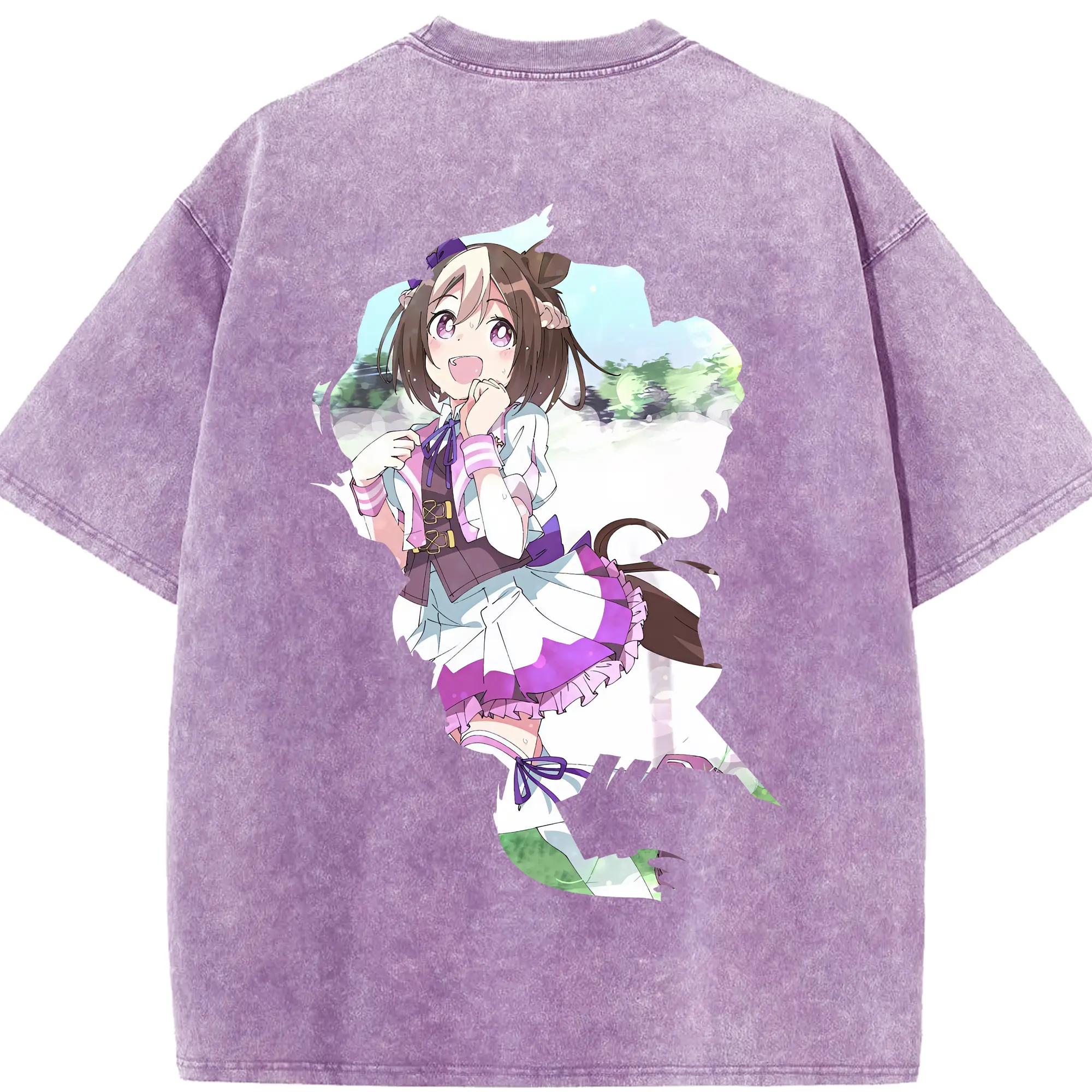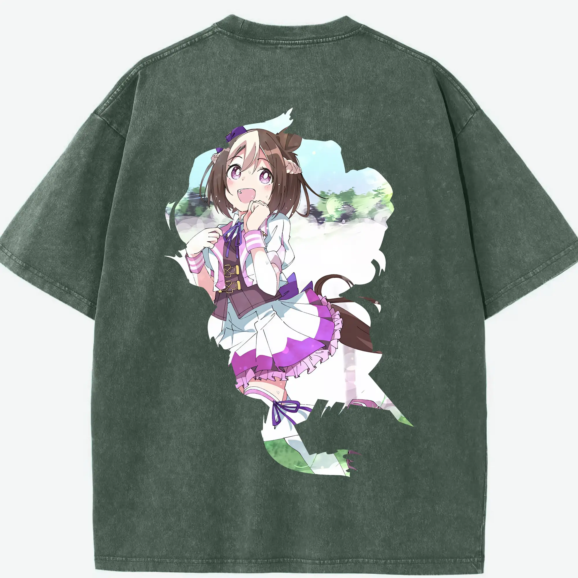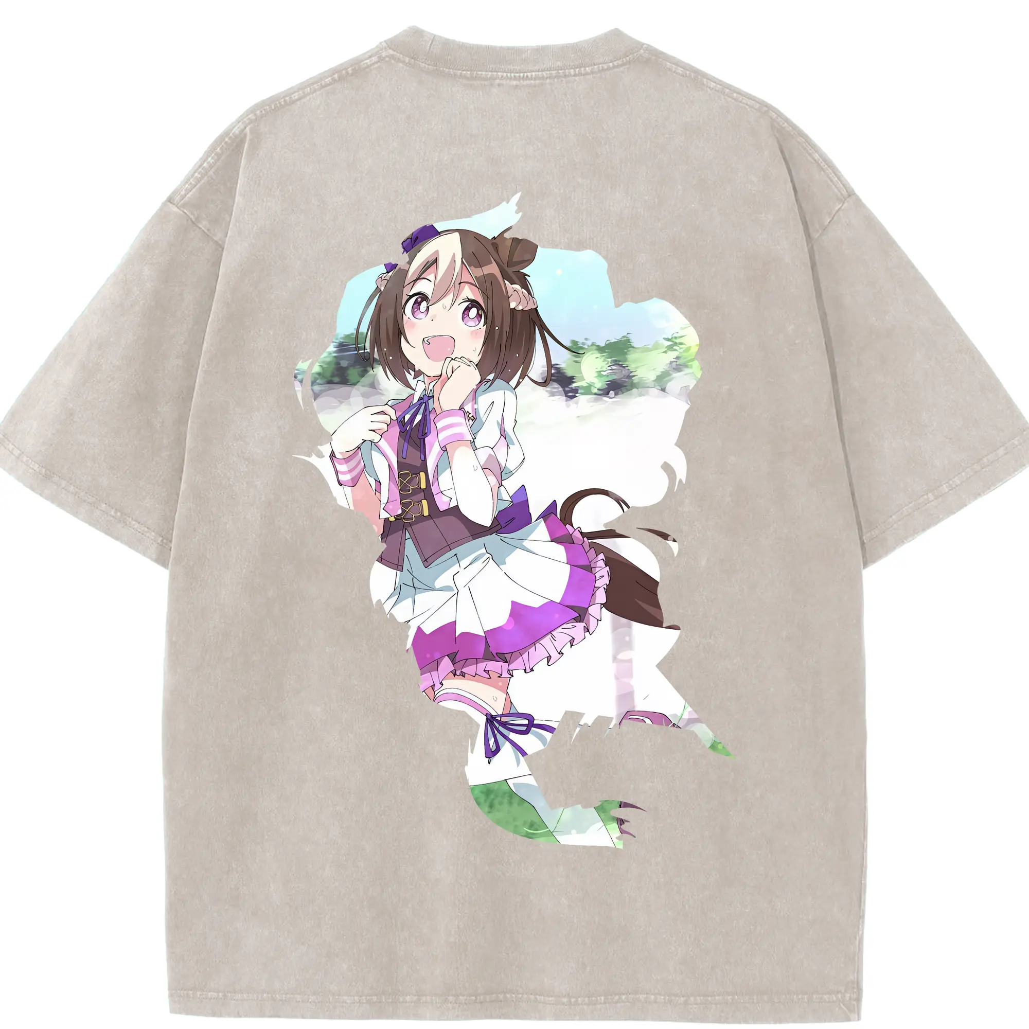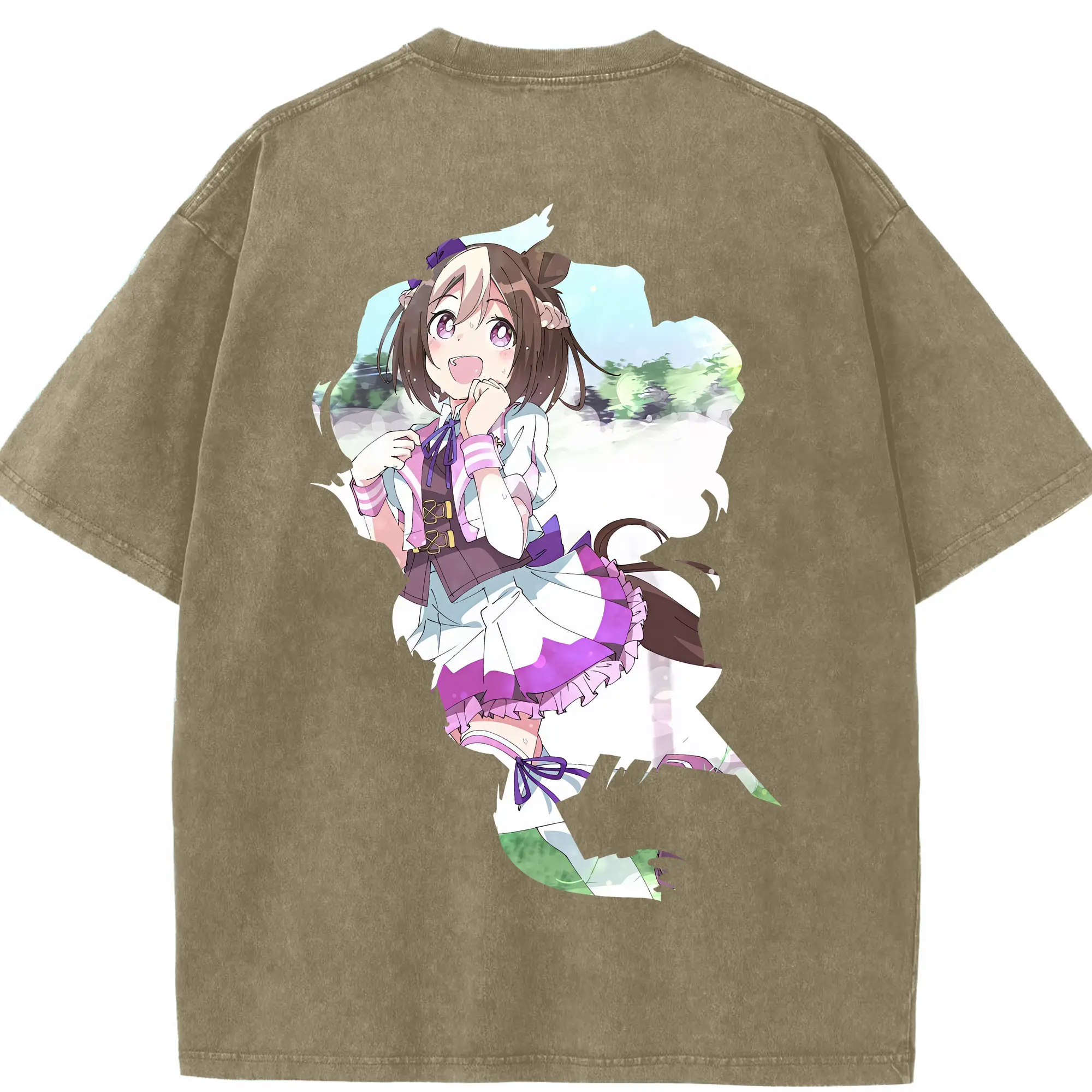 ウマ娘 プリティーダービー グッズ スペシャルウィーク - 綿100% ヴィンテージ風 半袖Tシャツ ・ フロントプリント ・ 柔らか肌触り ・ 通気性 快適 ・ スポーツ カジュアル 外出用